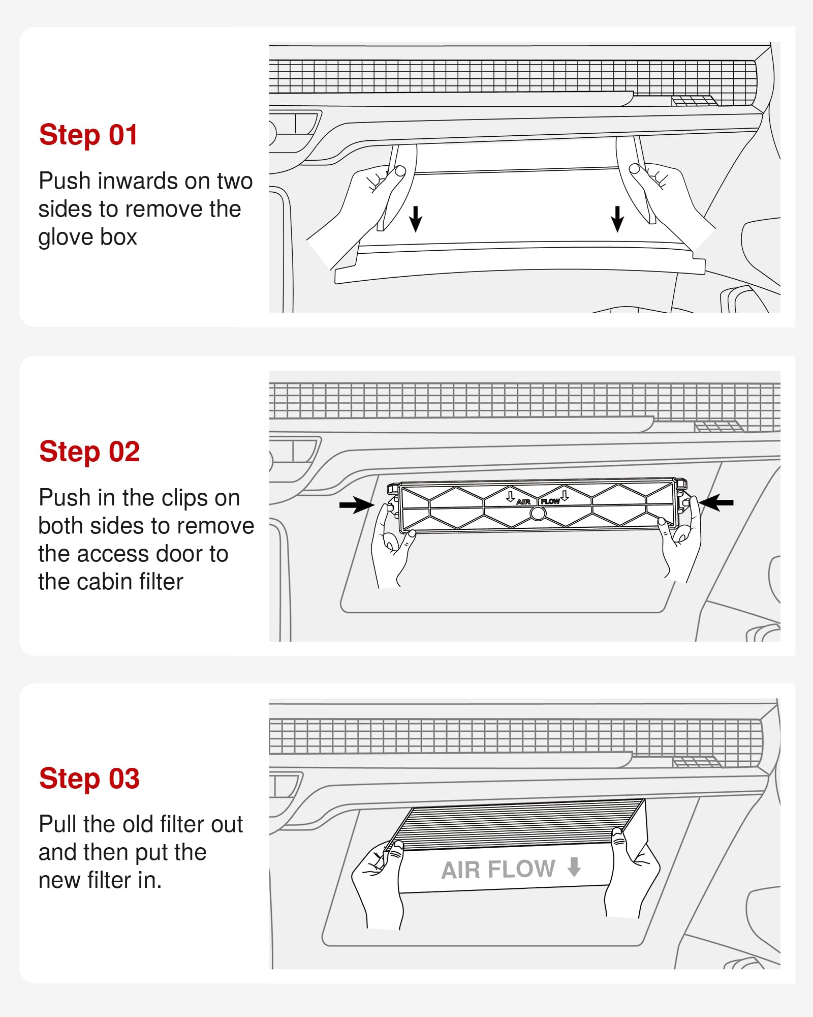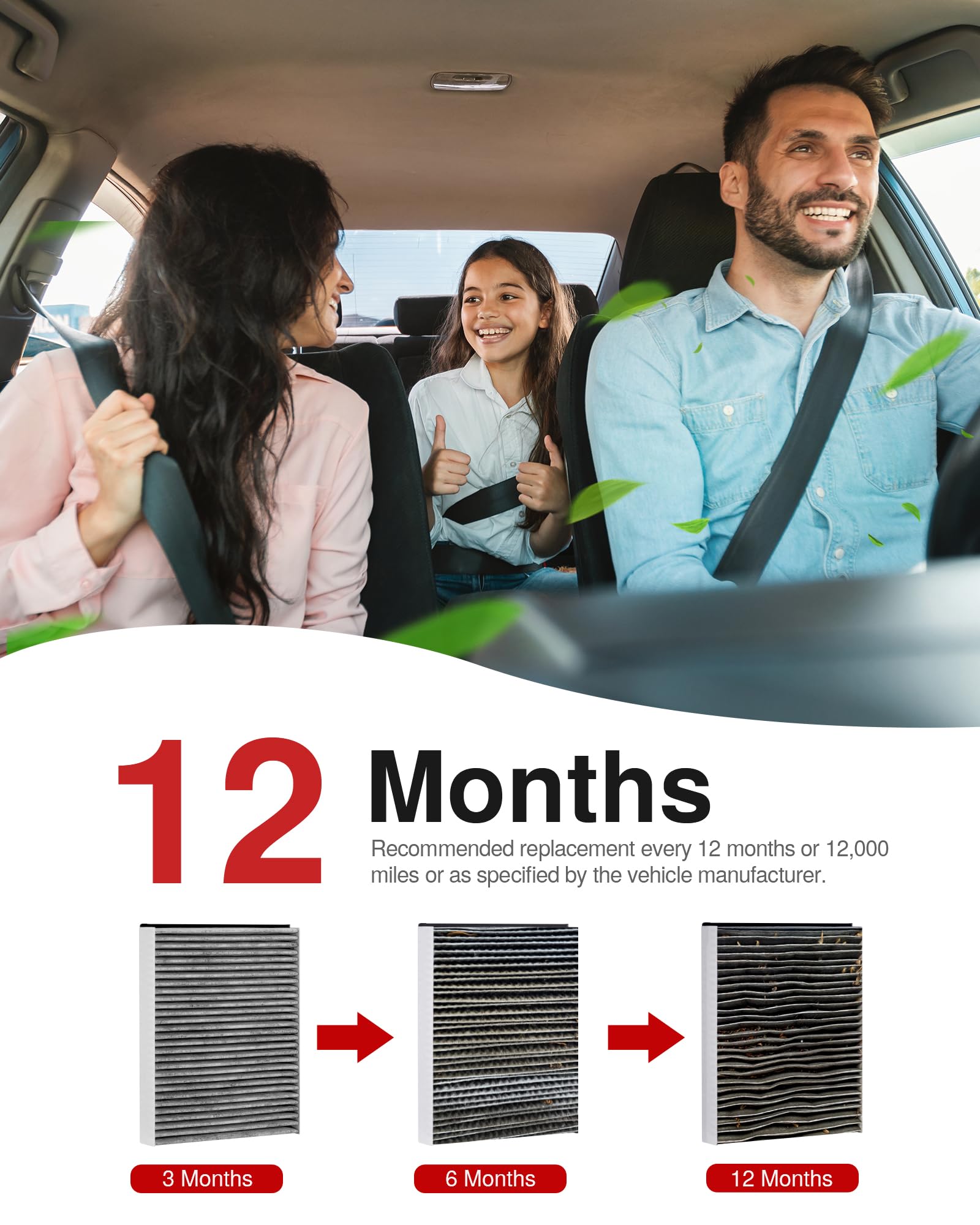 Enhances HVAC performance: It is recommended to replace your cabin air filter every year or every 12,000 miles. For optimal performance, those driving in heavily polluted areas or on dirt roads should change it every 5,000 miles. These filters help maintain the efficiency and longevity of the vehicle's heating, ventilation, and air conditioning (HVAC) system, maintaining optimal airflow and reducing strain on the system.