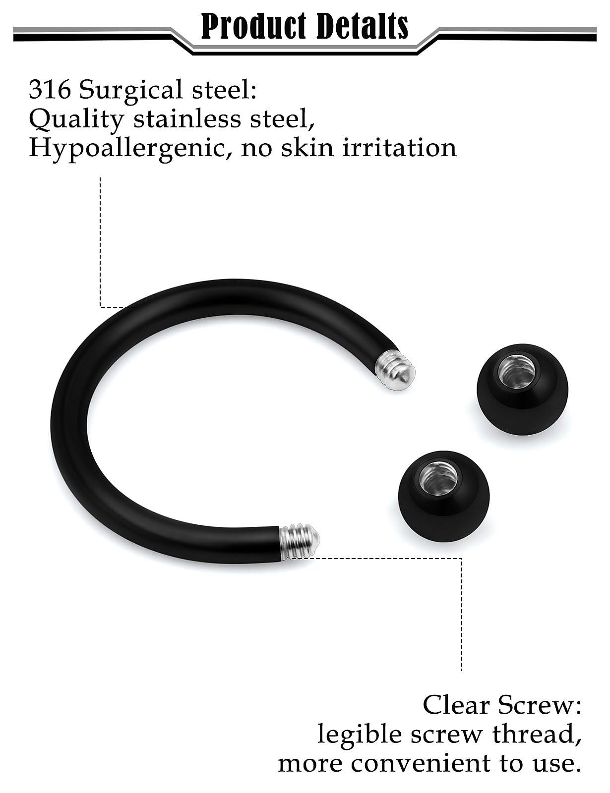 Horseshoes Captive Bead Rings Made of 316L Surgical Steel,High Qaulity.Non Nickel and Non Lead,Safe and Health for Body, Comfortable to Wear.