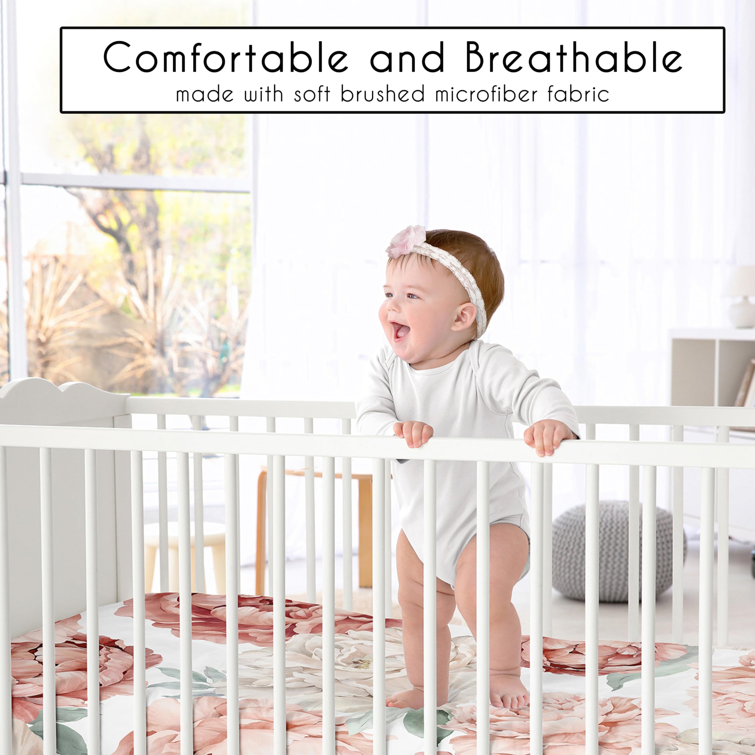 PERFECT GIFT: Add baby girl crib sheets to your list of must haves! Including a baby fitted crib sheet on your gift registry, in a baby shower gift basket or as a gender reveal present is an easy way to prepare for a baby's arrival. Whether it's nap time, bedtime, or an unexpected mess, having extras of these baby mattress sheets make changes effortless so you can focus on what matters most to you and your family. And remember, you can never have too many baby crib sheets or toddler bed sheets!