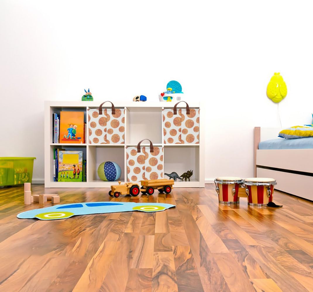 MULTI-PURPOSE:Canvas tropical Storage Bins are a perfect way to accessorize, organize, and store items at home, office Ideal toy bins or shelf baskets for cube storage organizer shelves, cubbies, bookcase, desk, or floor. Sturdy wire frame stands up to everyday use in shelves, kids' home store, bathrooms, bedrooms, laundry rooms or closets.