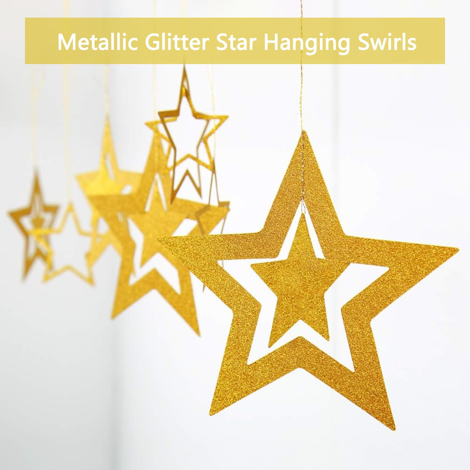 [TWINKLE LITTLE STAR HANGING DECOR] High quality card paper, not flimsy and easily bent, sturdy string and long-lasting cardstock in nice and bright colors. Stars are sewn with silver thread.
