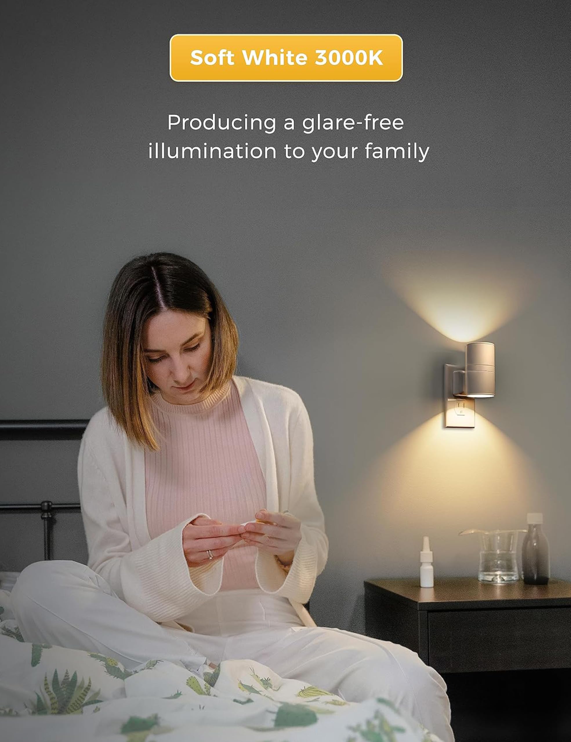 Modern Night Light -- With white shade, the sleek and minimalist design of our LED night lights won’t ruin your home’s motif and overall look. Soft white light imbues a comfortable feeling for the eyes instead of giving off a blinding glare.