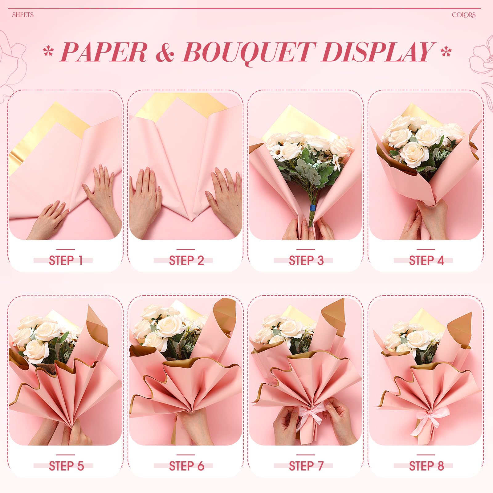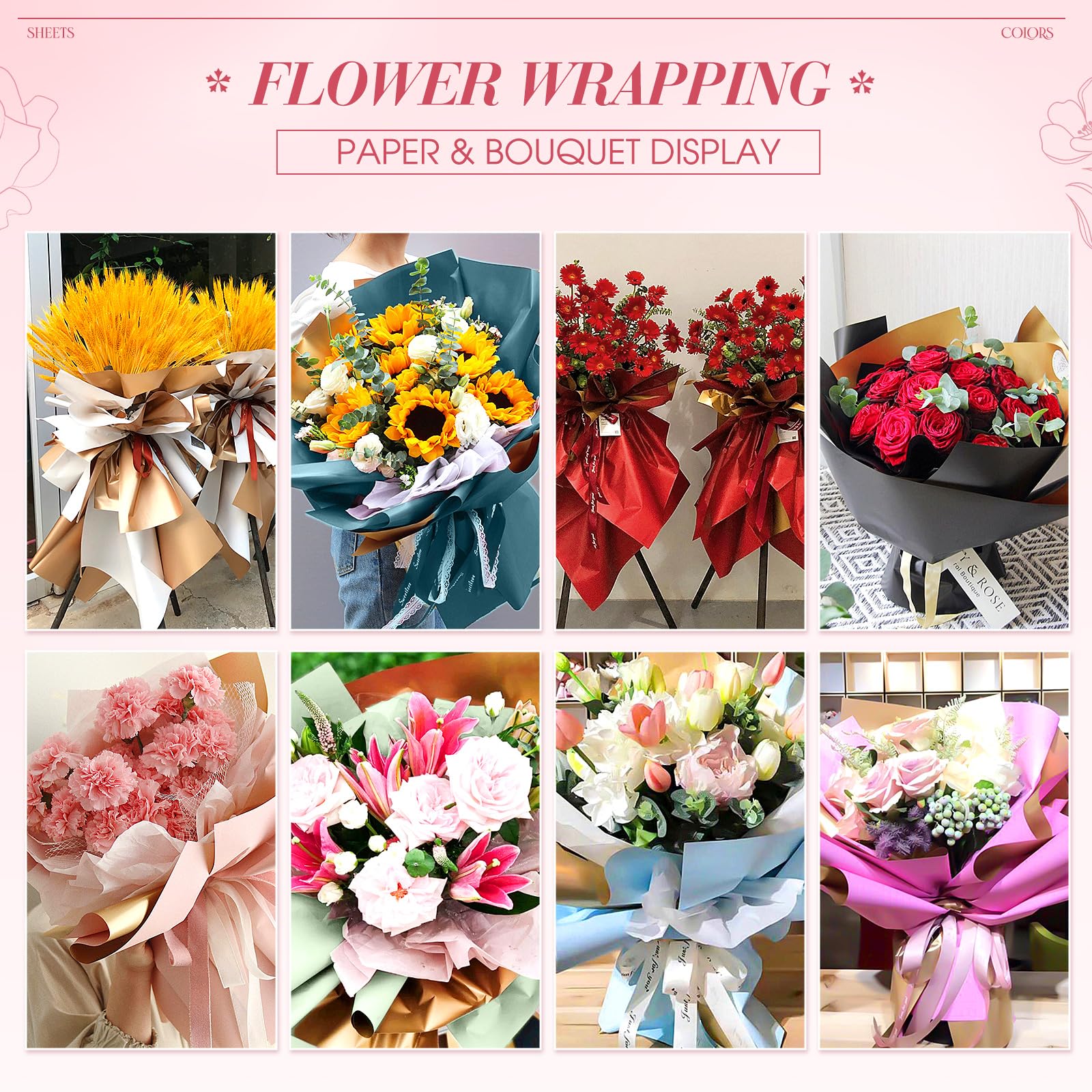 Multiple Choices: our wrapping paper offers 8 different colors for you to choose, wrapping papers of different colors can be used together to show the beauty of gifts. , reducing the time for flower packaging and matching; The elegant flower wrapping paper wraps fresh bouquets, classic and delicate, bringing you double enjoyment of vision and sense of use