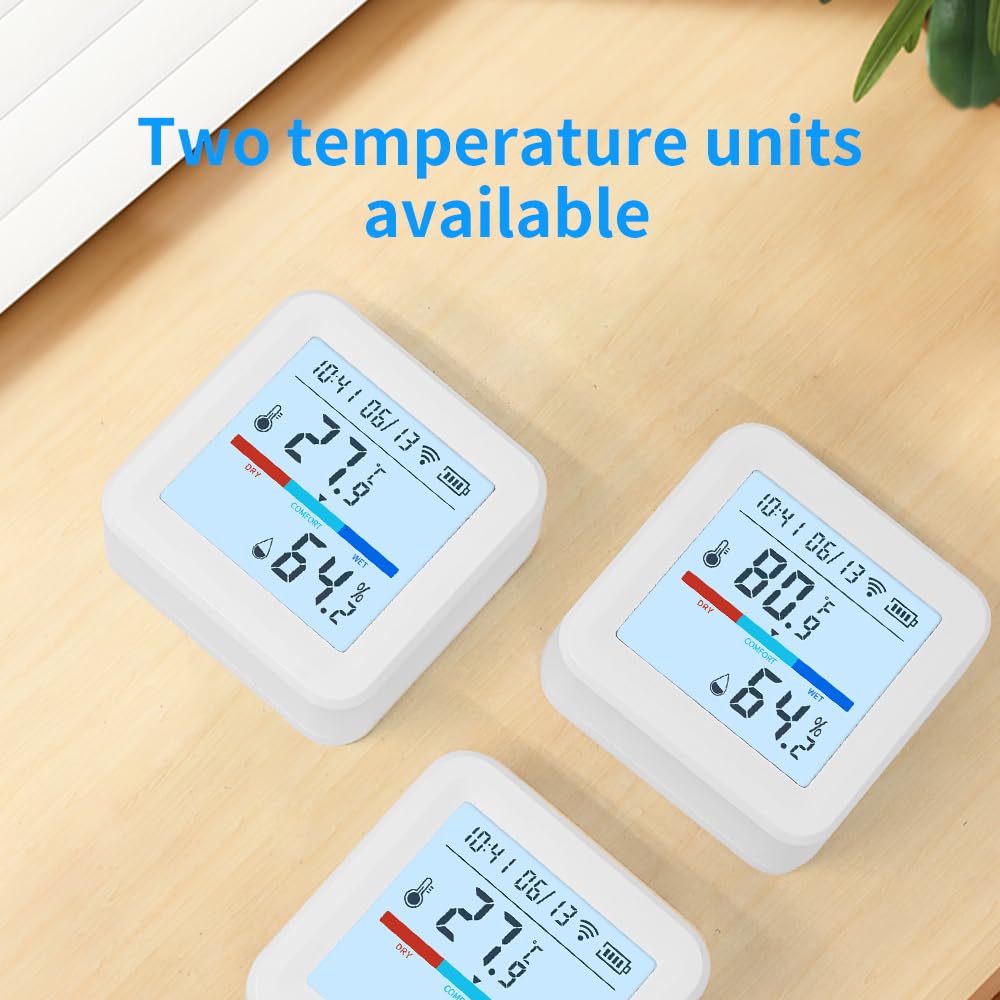 【Smart WiFi Temperature & Humidity Sensor】 This smart WiFi thermometer hygrometer delivers accurate, real-time temperature and humidity readings through the Tuya Smart or Smart Life app. Ideal for use as a wifi temperature monitor or humidity monitor in your home, greenhouse, nursery, or wine cellar.