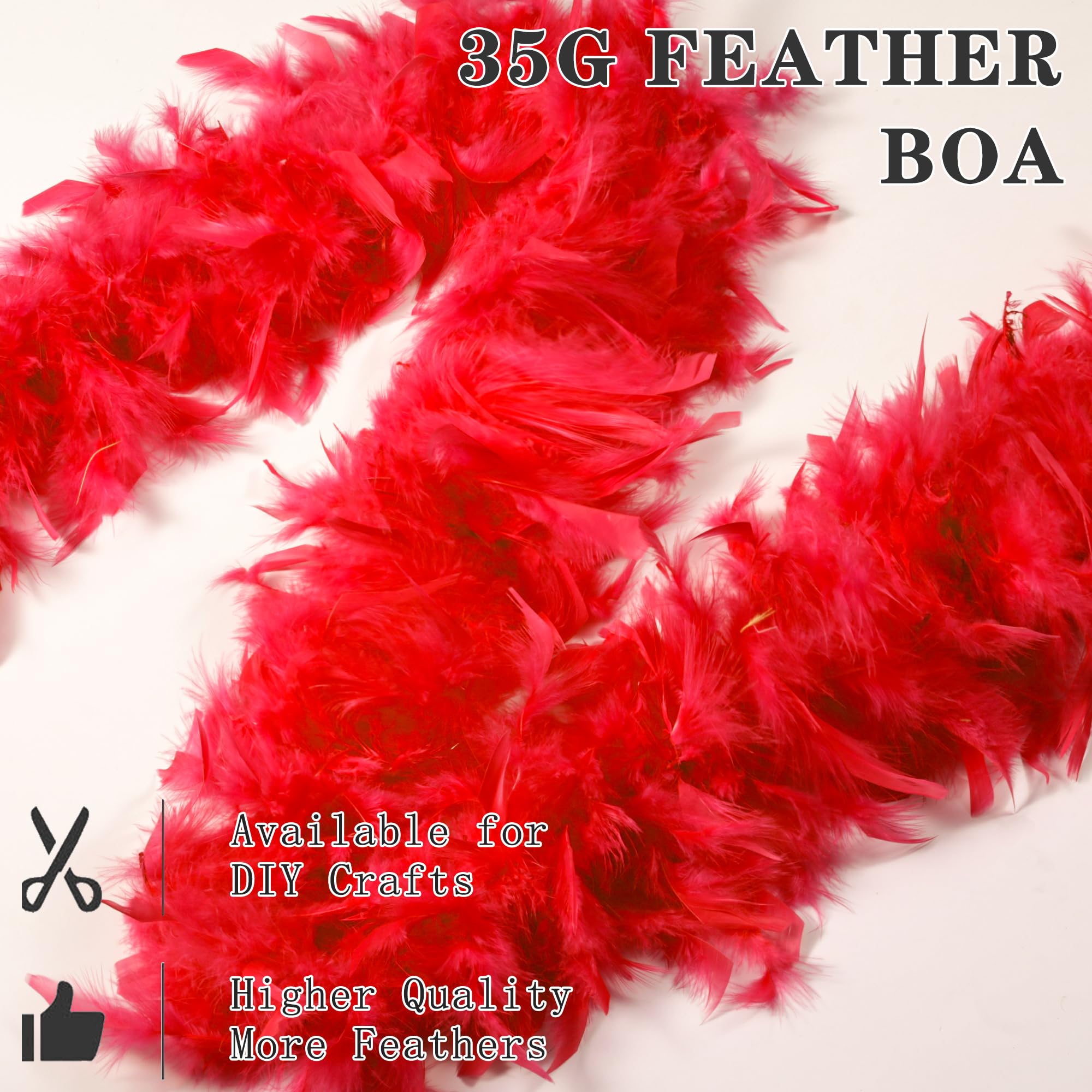 More Fluffy Feather Boas: Red feather boas are made with 35 grams of feathers to ensure a fuller, richer appearance. Experience the epitome of luxury and glamour as you don our boas feather