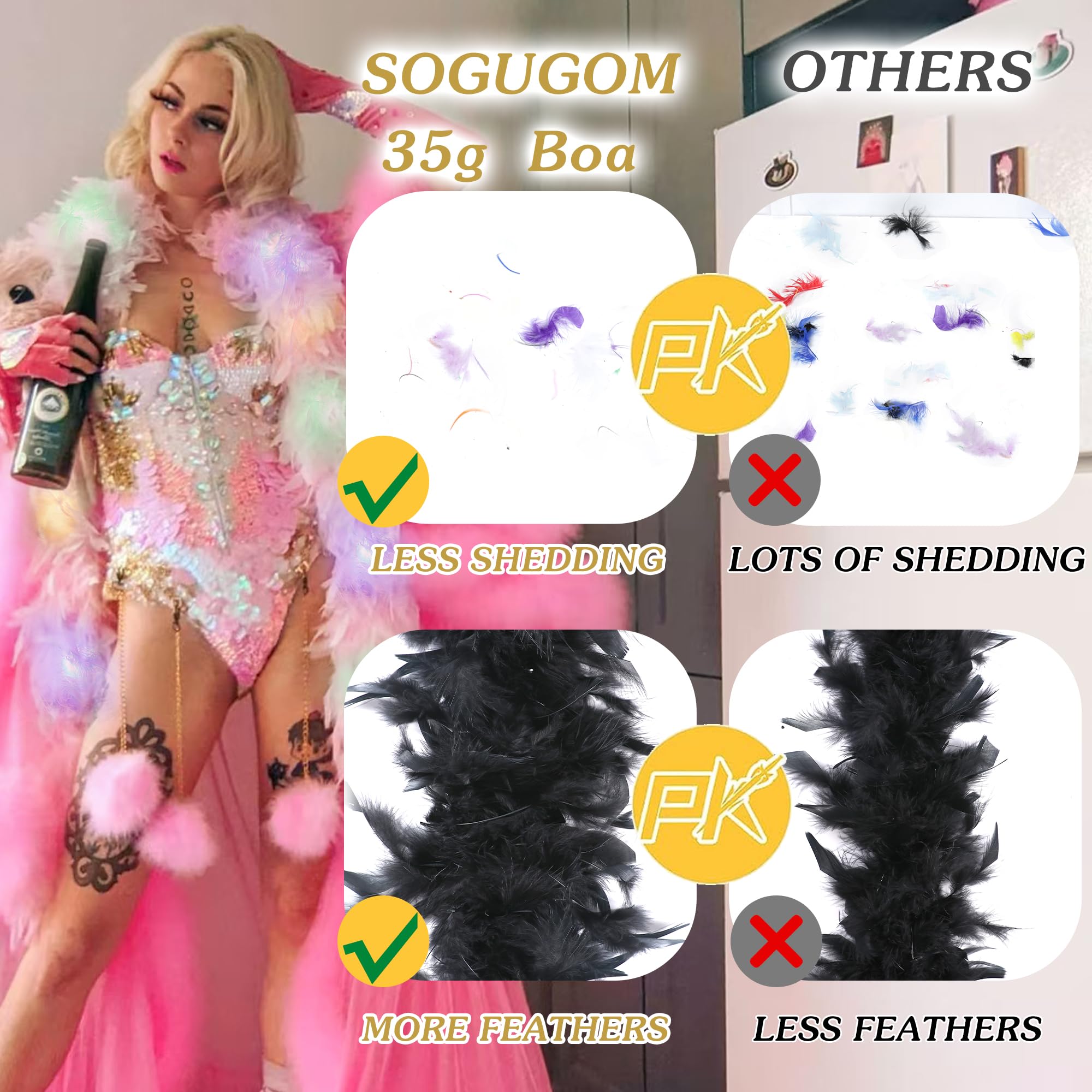 Softer Feather Boa: Feather boas are made from soft and safe turkey feathers. Each feather has been handpicked by skilled craftsmen to ensure fullness and durability