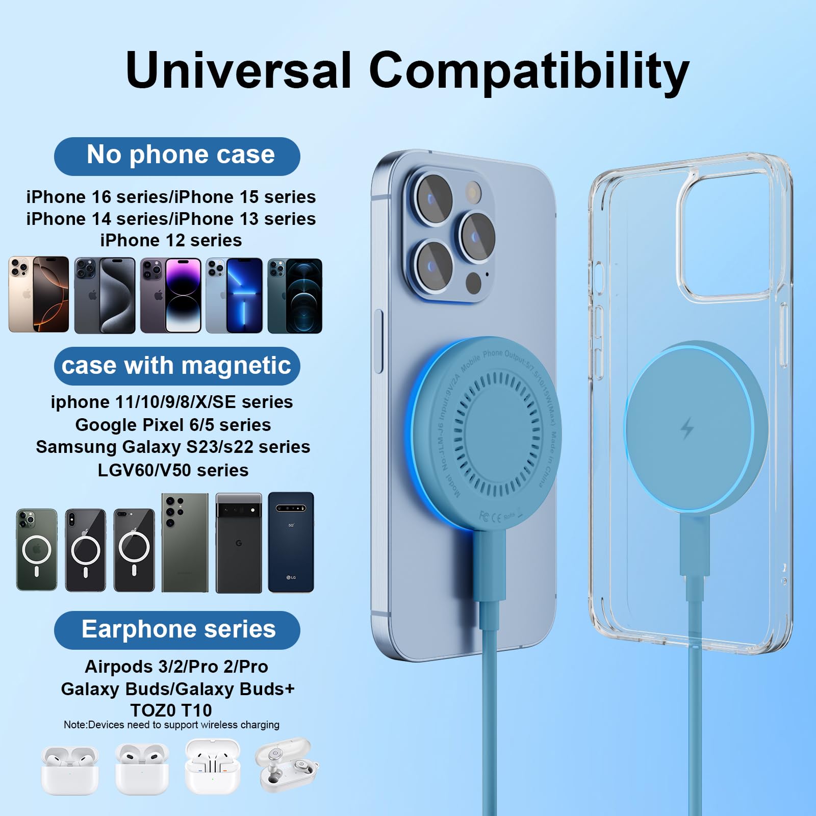【Wide Compatibility|Works with All Apple Devices】Compatible models: iPhone 16 Series: 16/16 Plus/16 Pro/16 Pro Max iPhone 15 Series: 15/15 Plus/15 Pro/15 Pro Max iPhone 14 Series: 14/14 Plus/14 Pro/14 Pro Max iPhone 13 Series: 13/13 Mini/13 Pro/13 Pro Max iPhone 12 Series: 12/12 Mini/12 Pro/12 Pro Max Earbuds: AirPods Pro 3/2 (requires wireless charging case).