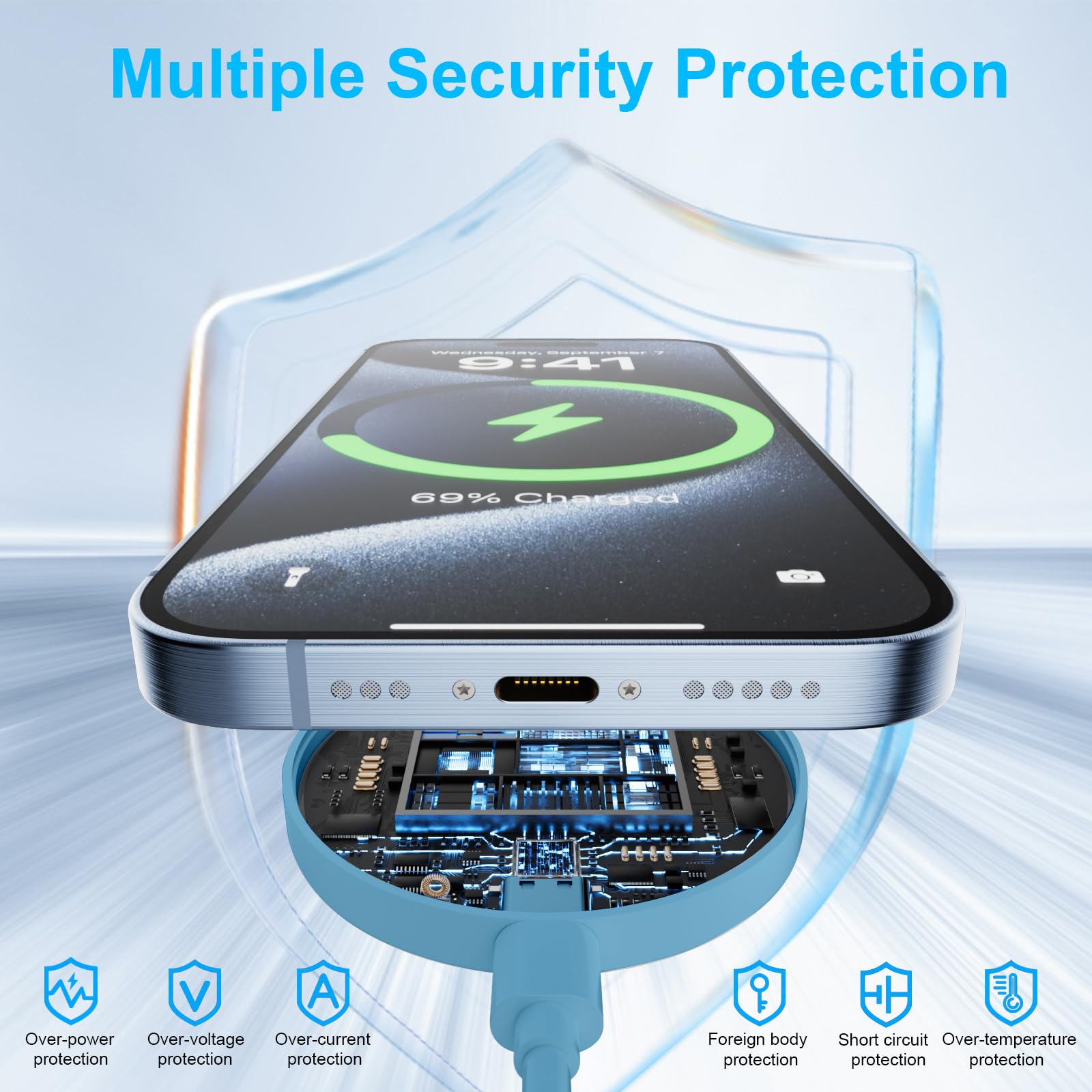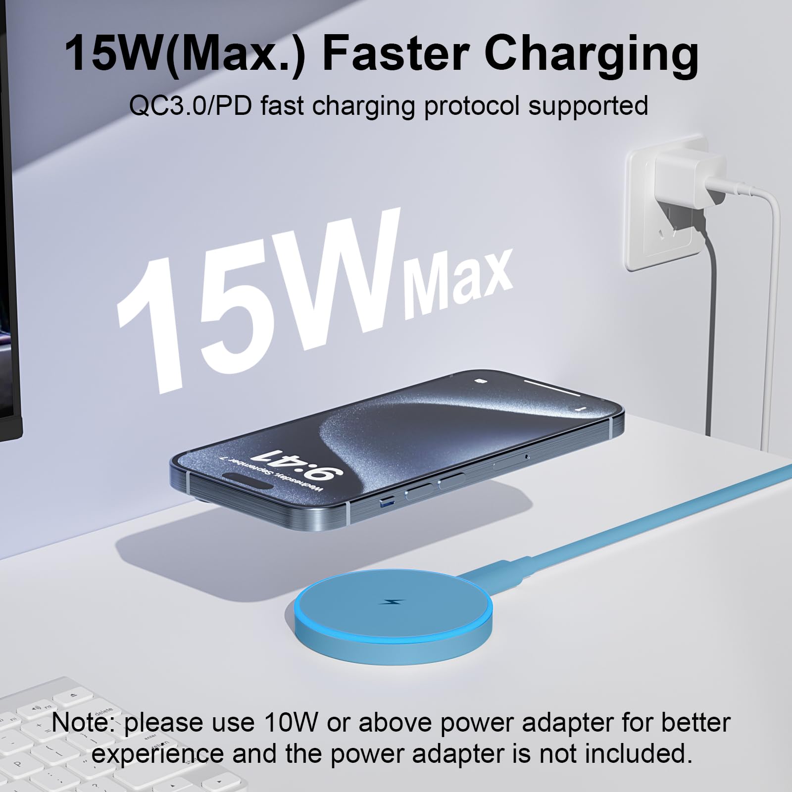 【15W Fast Wireless Charging|Quick Power Boost】 Supports up to 15W fast charging for iPhone 15 series, delivering a 50% charge in just 30 minutes and a full charge in 2.5 hours (✅ 3x faster than standard 5W charging). ⚠️ Note: A 15W/20W or higher PD adapter is required to achieve maximum speed. Using an adapter below 10W may result in slower charging performance.