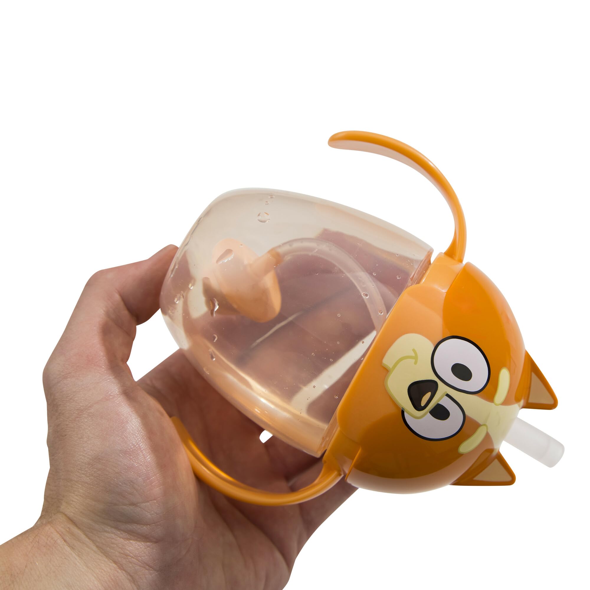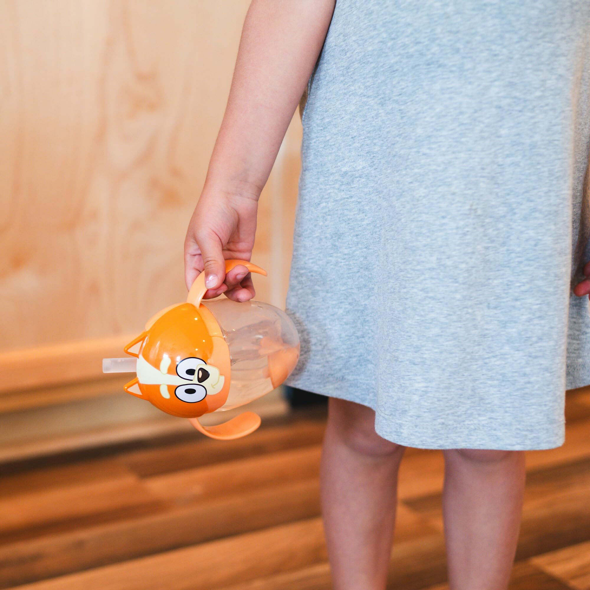 Sip From Any Angle: This cheerful Bingo kids' cup features an attached weighted silicone straw that allows your child to sip from any angle, with no drop left behind