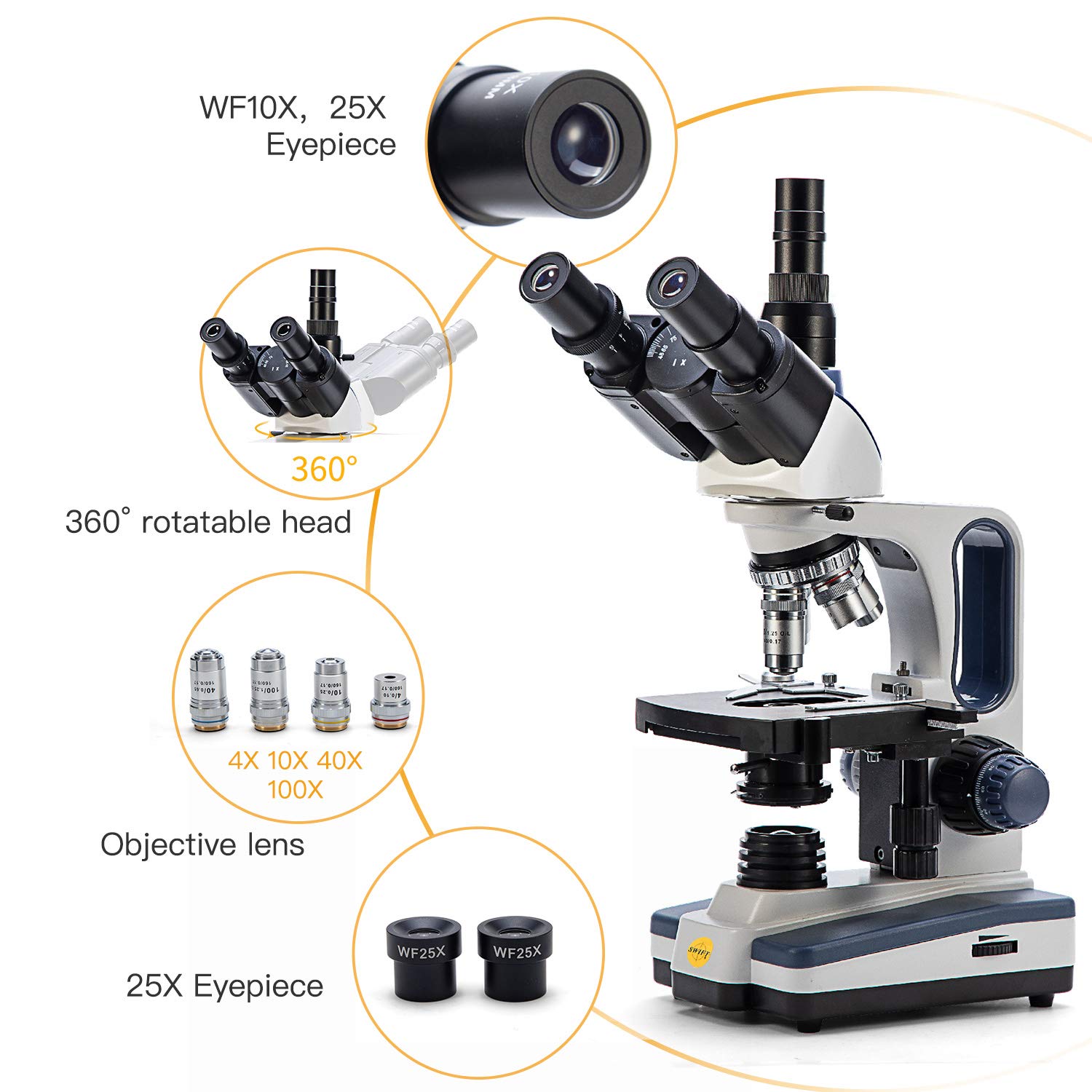 A powerful multi-purpose compound microscope for viewing tiny details of specimen slides; excellent for clinicians, high school and university science students, and enthusiastic hobbyists alike