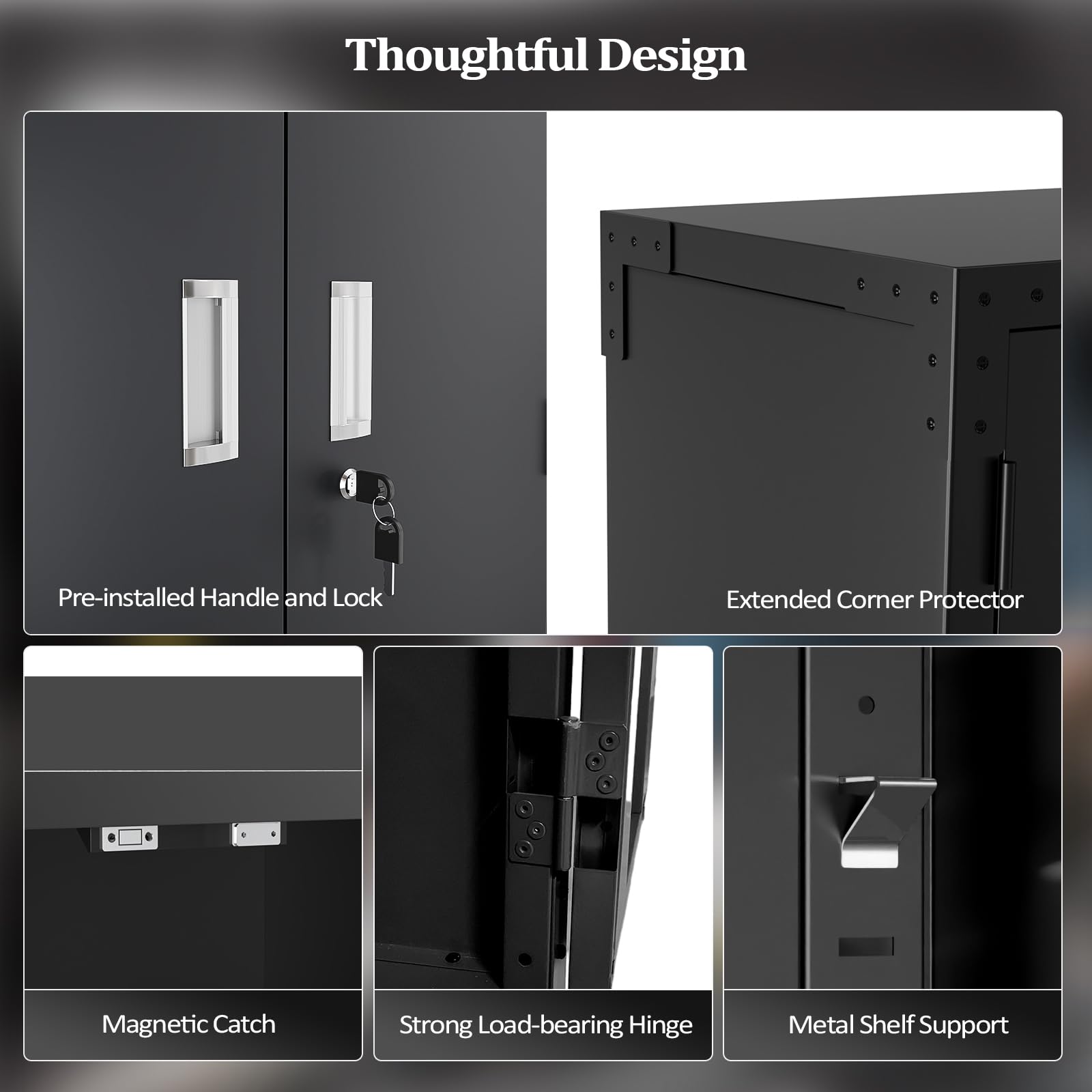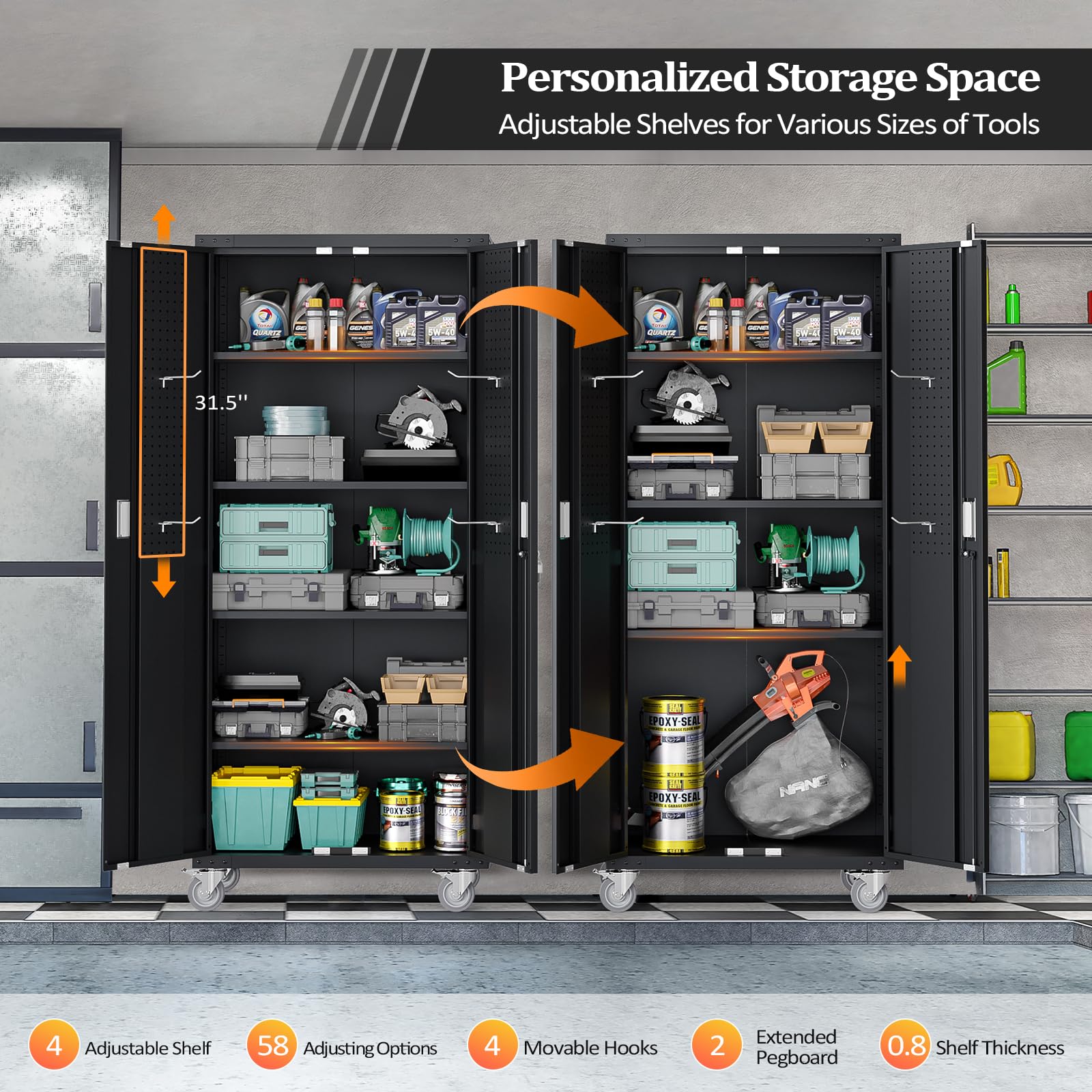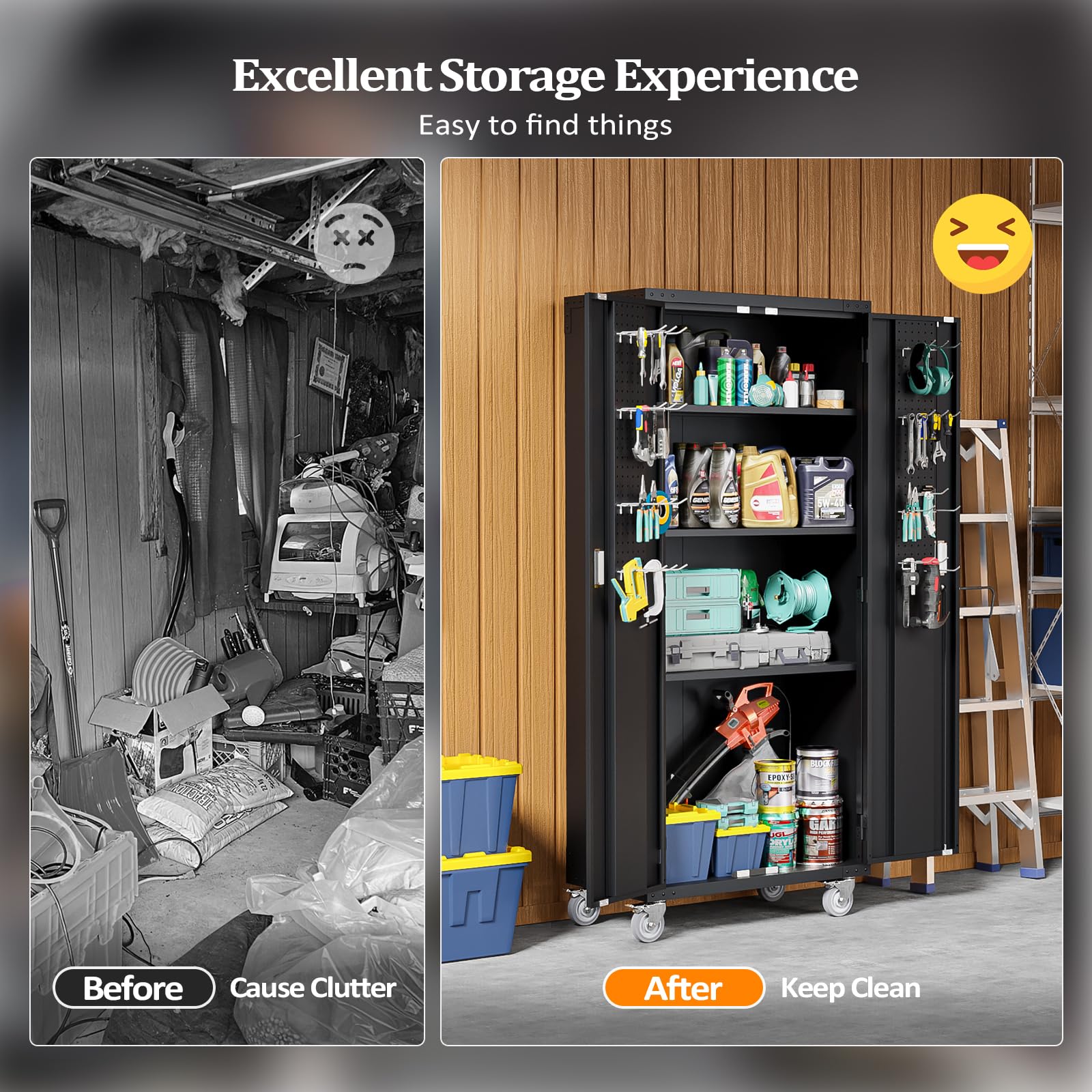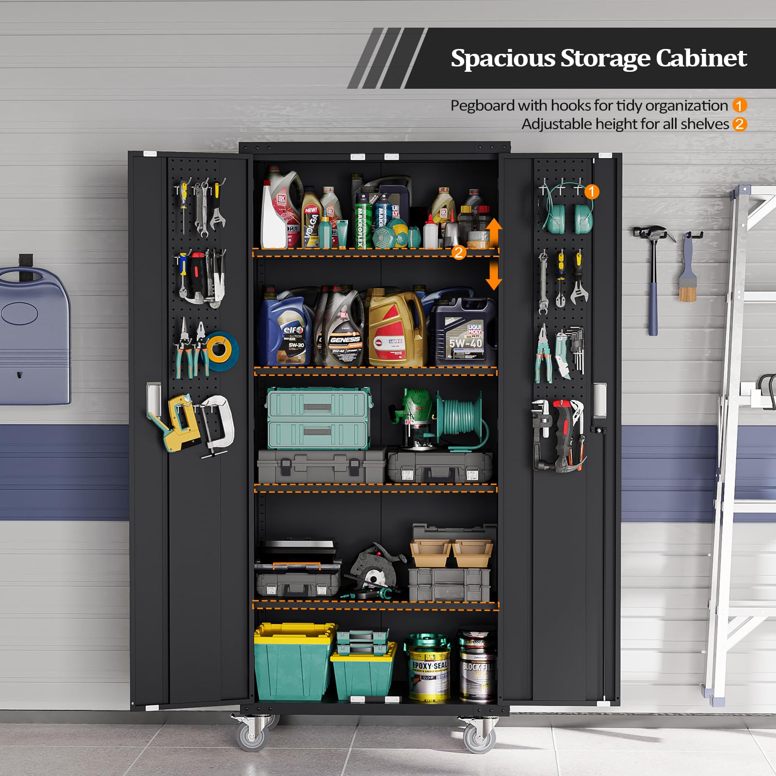 【Multi-functional Lockable Doors】VINGLI metal cabinet has lockable doors with 2 keys, which will keep all your belongings secured. The extra built-in pegboards with hooks are helpful to declutter your garage tools or office sundries. The locking handles and magnet devices are friendly to users