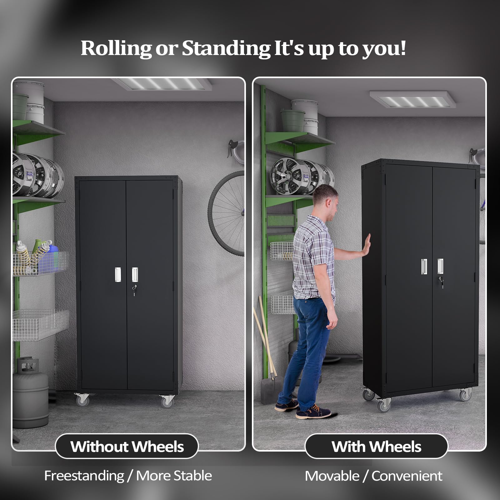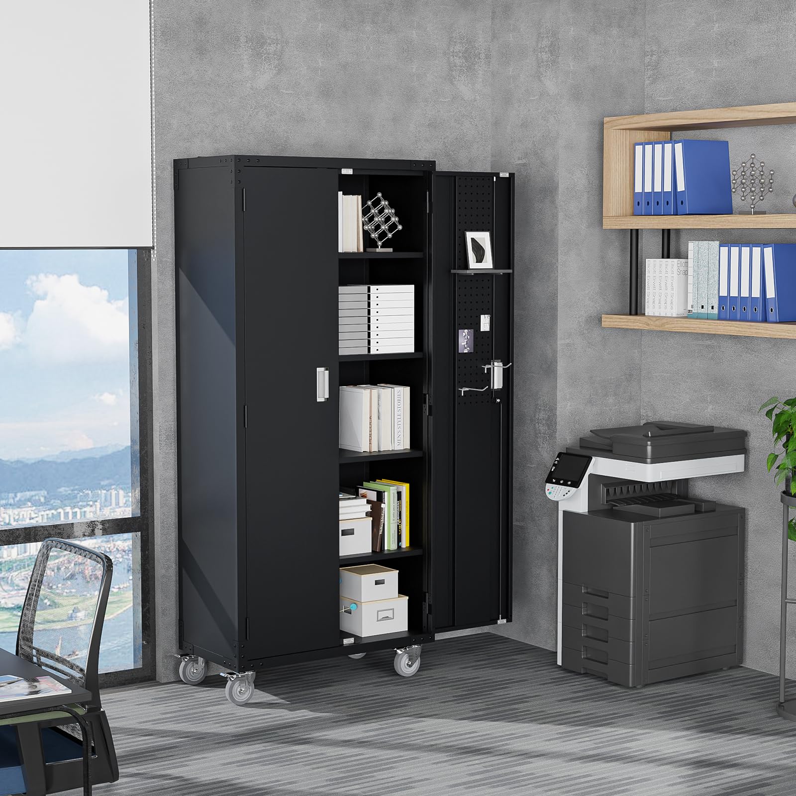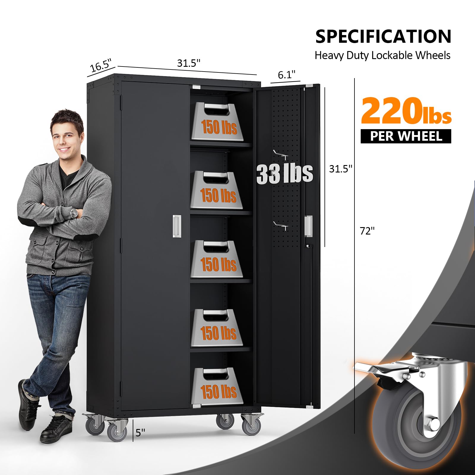 【Excellent Load-bearing Capacity】With a strong and durable metal frame, this steel storage cabinet allows you to store heavy garage instruments up tp 150lbs per shelves(750lbs in total). It is perfect for office, garage, gym, workshop, classroom, utility room, etc.