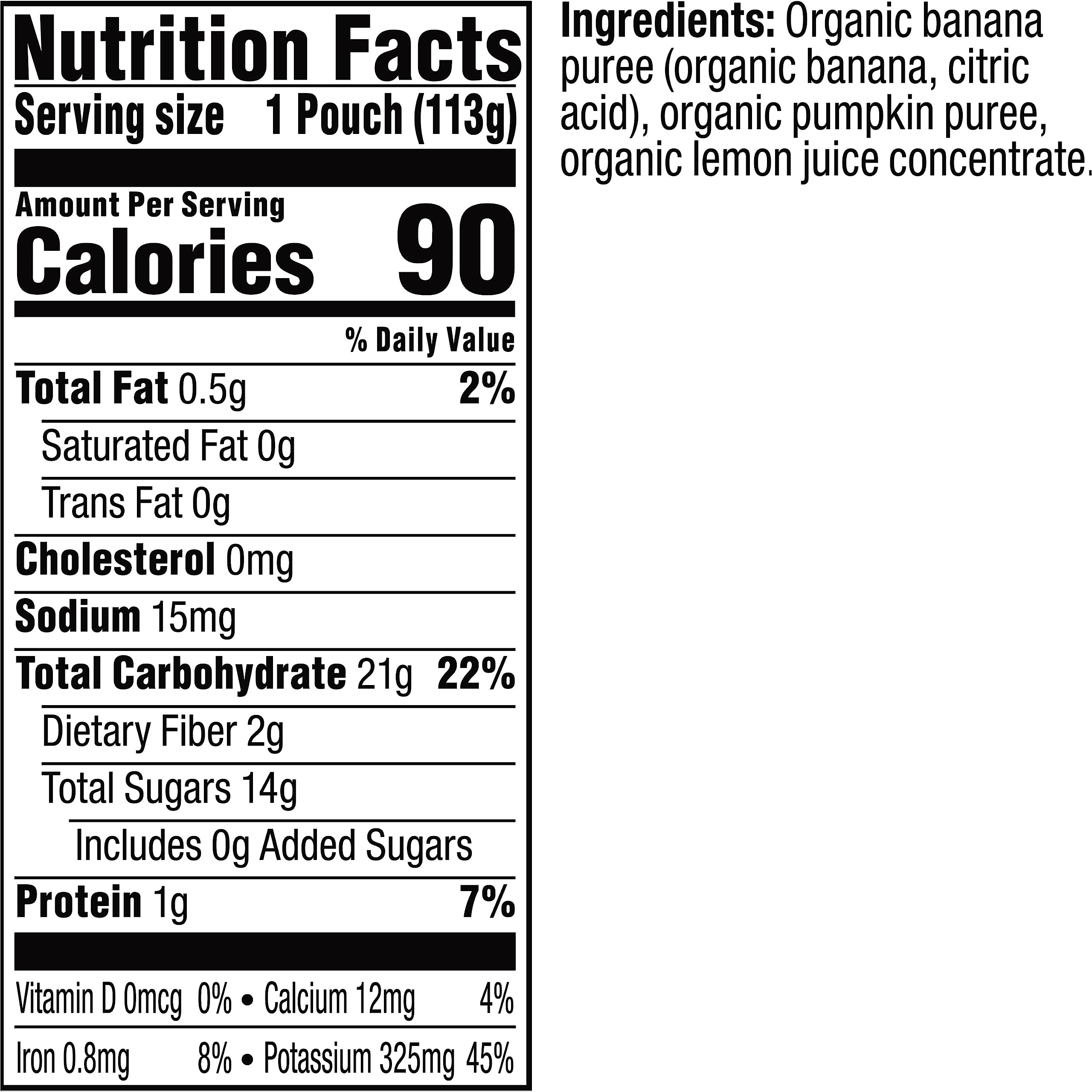 MADE WITH NATURAL FLAVORS: Contains organic banana puree, organic pumpkin puree, and organic lemon juice concentrate