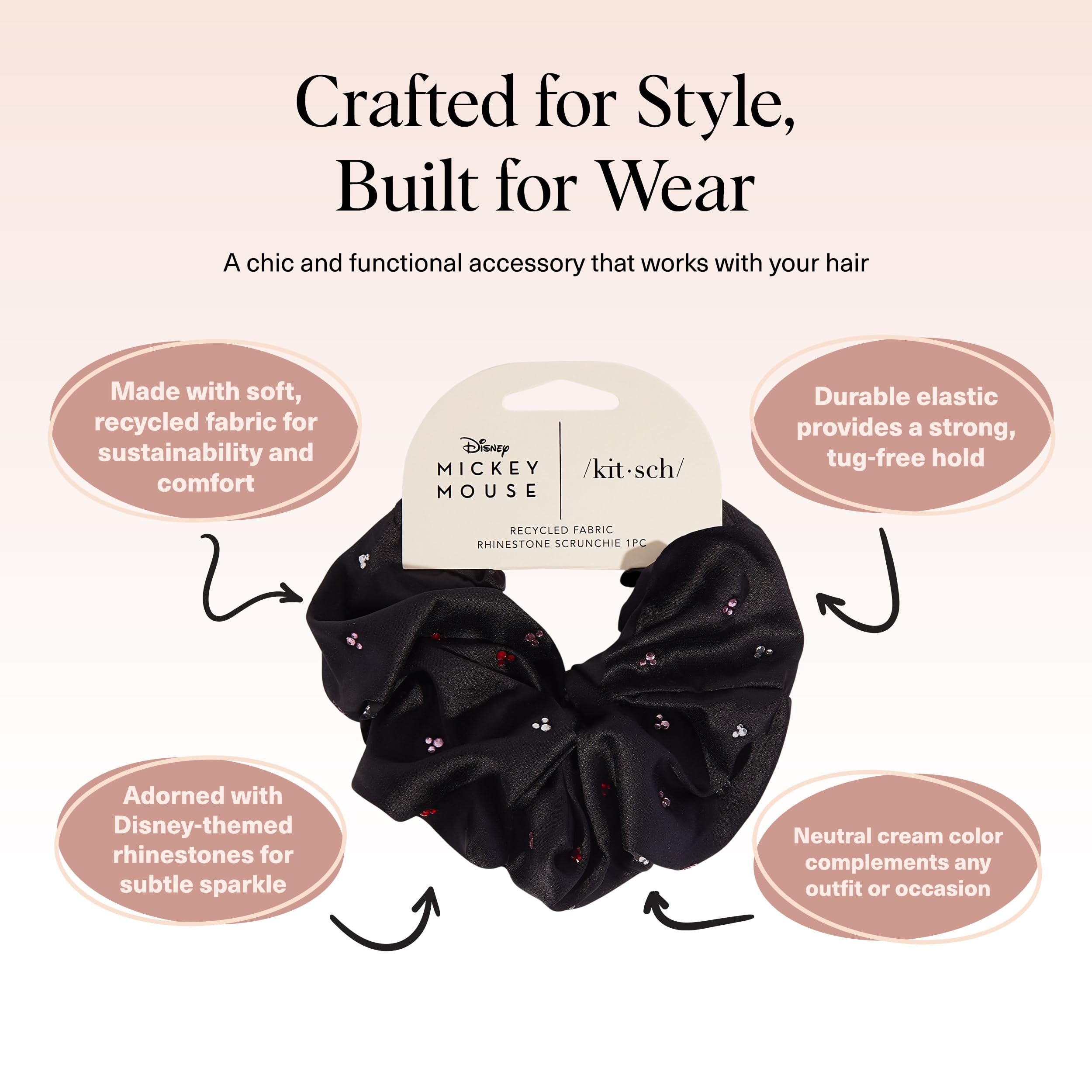 GET IN WITH THE TREND: Get rid of that ugly metal hair elastics & ties around your wrist and get chic with a Scrunchie that looks cute hanging off your hand. This Recycled Fabric Rhinestone Scrunchie will add a feminine touch to even the most basic outfits!