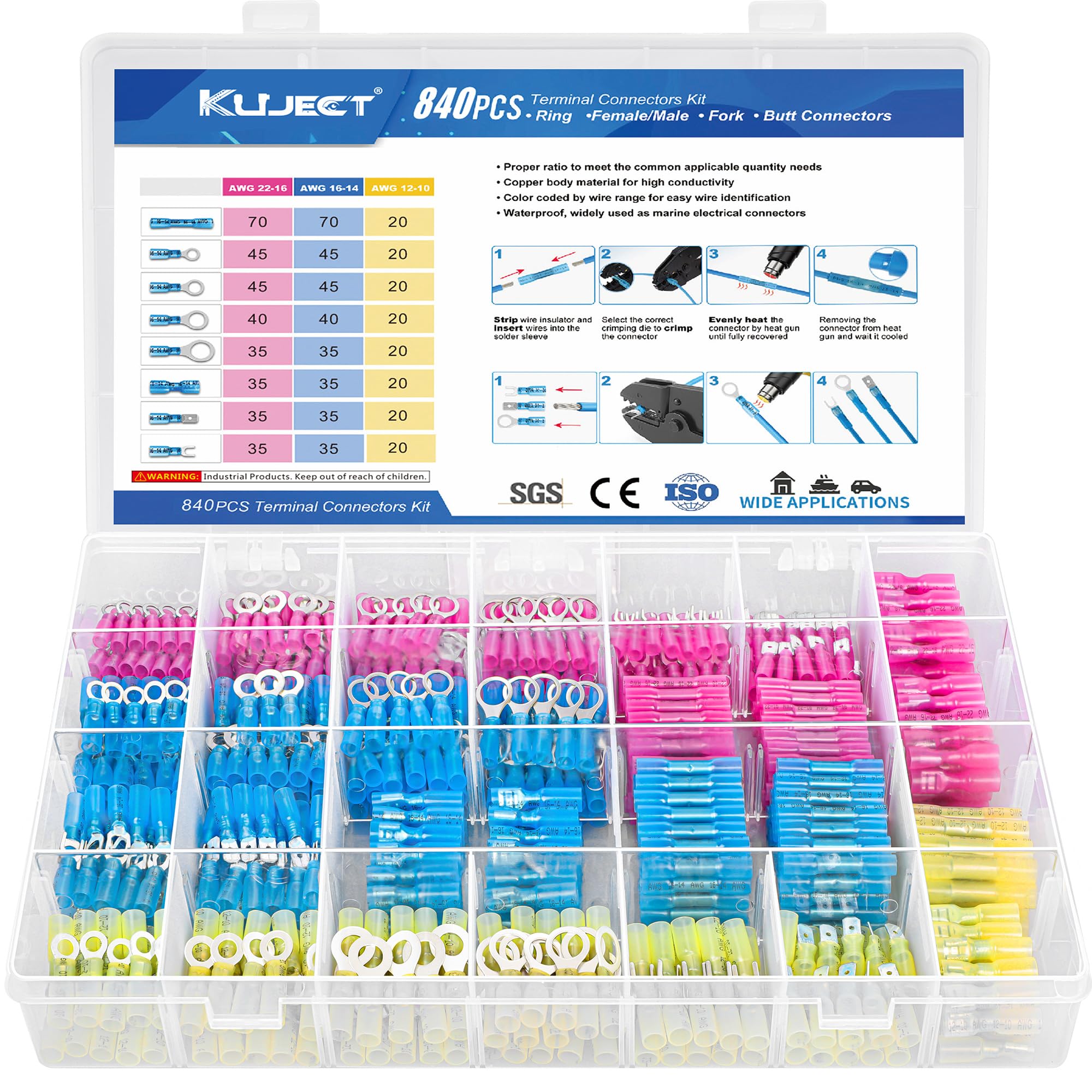 Stronghold and Durability: We adopt premium copper core to ensure good electrical conductivity and durability. Heat shrink crimp connectors provides greater pull strength