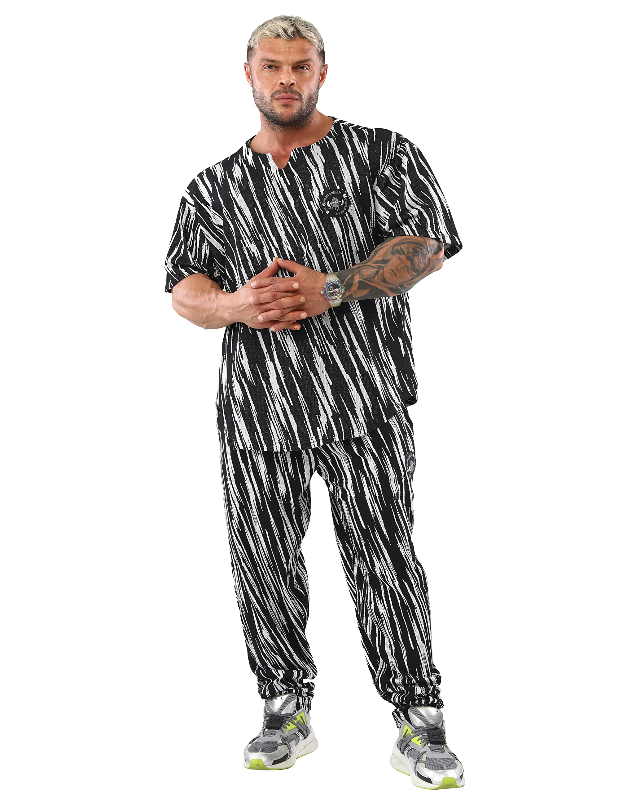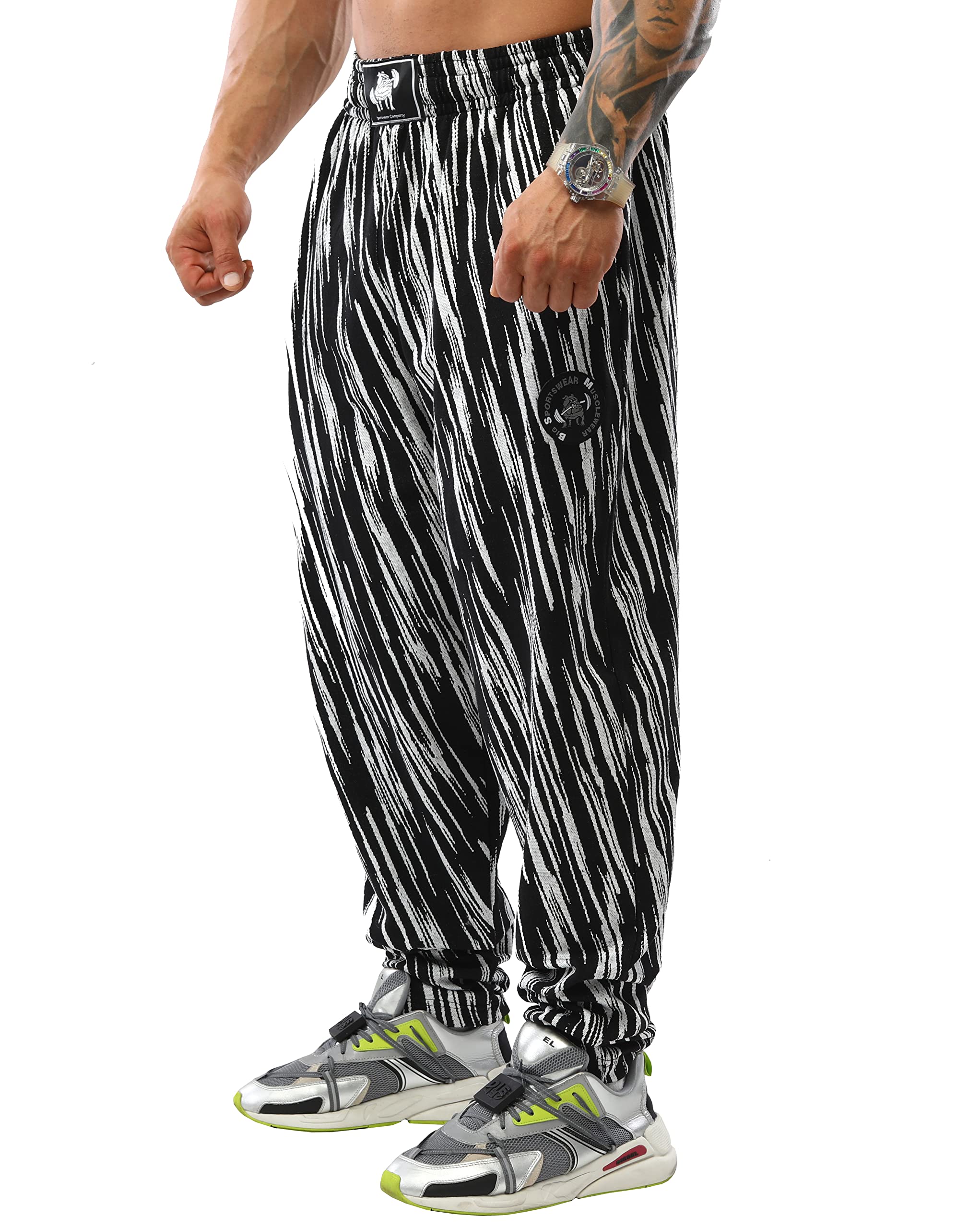 Cut Style & Form ➢ These sweatpants are produced with a wider cut than normal sweatpants. It is produced for large and muscular body types with its wide leg and hip cut. Wide hip and leg cuts taper downwards. The trousers that look draped in thin body types will be regular in muscular or large body types.