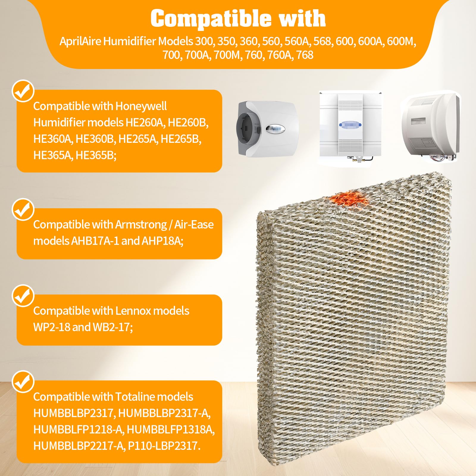 Compatible with AprilAire Whole-House Humidifier:Specially designed to fit a wide range of models including 300,350, 360, 560, 560A,568, 600, 600A, 600M,700, 700A, 700M, 760, 760A, and 768. Ensure a perfect match for your humidifier with the A35 Humidifier filter.