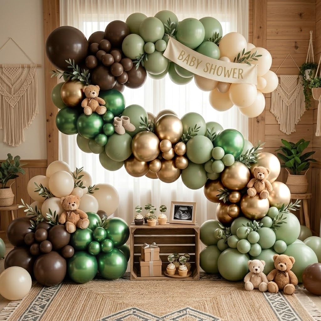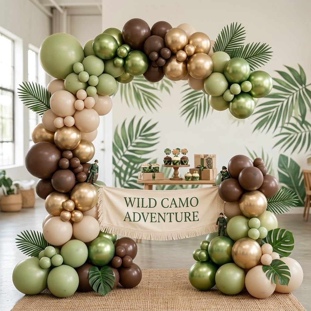 Versatile scene application: Our jungle woodland party balloons can create a joyful holiday atmosphere and immerse you and your family in the party world! The sage green brown gold balloons are perfect for kids boys girls eucalyptus camo army hunting theme party decoration, jungle safari party decor, birthday party, baby shower, gender reveal, bachelorette christmas, new year eve party decorations.