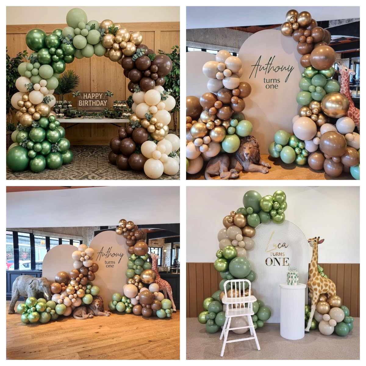 This sand white earth color balloons army color balloons set is an ideal choice for your party. It not only provides rich colors and creative decoration options for your event, but also enhances the overall atmosphere in details, giving your guests a surprise and impressive wild one or woodland party! 🦌 Quantity: 60 Pieces 🦌 Material: Natural Latex 🦌 Size: 12 inch 🦌 Accessories: Balloon ribbon 🦌 Color: Dusty Green / Dark Brown / Ivory / Metallic Gold / Metallic Sage Green 🦌 Inflatable: Both air and helium supported. 🦌 Easy to Use: You can use a manual pumps and electric pumps or with a mouth to inflate balloons. 🦌 Great for: Camper birthday party decorations, jungle safari party decorations, hunting birthday party decorations, camo theme party, army theme party, baby shower, gender reveal, anniversary party, wedding, engagement, christmas, new year, photo shoots and other party decorations. Please Note ! ⚠ If you are allergic to latex, please avoid using latex balloons. ⚠ For children, latex balloons should be used under adult supervision. ⚠ Avoid direct sunlight, high temperatures, sharp objects and excessive friction.