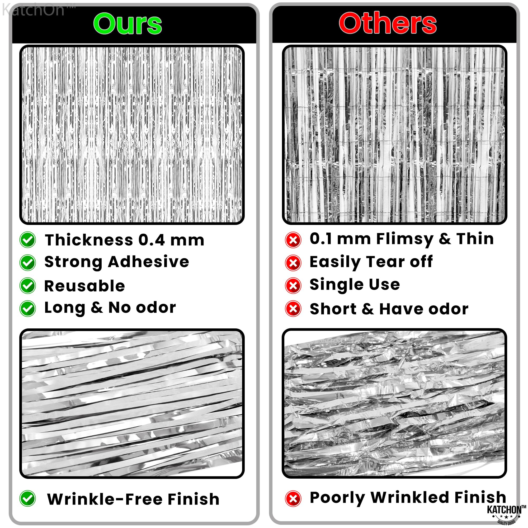 STURDY | DURABLE | REUSABLE : Make your silver party curtain stand out as a silver tinsel backdrop. This silver party streamers will help to add a sparkle to your silver party decorations. Our silver streamer backdrop is made from grade 'A' foil quality material, re-usable, durable and won't easily strip down. You can use these silver streamers as disco backdrop, silver tinsel backdrop and disco decorations, silver fringe curtain with our silver party backdrop, silver backdrop curtain, silver tassel backdrop, disco themed party decorations for silver new years decorations.