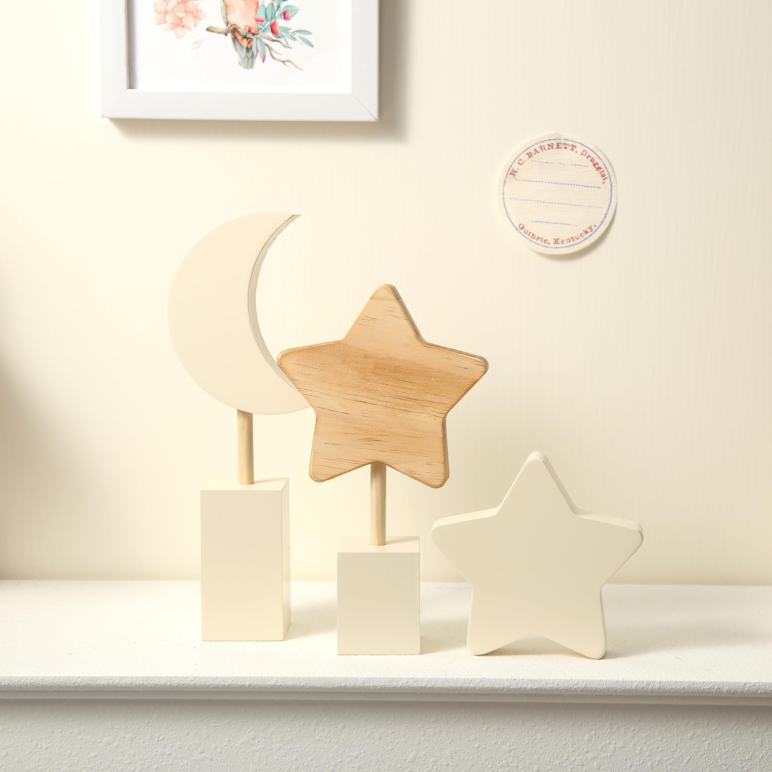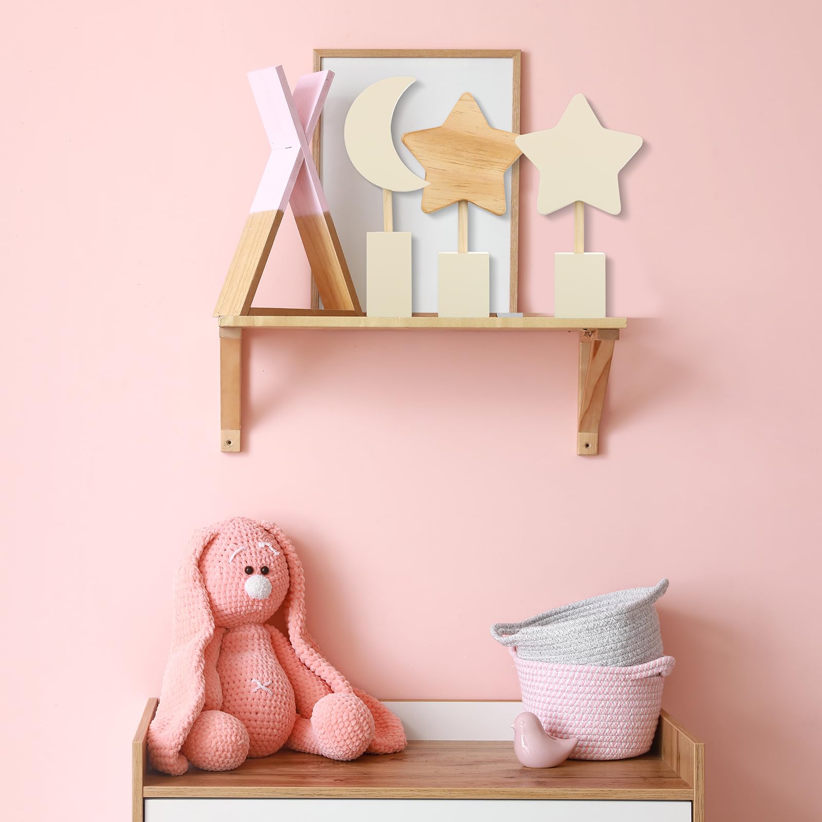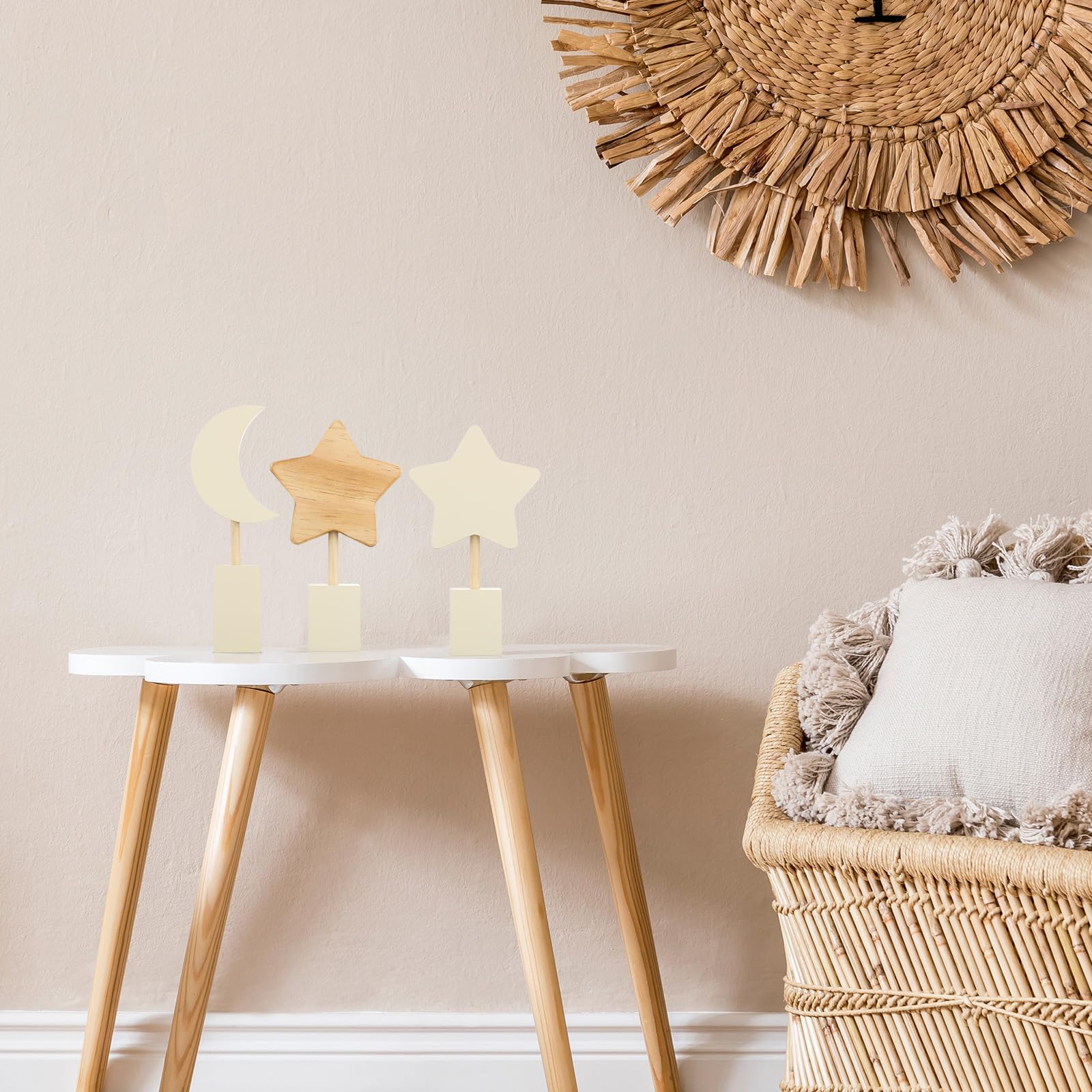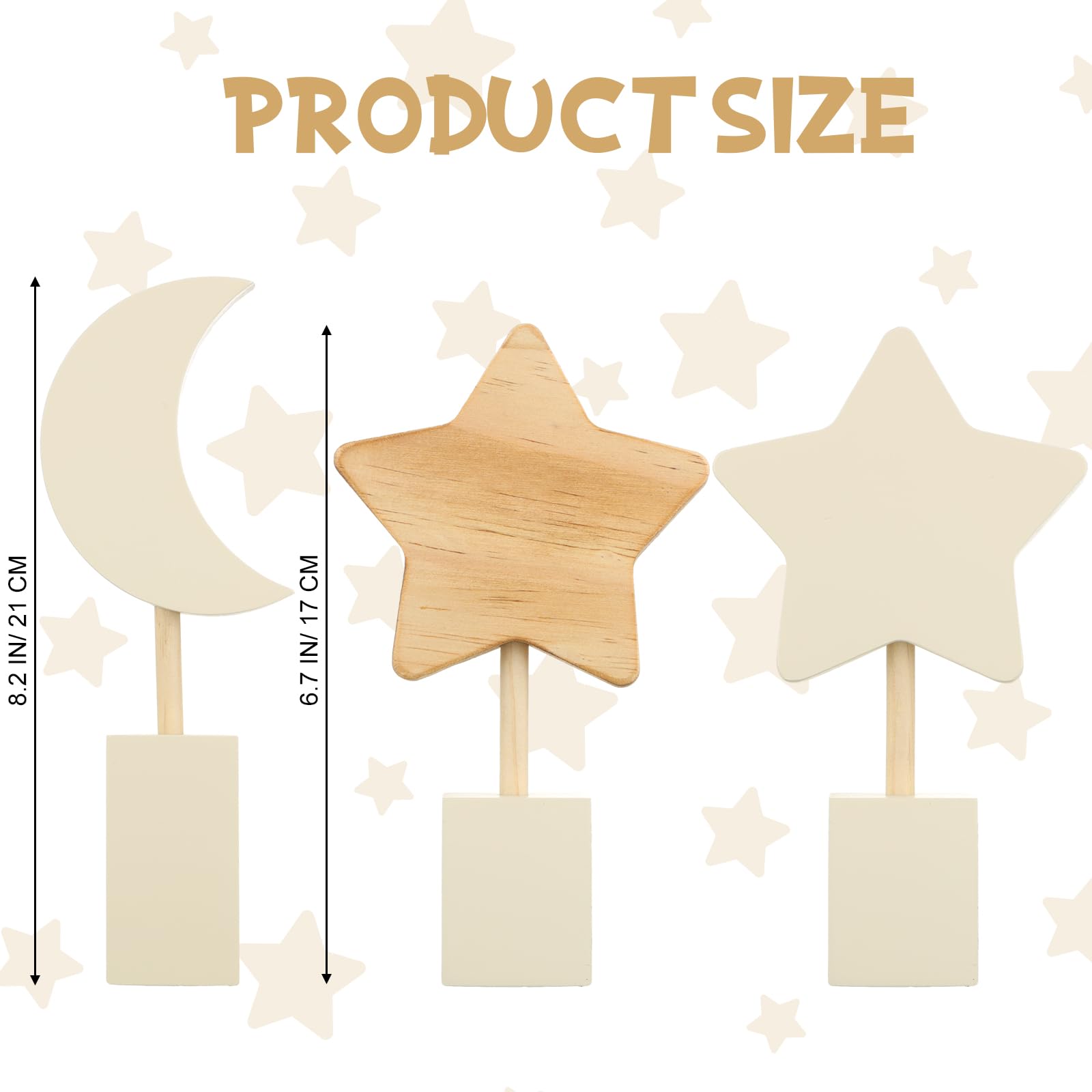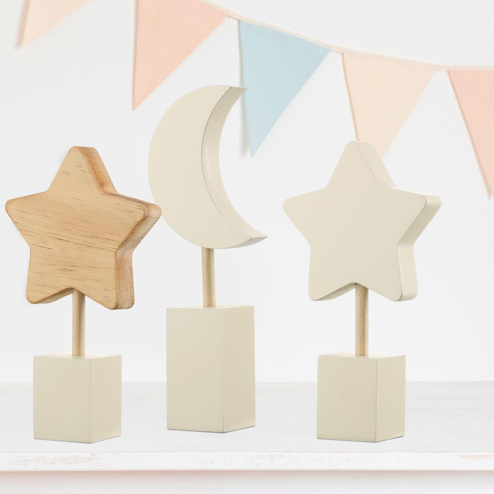 Ornament Set: our set includes 3 pieces of cute wall decors, 1 moon, and 2 stars; Each of them is carefully crafted to bring out their cuteness and charm; These charming patterns will bring a naturally playful feel to the space; They can transform your nursery or child's room into an adorable star and moon themed place