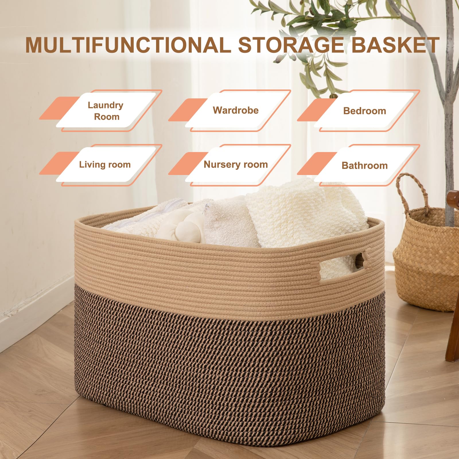 Natural Cotton Rope Basket: Better Material Composition. SIXDOVE woven basket is made from 100% cotton rope, soft and skin-friendly material without chemicals. No plastics and no harsh chemicals. Healthy and safe for babies, kids, and pets
