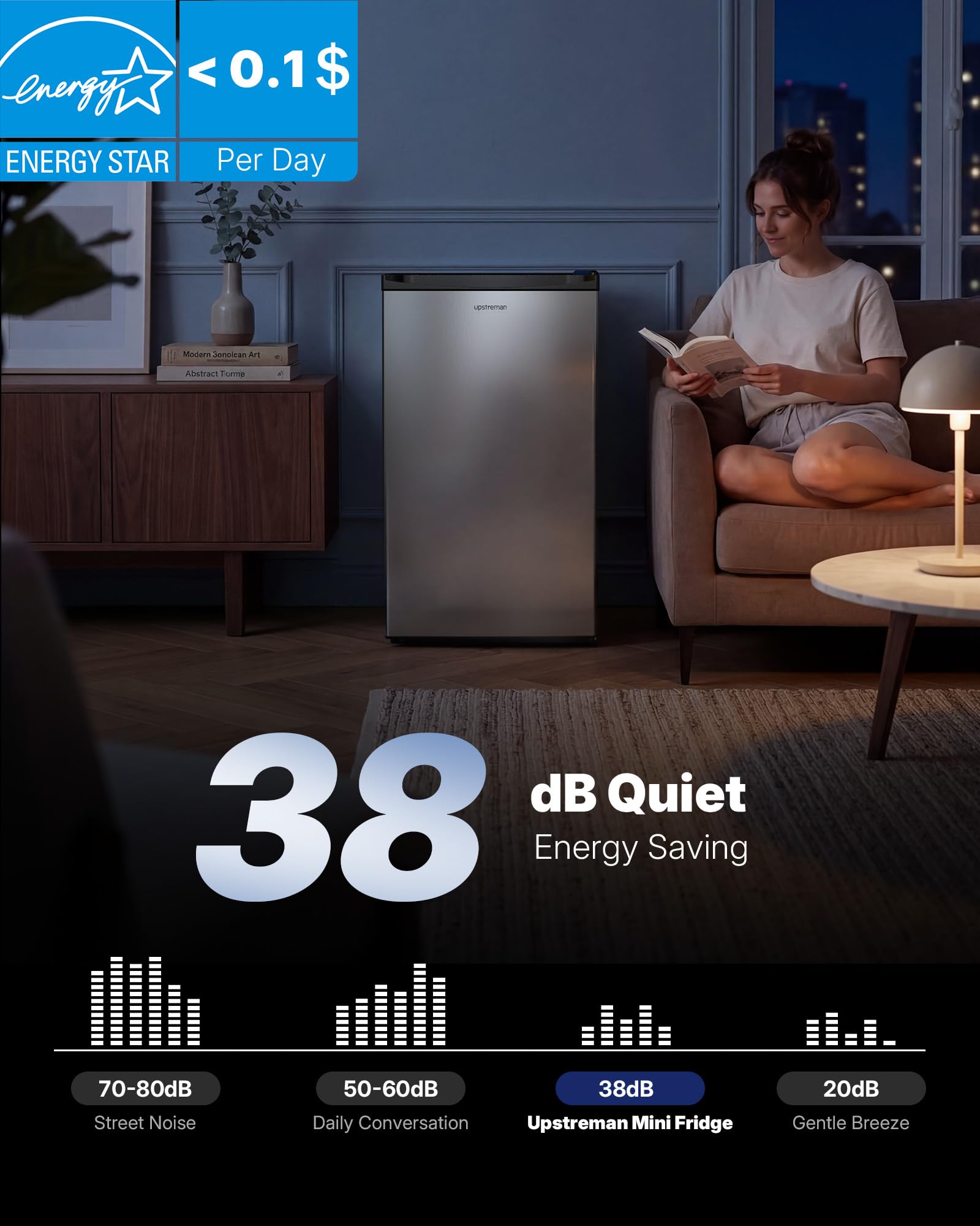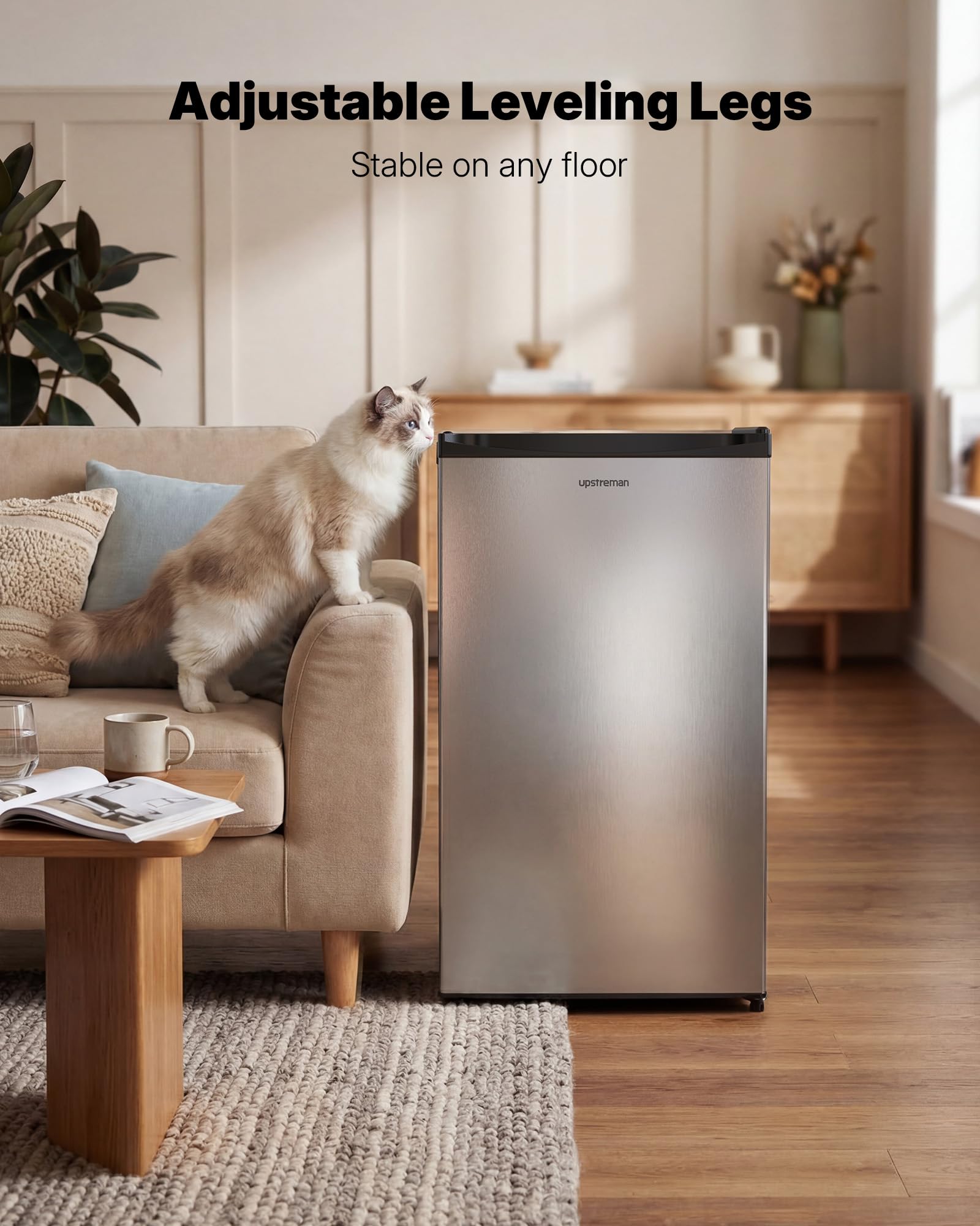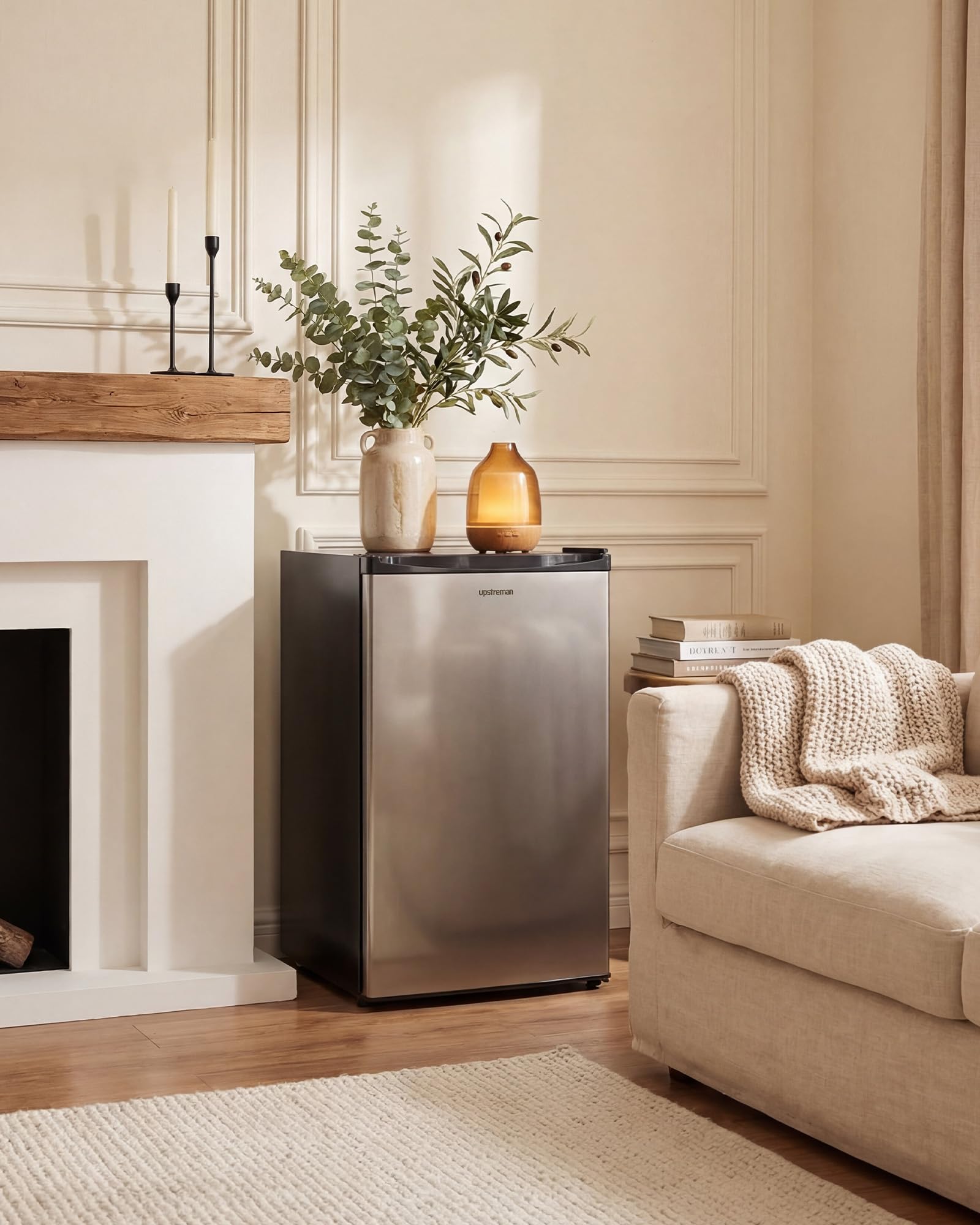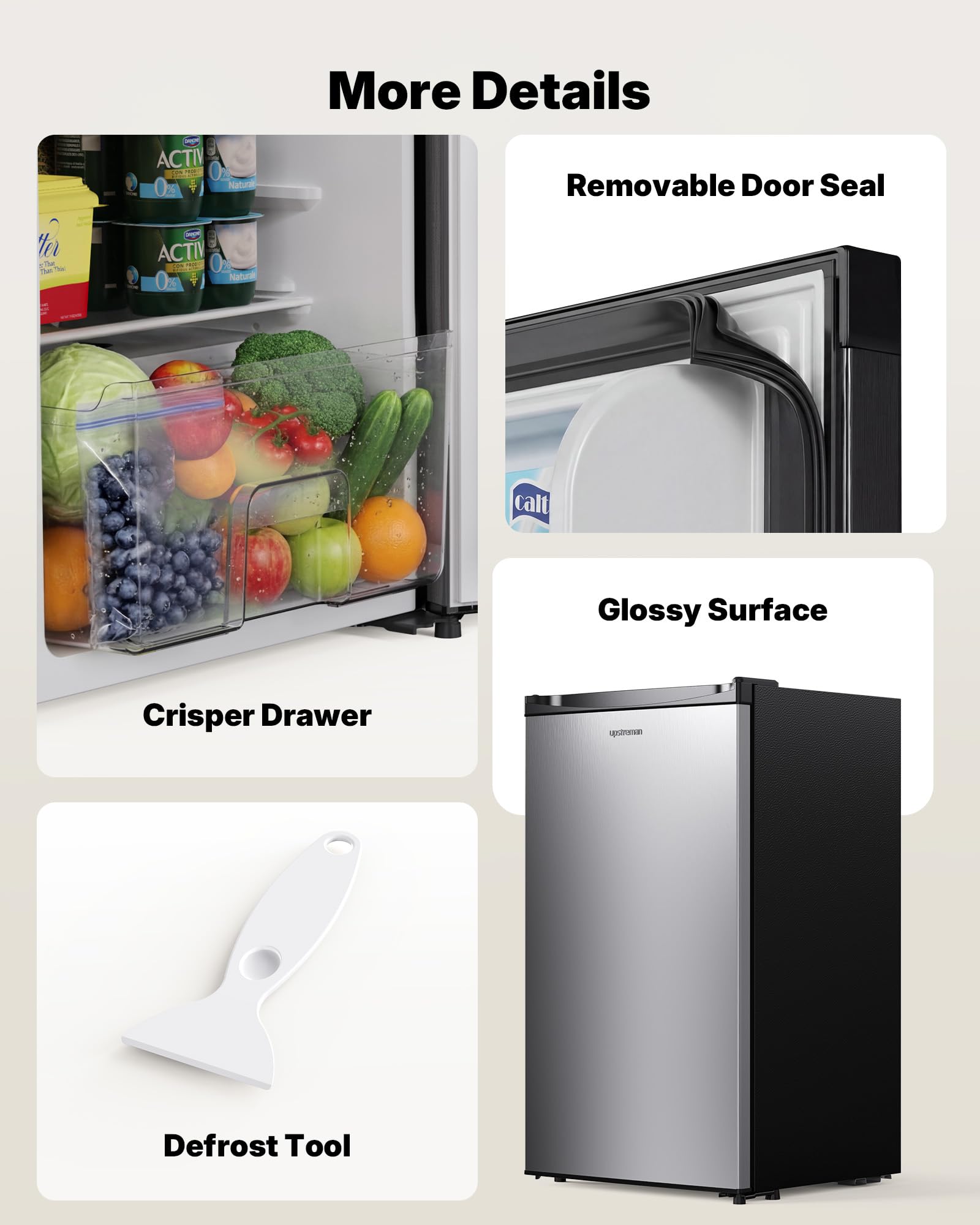 Accessories & Services: 1 Upstreman 3.2 Cu.ft mini fridge with freezer, 2 removable shelves, 1 crisper drawer, 1 defrost tool and worry-free customer service