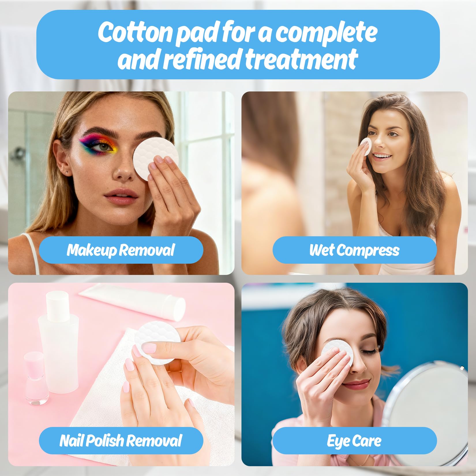 Multifunctional Beauty Uses: face rounds cotton suitable for makeup removal, nail polish removal, toner application, facial cleansing, exfoliation, skin cleansing, wet compress, eye care, DIY facial mask, etc. These multi-purpose pads cotton are a must-have in every skin care step, makeup pads easily meeting all your care needs from face to details