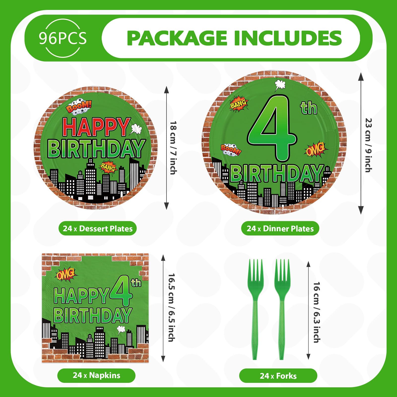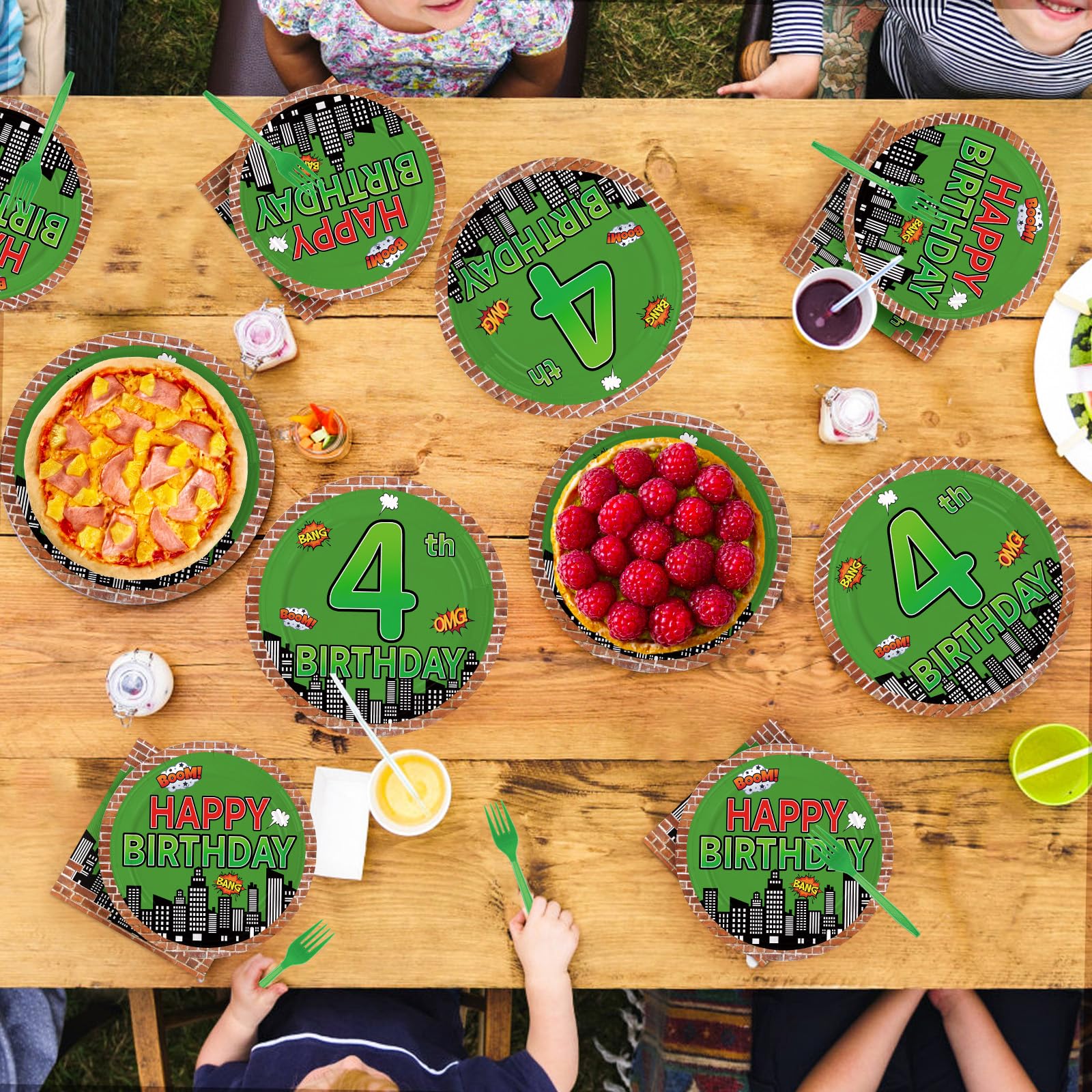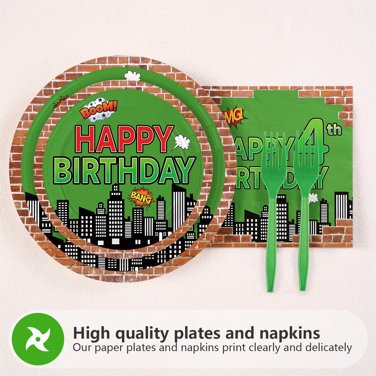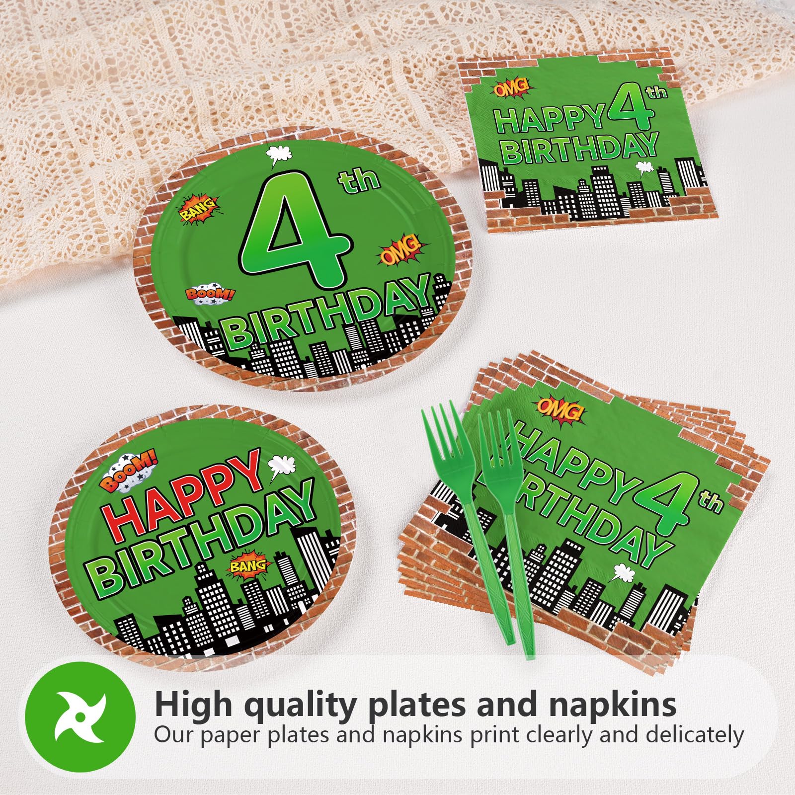 Perfect for 4th Birthday Themes: Tailored specifically for fourth birthday milestones! The "Happy 4th Birthday" text on plates and napkins personalizes your event, eliminating generic decorations. Versatile enough for action-themed parties, reptile-themed activities, or hero-inspired celebrations. Compact packaging ensures easy storage until the big dayβgreat for party planners, parents, or gift-givers seeking ready-to-use solutions