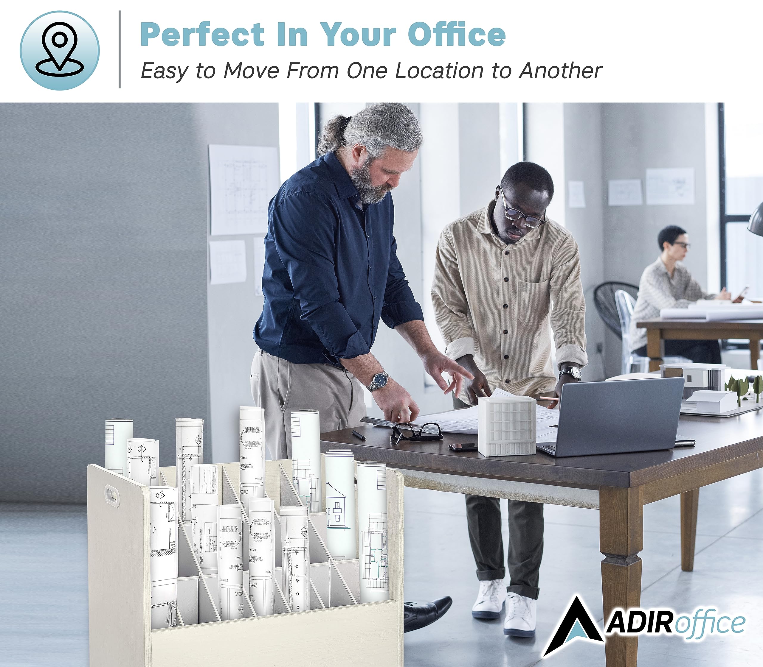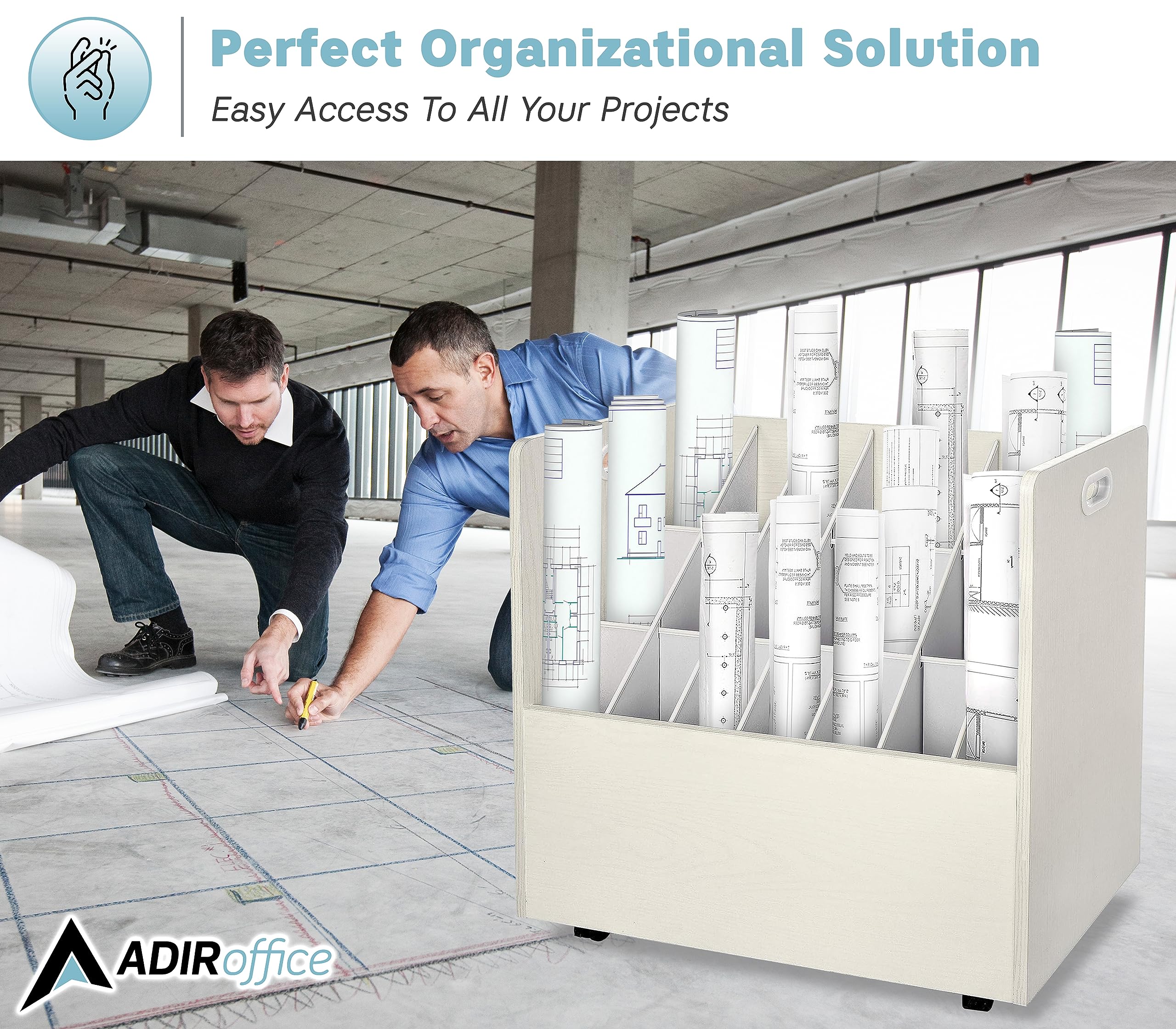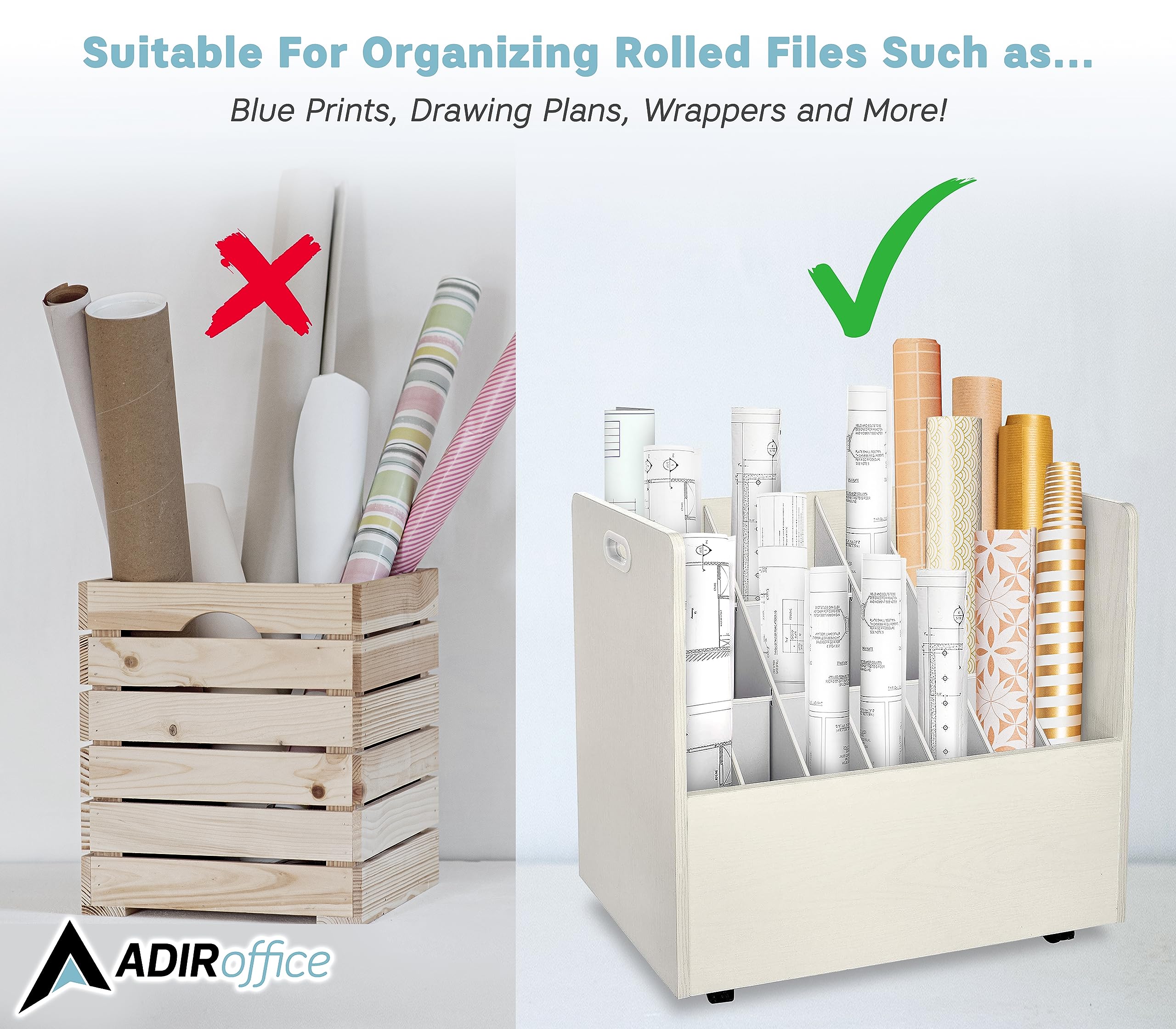 Versatile use: Adir’s rolled files organizer serves multiple purposes. It can be used as a blueprint storage cabinet, rolled poster storage, vinyl roll holder, map storage cart, architectural plan storage, and more.