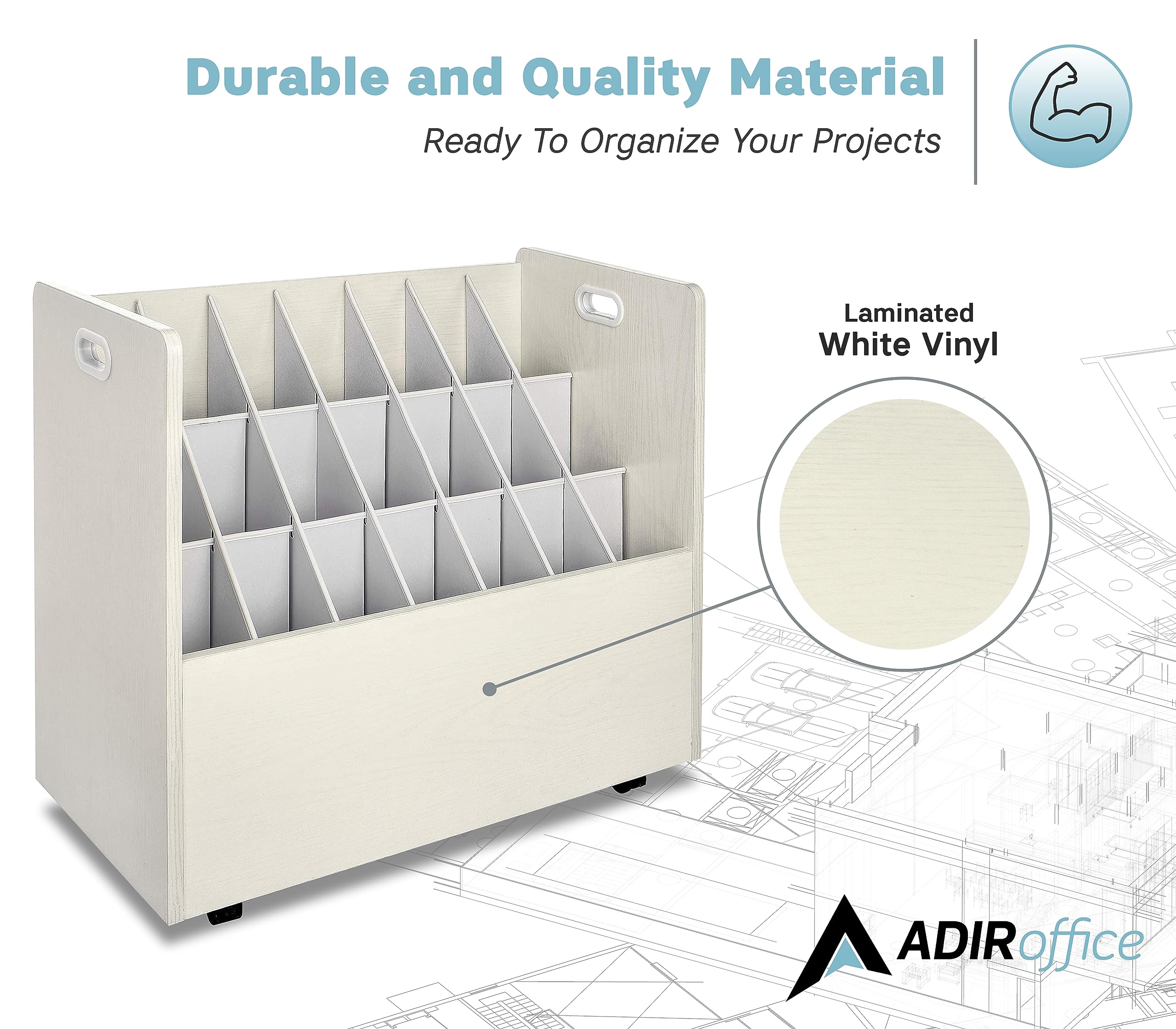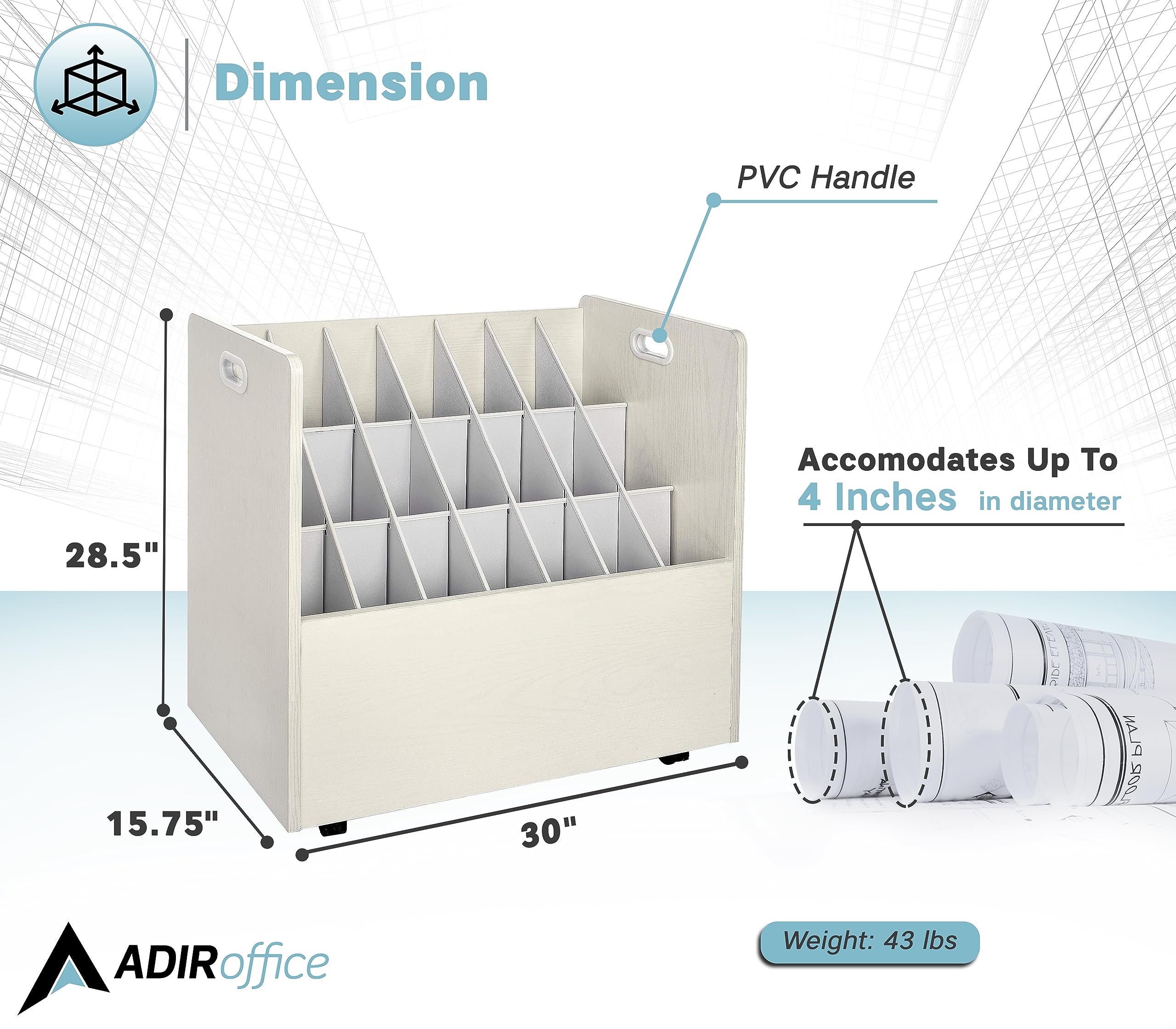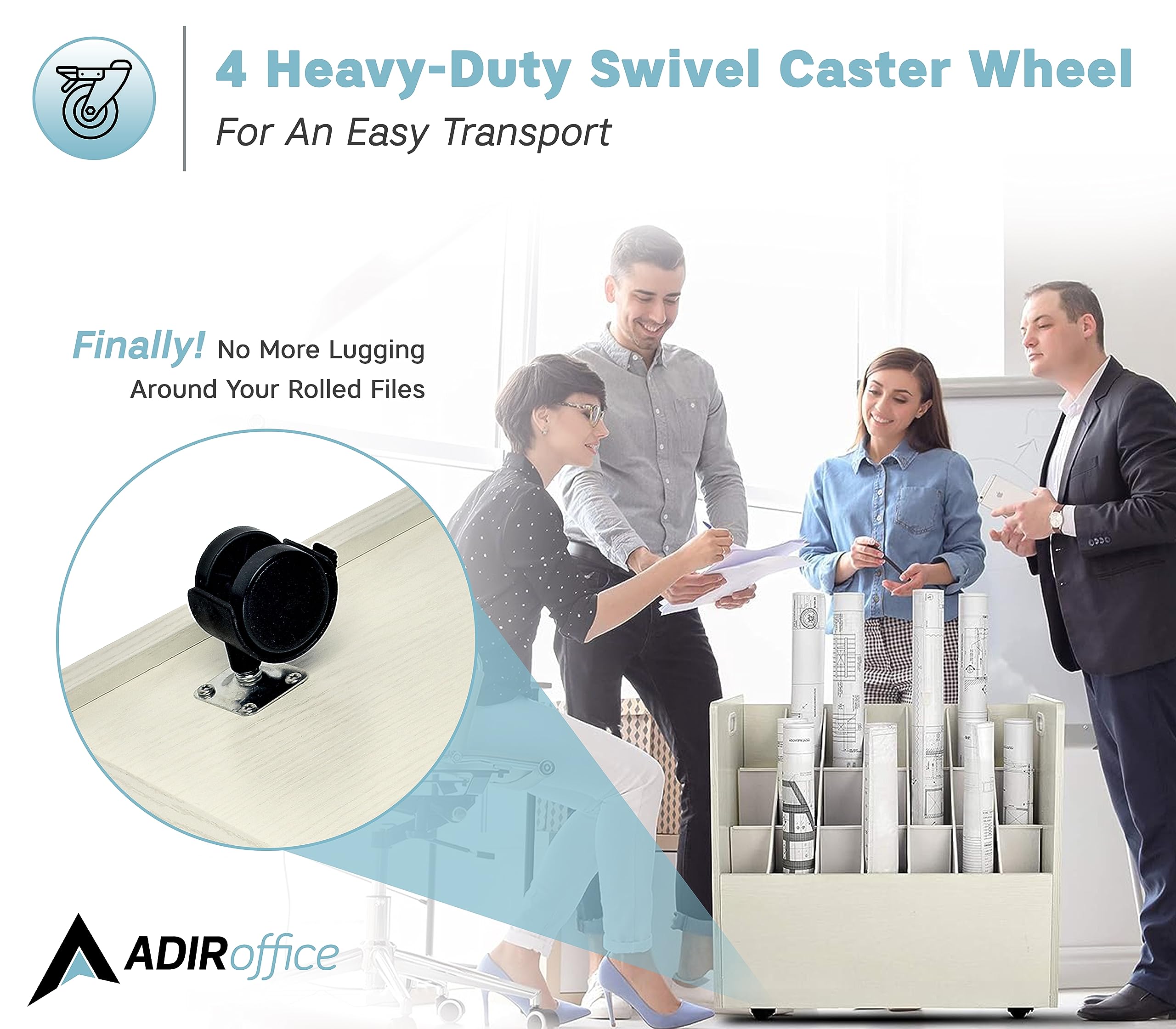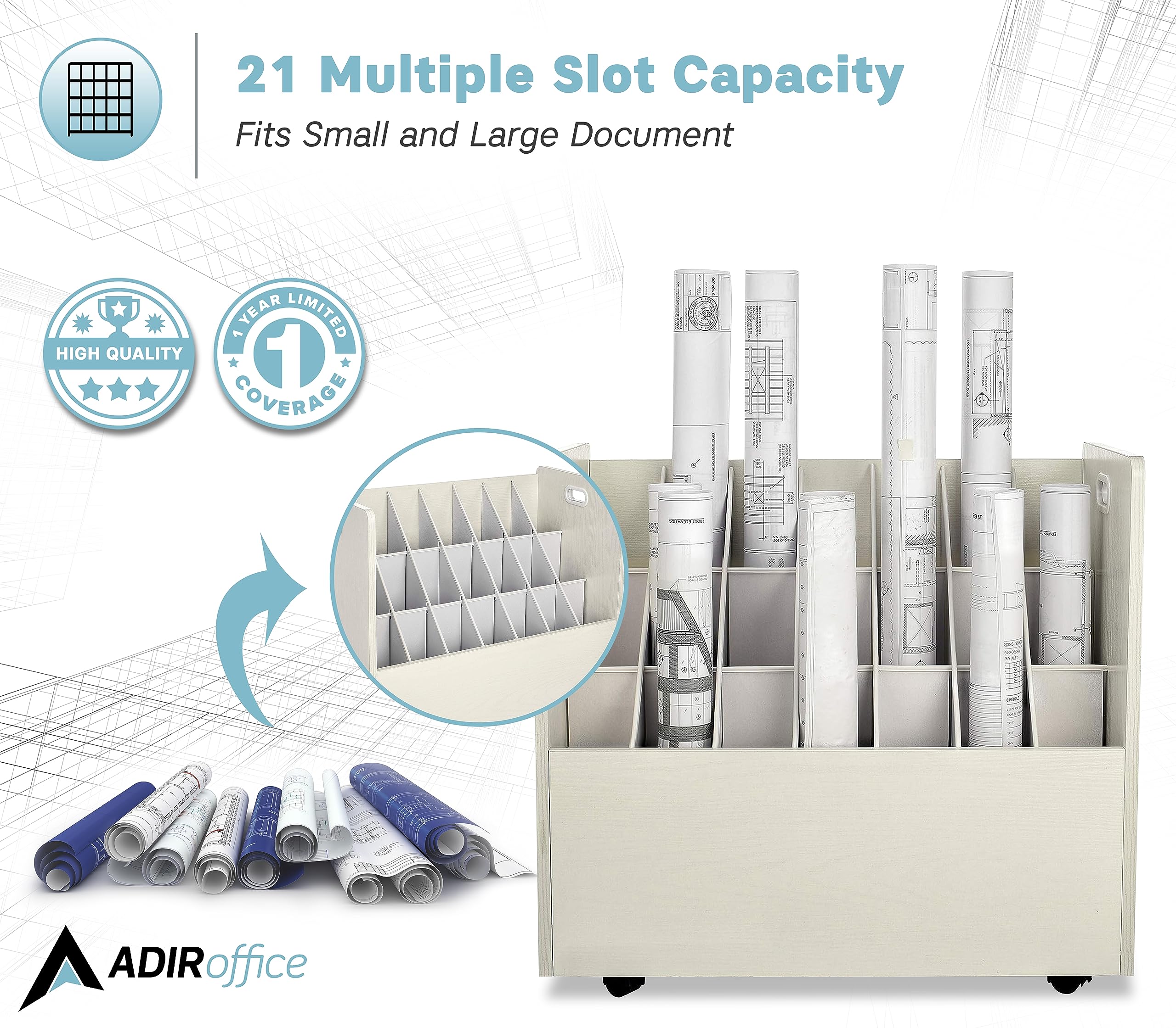 Versatile use: Adir’s rolled files organizer serves multiple purposes. It can be used as a blueprint storage cabinet, rolled poster storage, vinyl roll holder, map storage cart, architectural plan storage, and more.