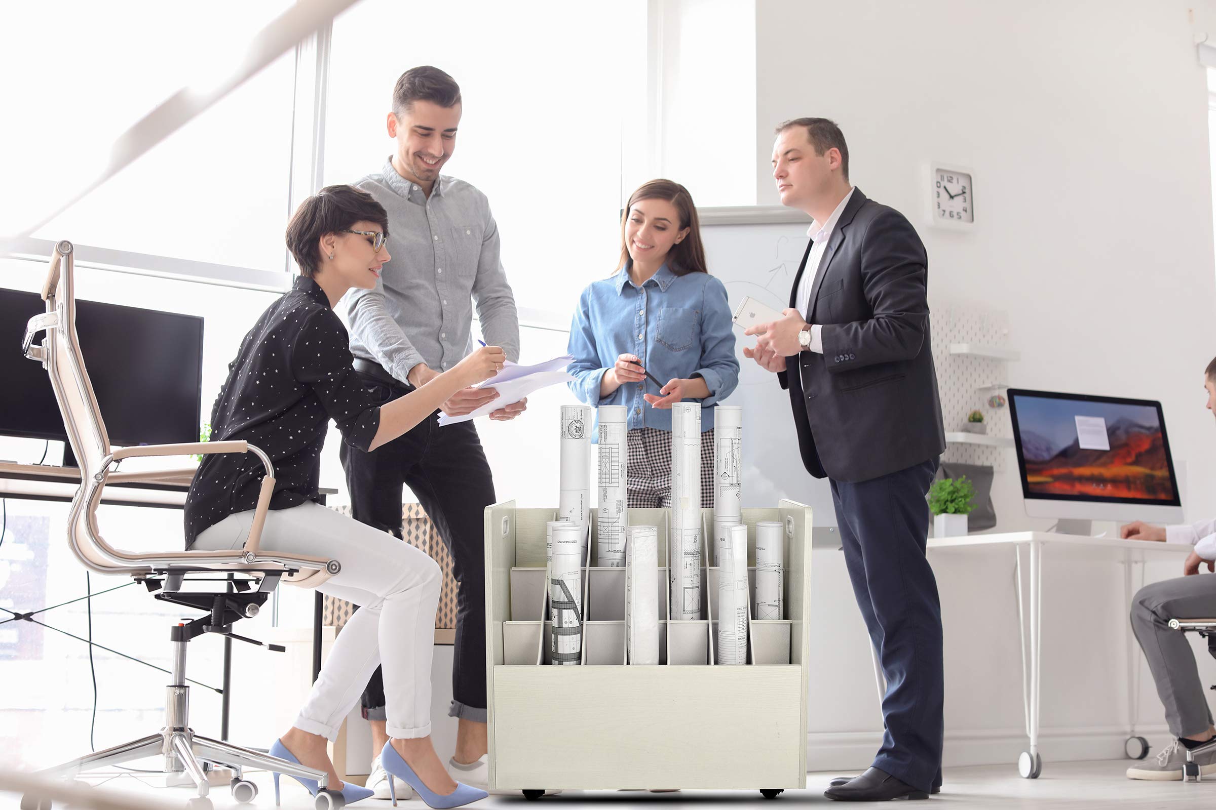 Variety in sizes & colors: Choose the Adir’s blueprint storage box that fits your needs, available in 20, 21, and 50 roll compartments. Plus, pick your preferred shade from Black, White, or Mahogany. Multiple options tailored for your blueprint station.