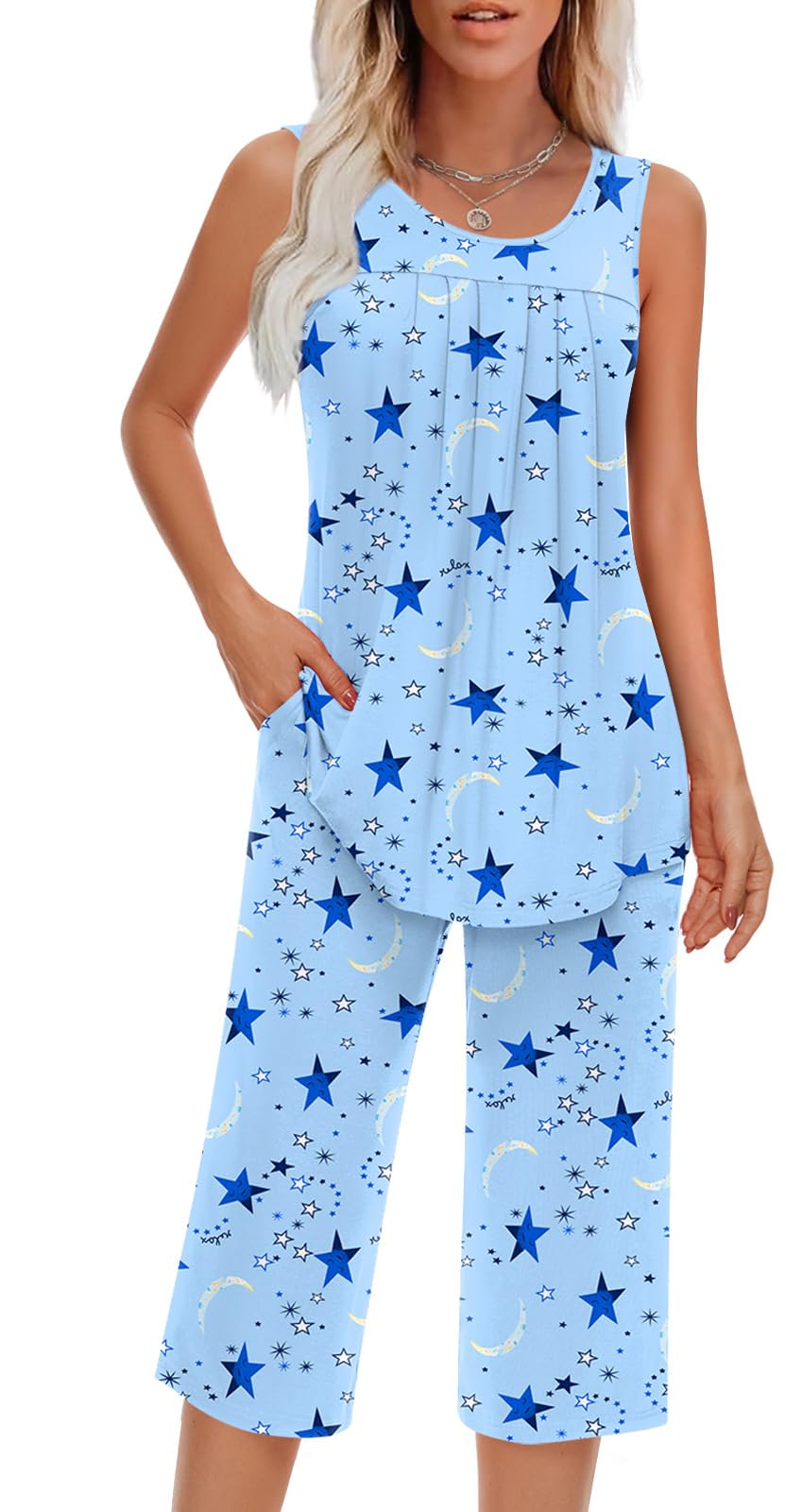 Occasion: This lightweight and comfortable women's summer sleeveless set can be used in various occasions. You can wear it as home clothes to sleep or cook; You can also wear it to go out for a dog walk or morning run, of course, this is also a good set for doing yoga exercises