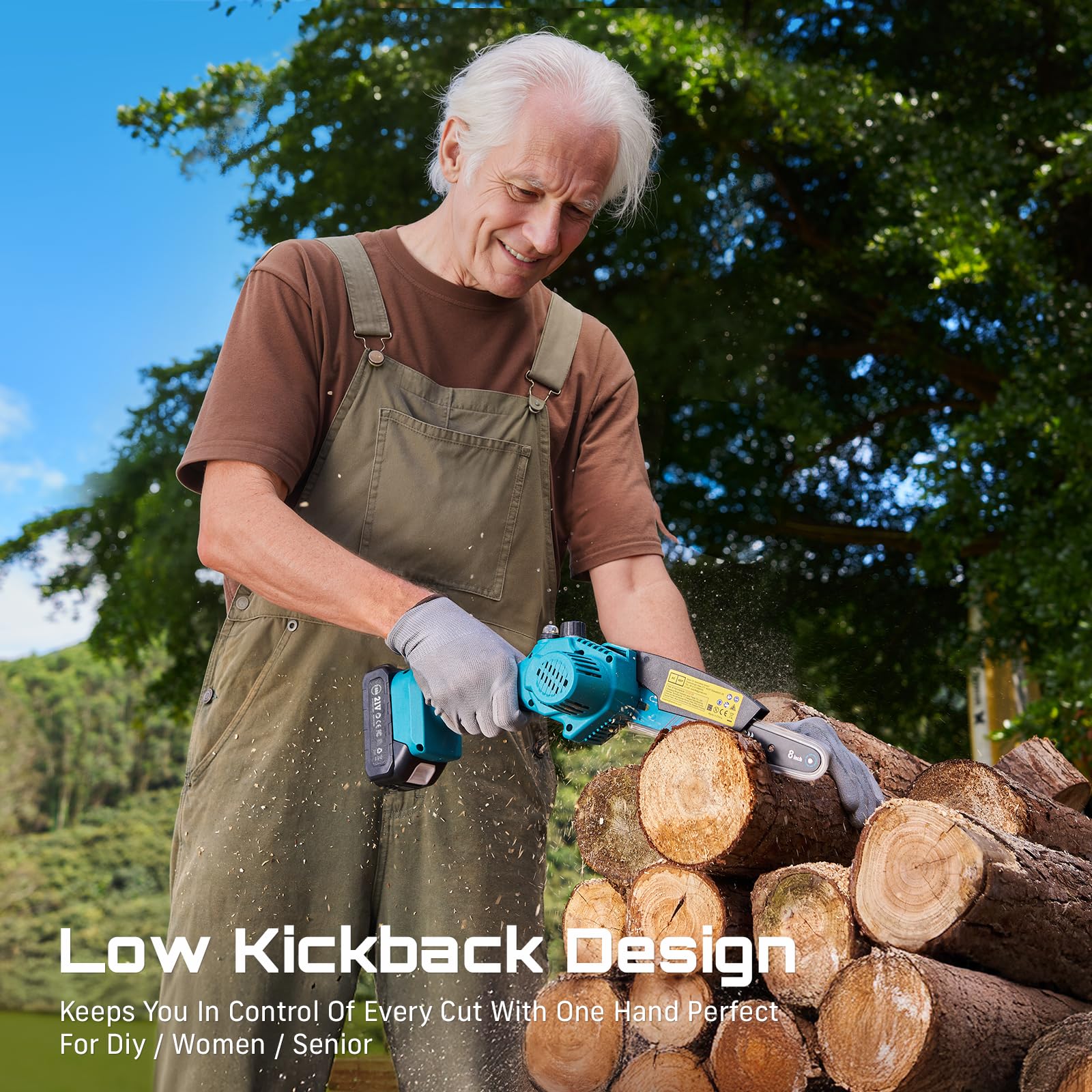 Unmatched Cutting Power & Speed: Experience the ultimate in cutting efficiency with our 8" mini chainsaw, engineered with a high-performance, quenched guide chain and a pure copper motor. Equipped with dual 21V batteries, it effortlessly slices through logs up to 7.91 inches in diameter in just 10 seconds, delivering swift and powerful results
