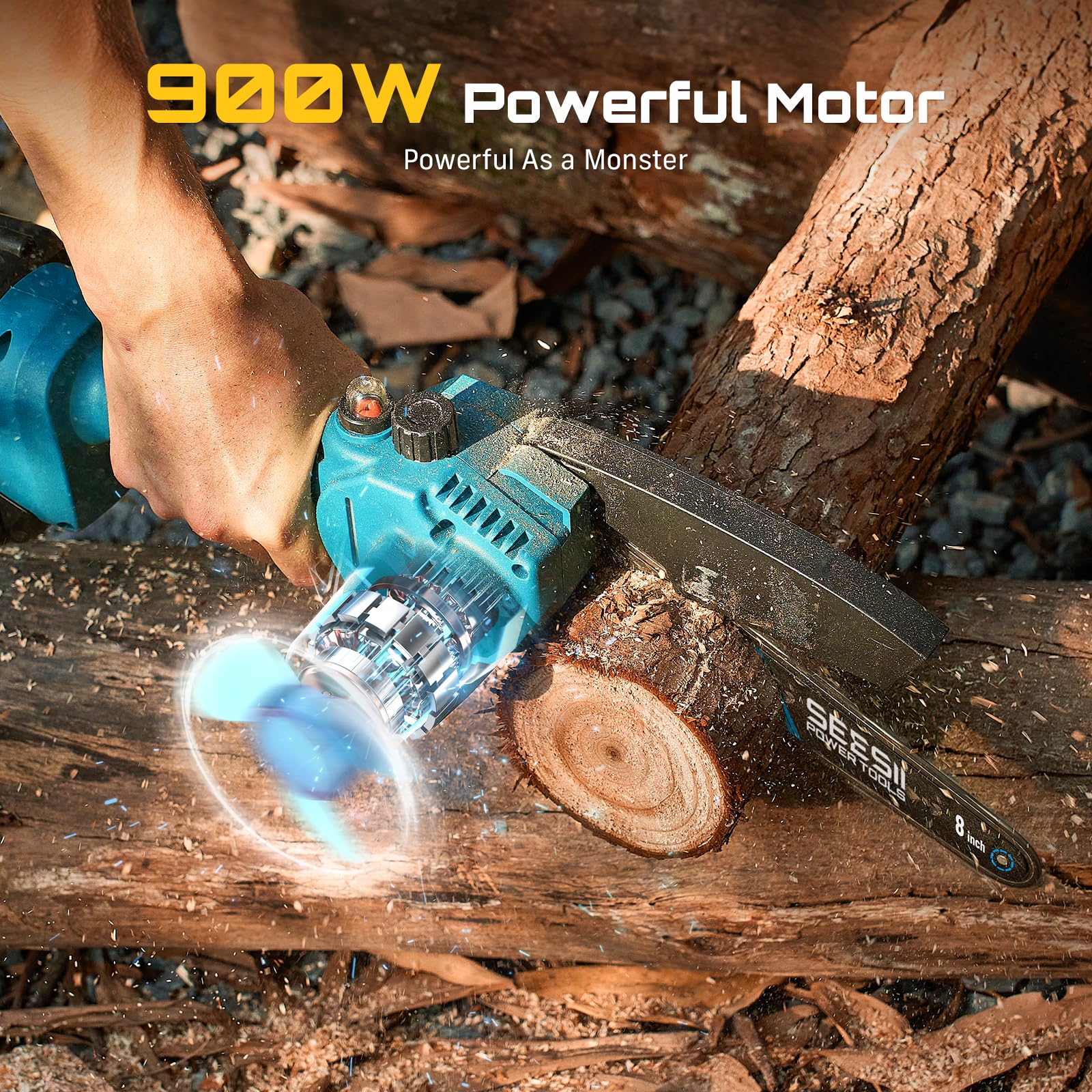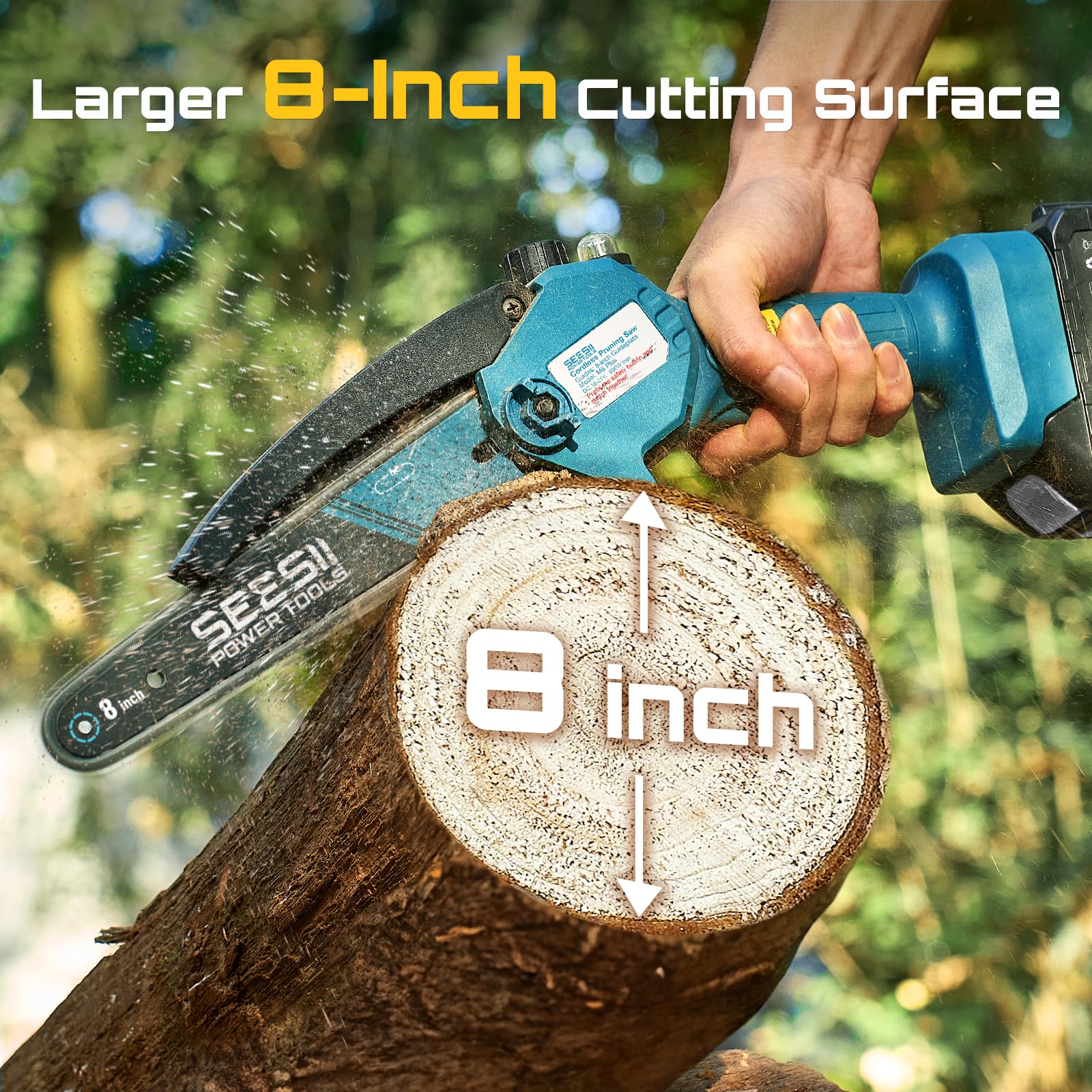 SEESII Mini Chainsaw 8 inch,Cordless Chainsaw w/ 2pcs 2000mAh Batteries,Oiler System & Replacement Chain,Handheld Chain Saw w/Safety Lock,Battery Powered Chain saw for Wood Tree Cutting,CH820+