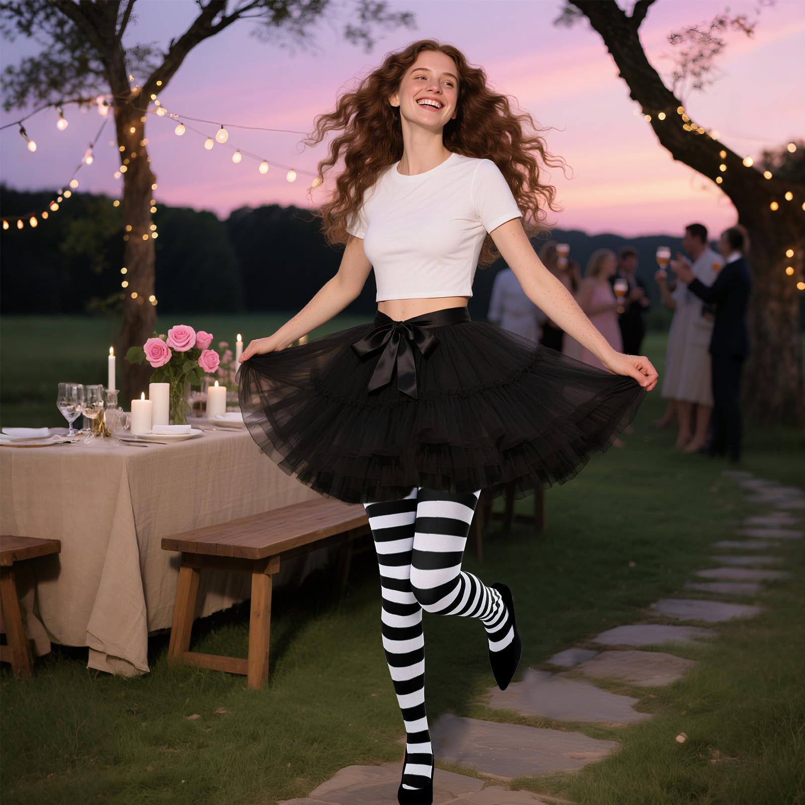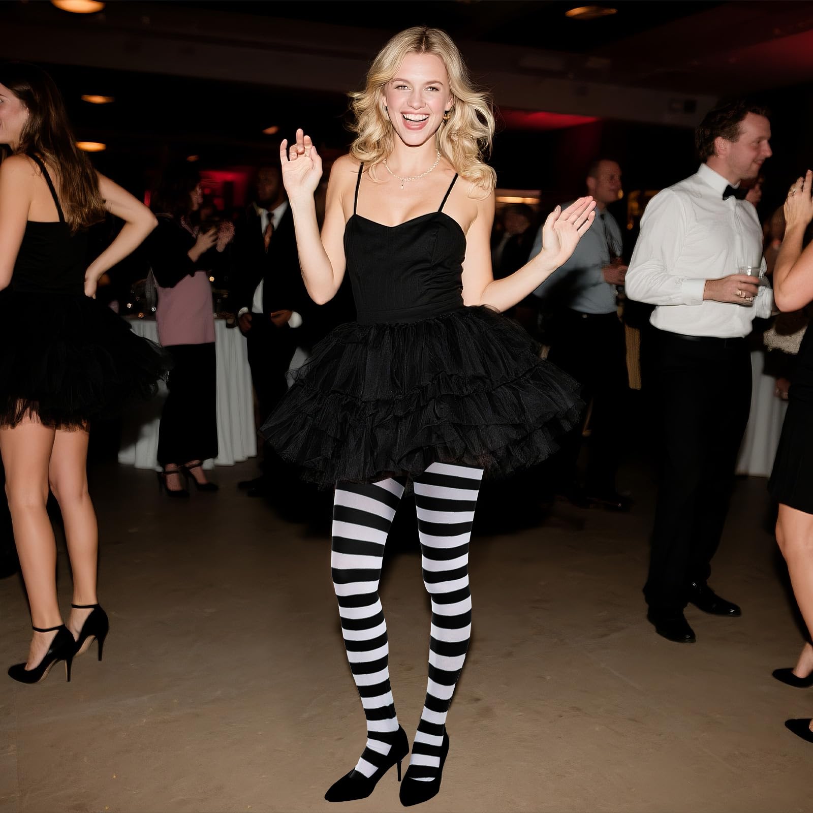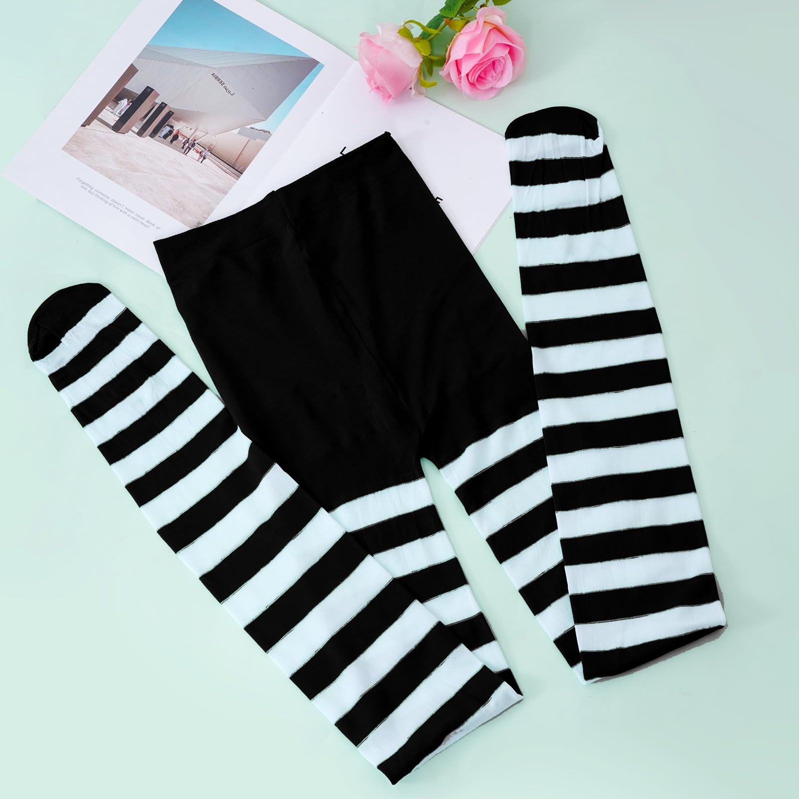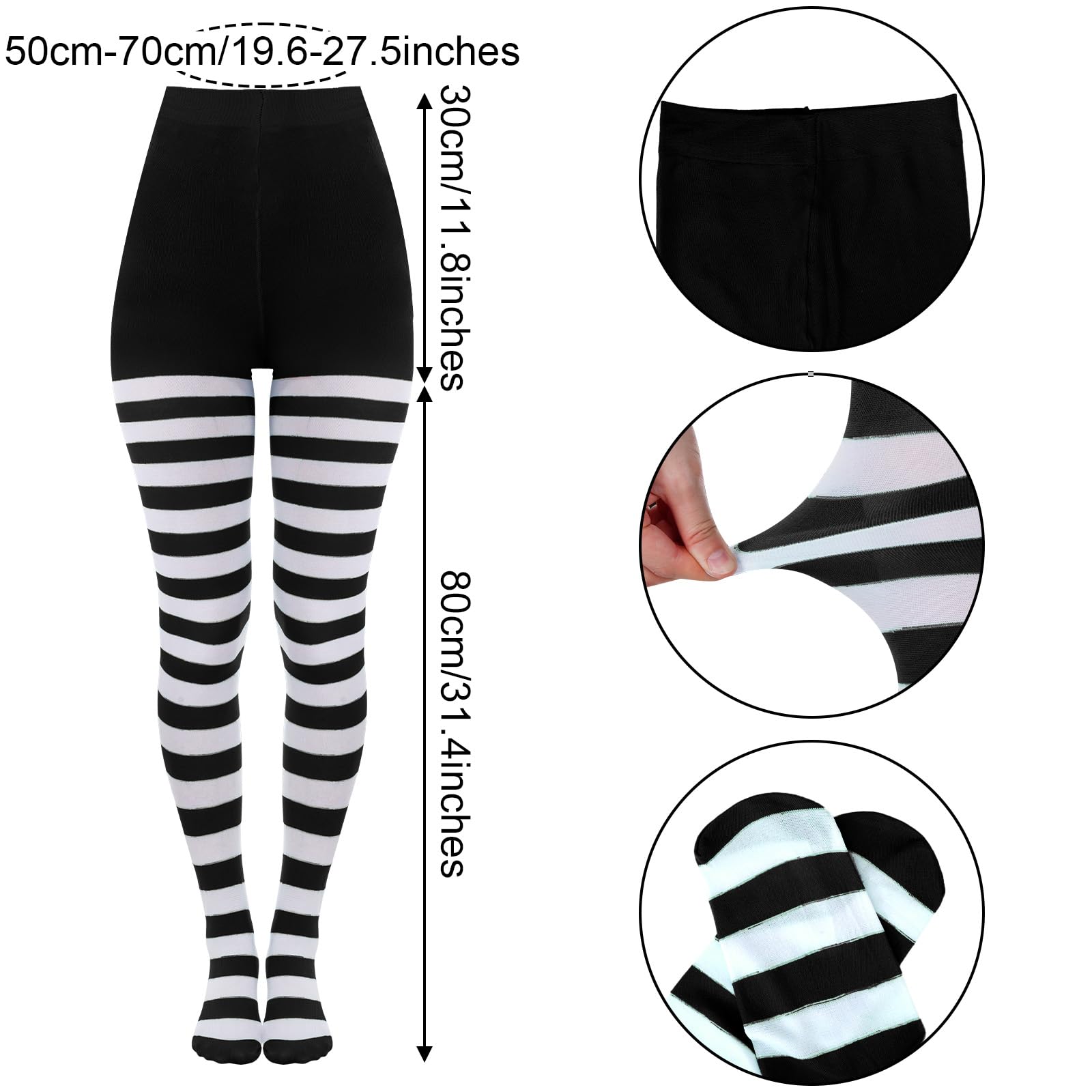 COMFORTABLE: Our striped tights are not only eye-catching but also incredibly comfortable. Crafted from high-quality Nylon, these striped tights are designed to provide long-lasting durability and a luxurious feel against your skin.