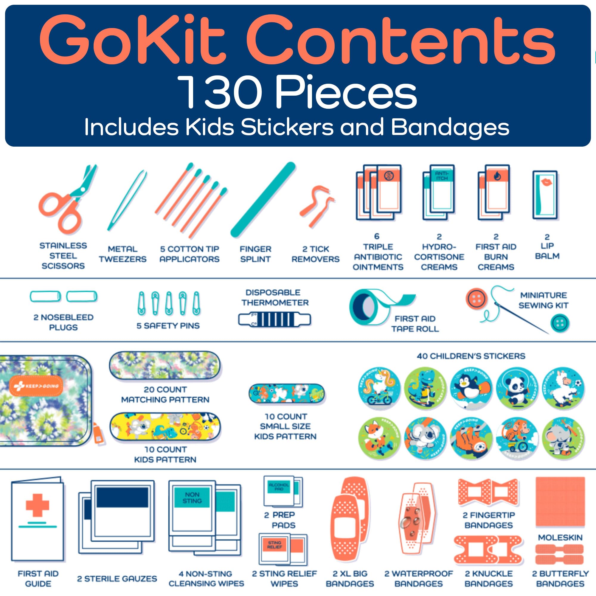 All You Need – Good things come in small packages! Your compact first aid kit has 130 pieces of essential first aid supplies for every ouchie. From burn relief to bandages, you’ll be ready for anything.