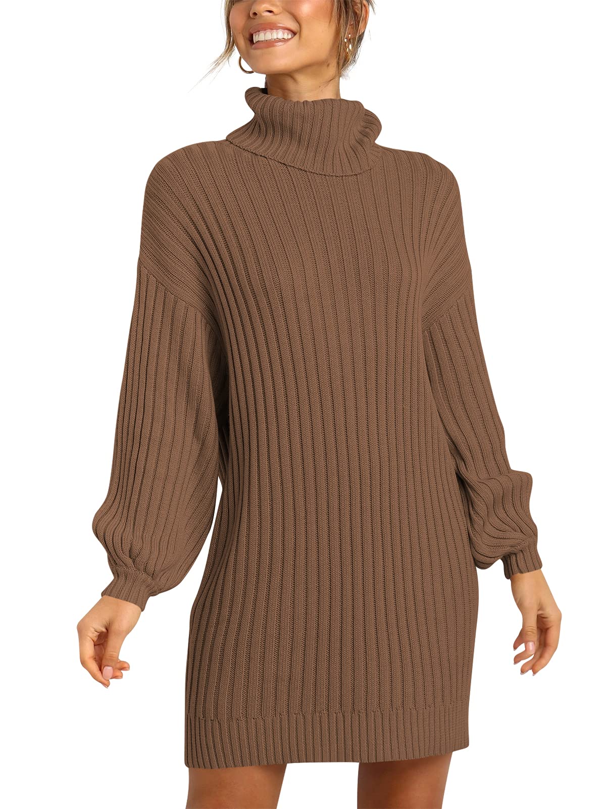 Features - Women's sweater dress, turtleneck neck, batwing long sleeve, knitted. This women's oversized dresses perfect for daily wear outdoor wearing, dating, casual, office; Great with high heels, boots etc