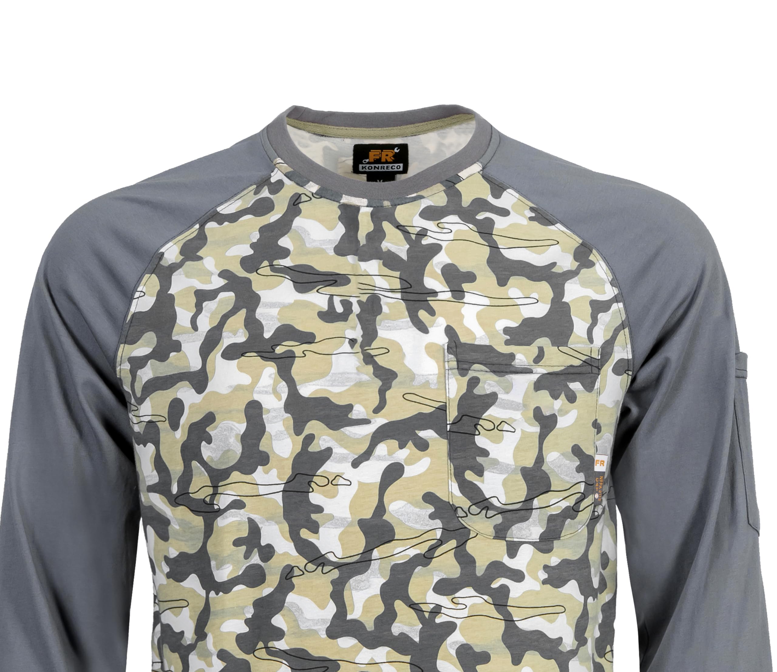 [Applied Design]Preshrunk & Pre-washed,Machine Washable.Classic crew neck style with one chest pocket and one sleeve pocket for your convenient storage of small stuffs.Rib-Kint collar and cuffs.Our FR shirt provides you a more comfortable dressing experience.