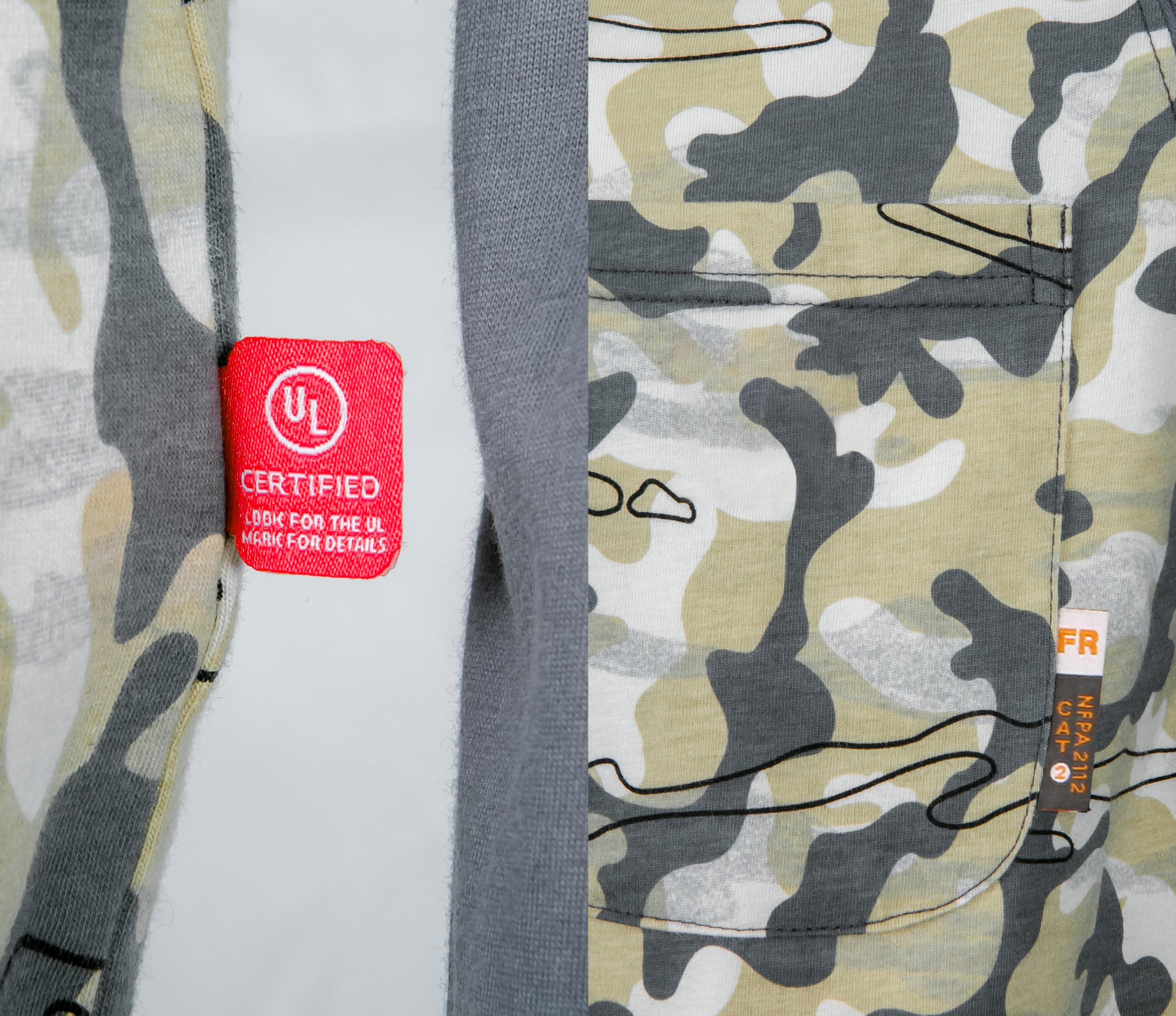 [Authoritative Certification]There is a FR tag on the pocket of the shirt and a UL tag on the inseam.The product will come with a sample of the shirt fabric,which you can use to test its FR properties with fire or to sew the shirts after minor damage.It is certified by UL to comply with ASTM1506,NFPA70E,and NFPA2112 standards.