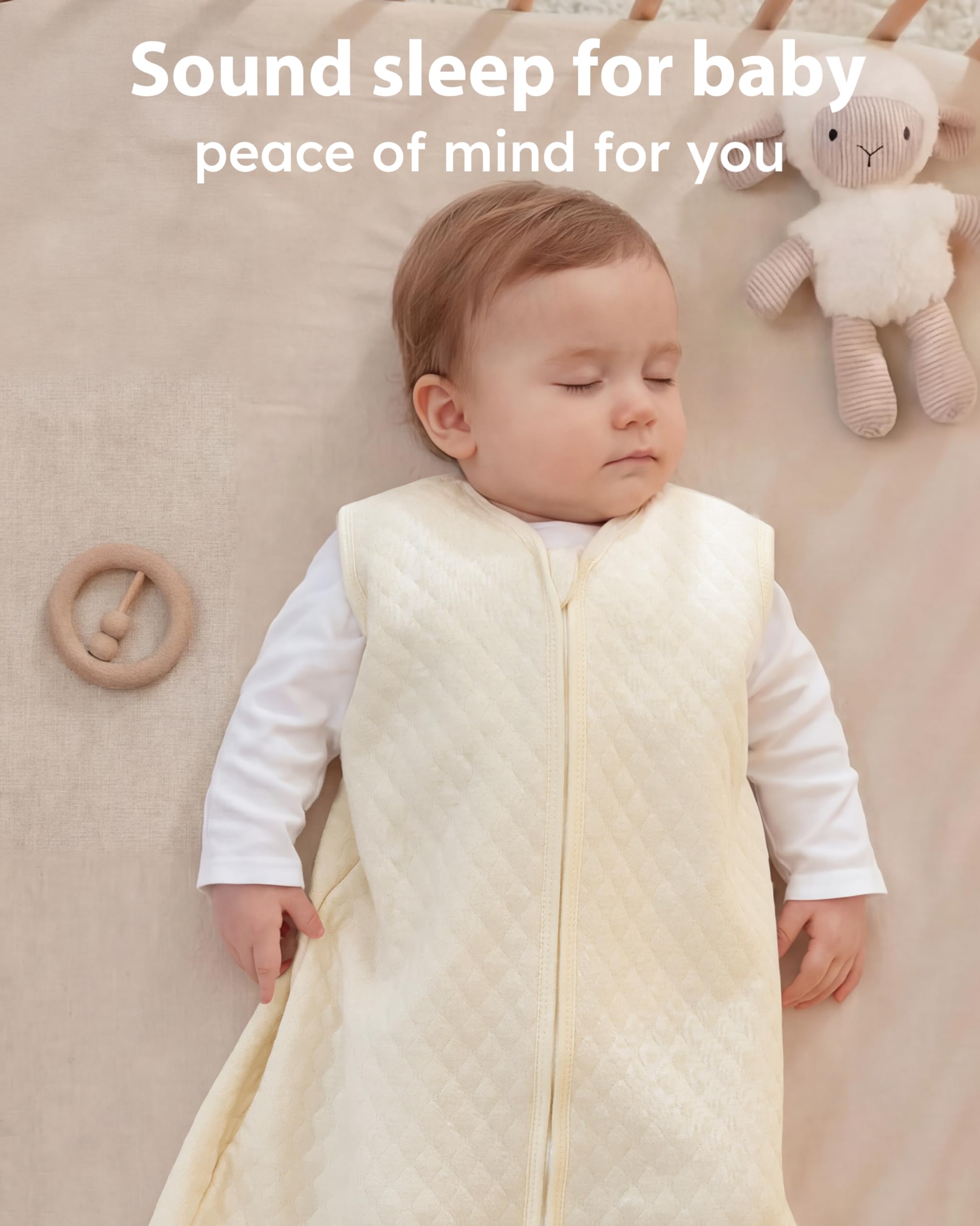 Breathable Fabric: Made from a blend of premium cotton and polyester, this sleep sack promotes airflow to keep your baby comfortable in every season. No more stuffiness or trapped sweat. When your baby sleeps well, you rest easy too.