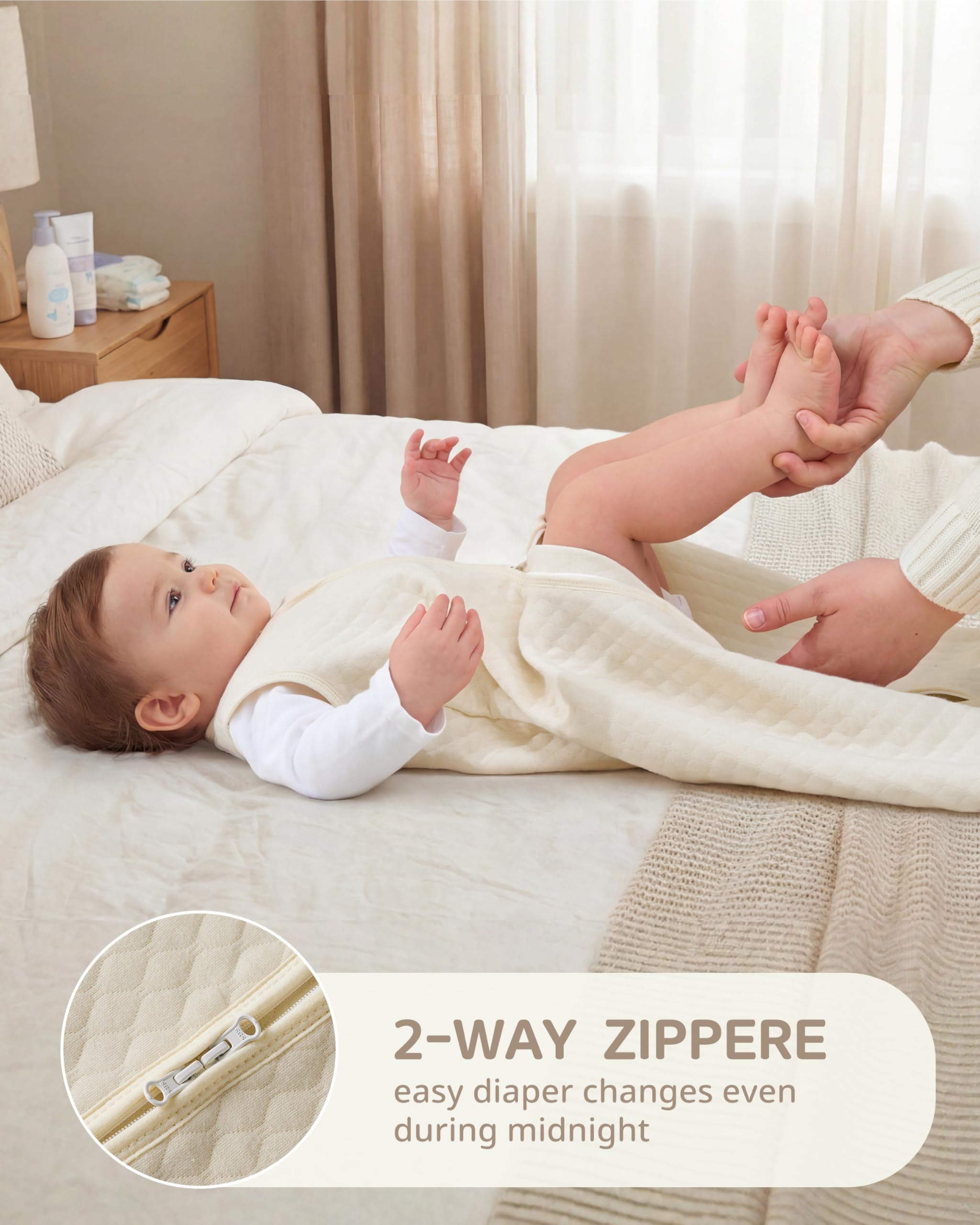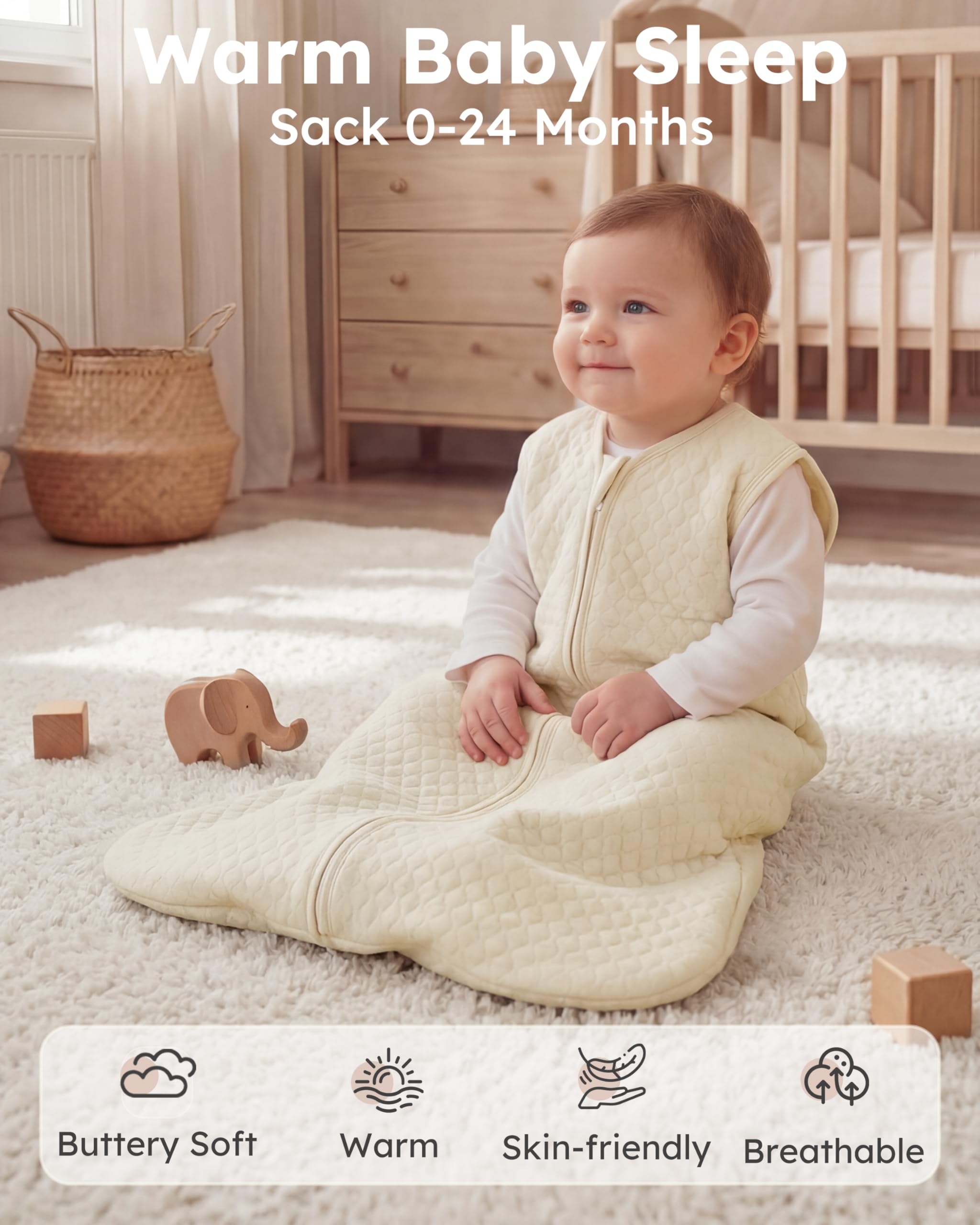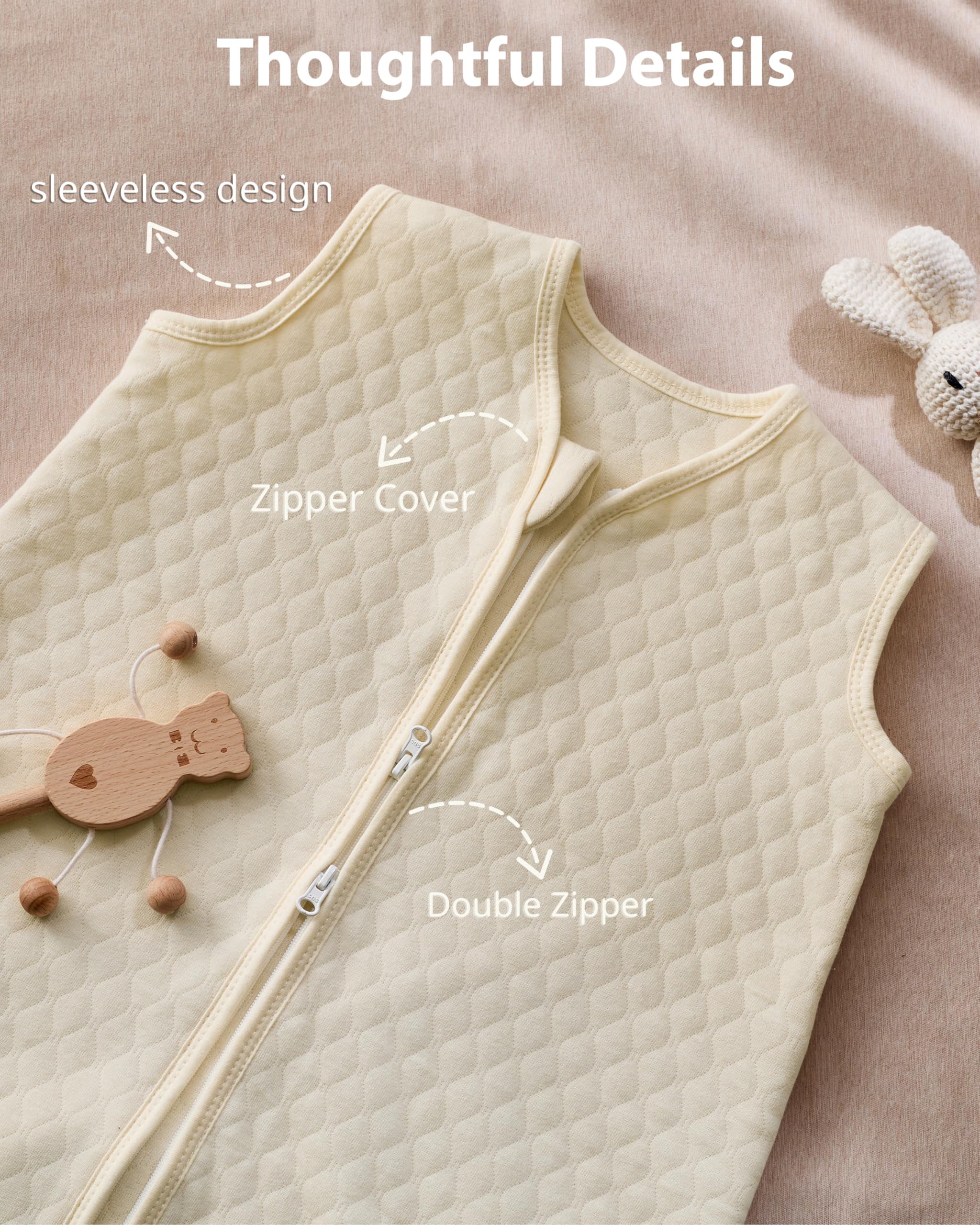 Quilted to Last: The long-lasting quilted design for the baby sleep sack keeps the fill evenly in place after repeated washes. No shifting, no bunching, which means worry-free for you and fewer replacements as your baby grows. It provides just the right warmth and is completely washable without worry.