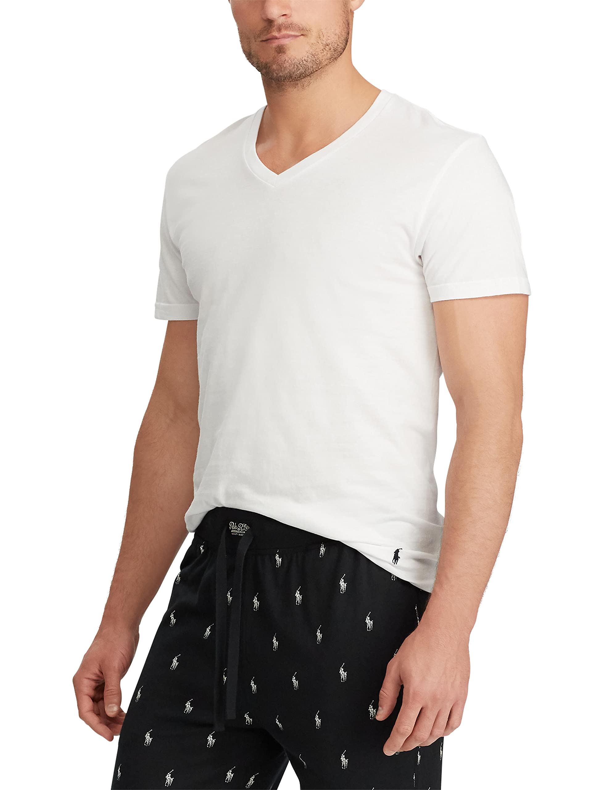 Description Polo Ralph Lauren’s V-neck undershirt is made from soft cotton jersey that wicks away moisture to help keep you dry and comfortable. It’s cut in Polo’s slightly relaxed Classic Fit for freedom of movement.