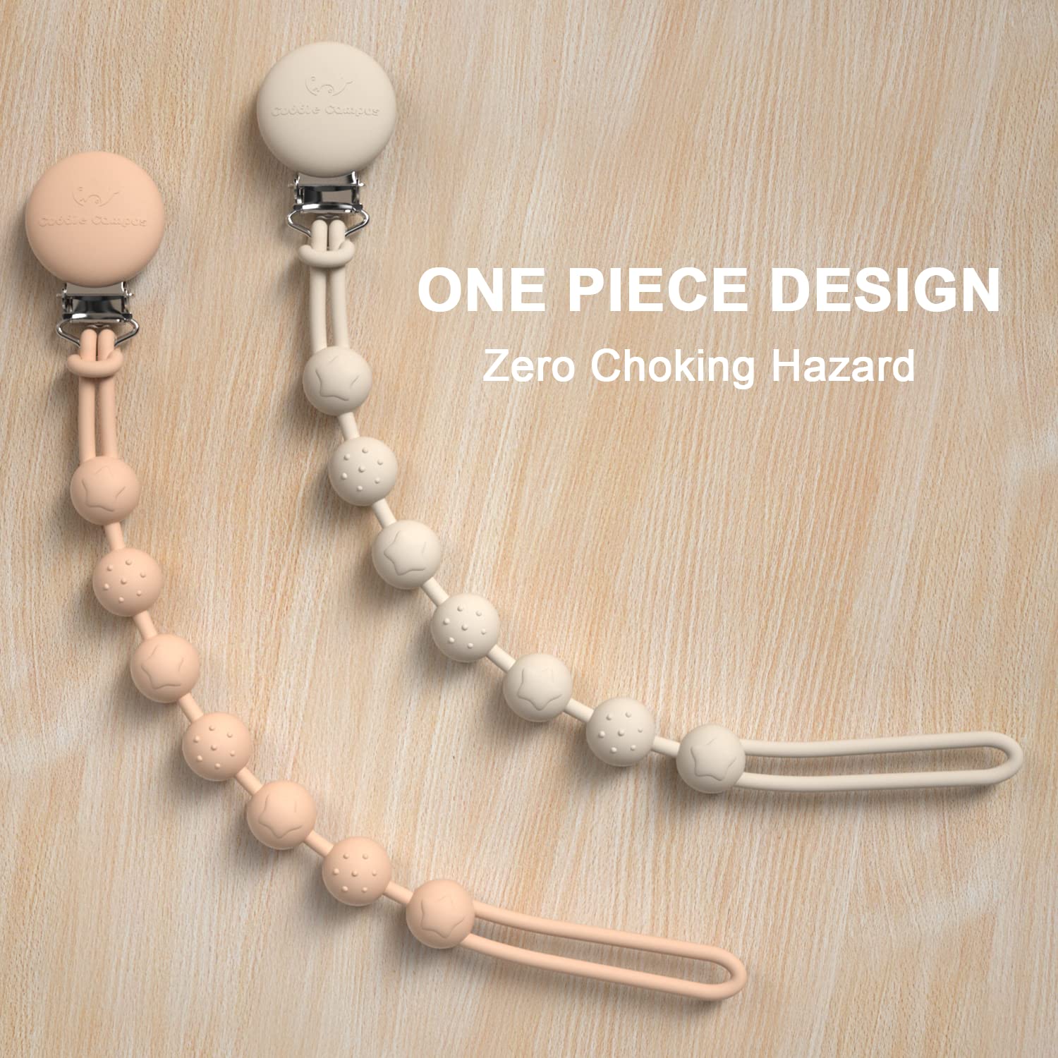UNIQUE ONE PIECE DESIGN: We’ve made our popular pacifier holder even better by updating the silicone core with one-piece, so you won’t worry about falling apart, and there’s Zero Choking Hazard