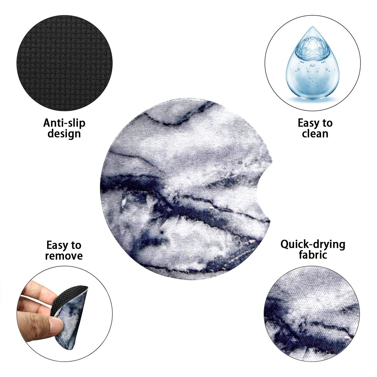 Easy to Clean - The unique finger allow you to lift car coasters out with ease when it's time to clean.Easy to clean with soap and water, the car cupholder coasters will look spic and span in just a matter of minutes. You don't need to worry about them fading.