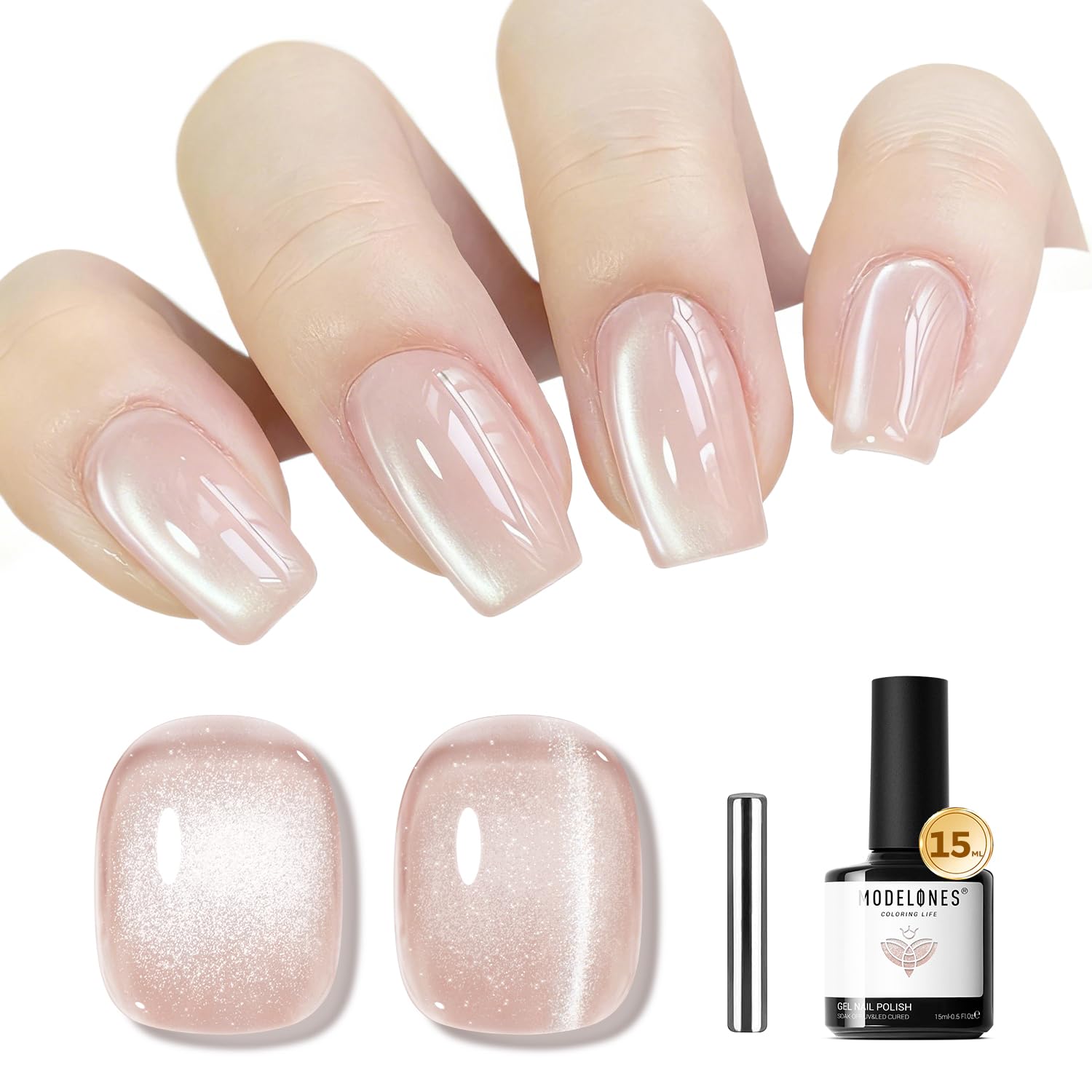 Tips: Hold the magnetic stick 3-5mm above the surface for 5-10 seconds to achieve your desired effect! [ What You Get]: 15ML Green Color of Semi-transparent Holographic Glitter Cat Eye Gel Nail Polish (15 ml/ 0.5 fl. oz each) + 1 Double-Head Magnetic Stick for various cat eye designs. Each shade of Modelones 9D cat eye gel polish is expertly mixed with metallic magnetic glitter powders for a stunning, shiny finish. Different angles create different visual effects. Practice makes perfect!