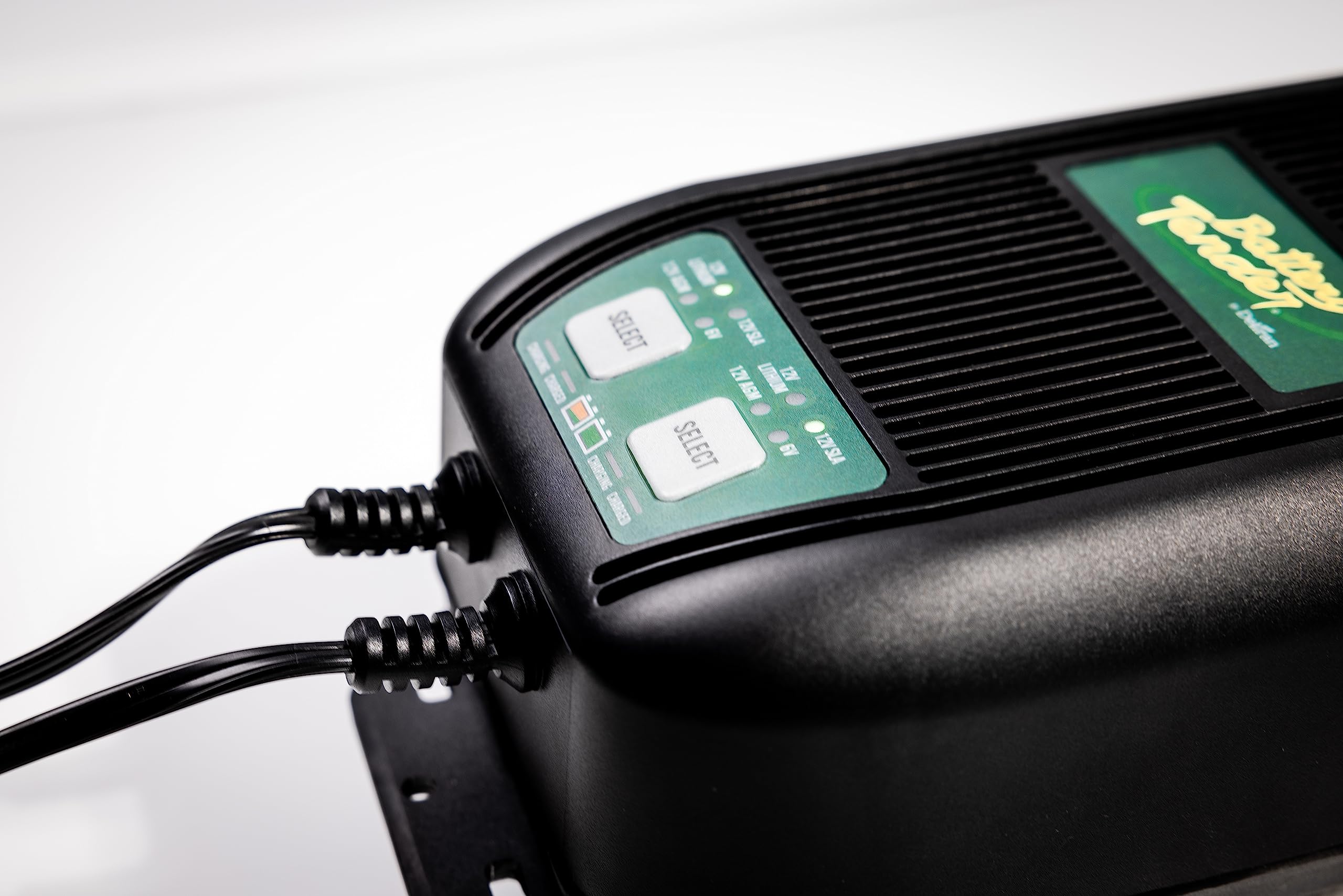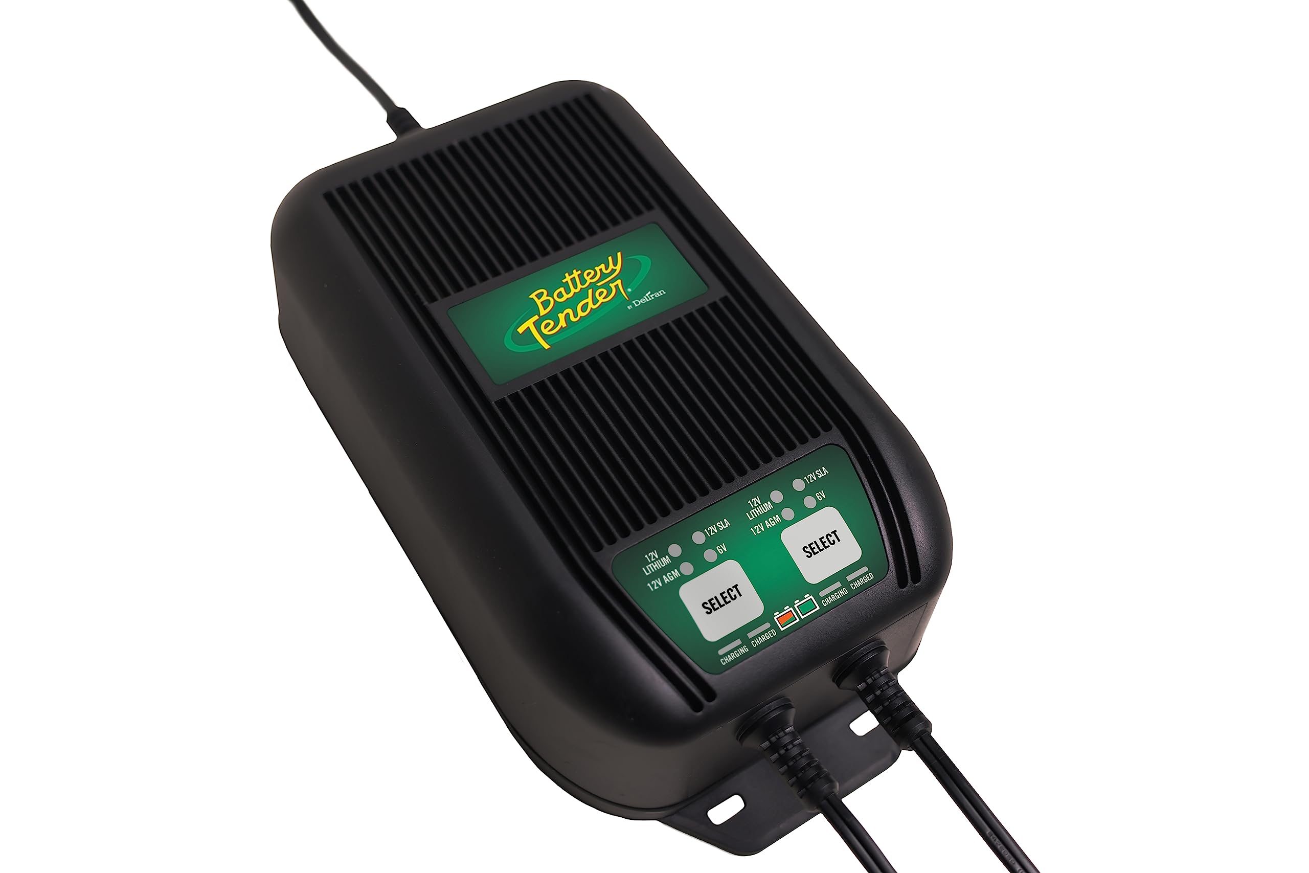 The Battery Tender 2-Bank Battery Charger is the ideal solution for all your indoor/outdoor battery charging needs. With its rugged construction and advanced features, this charger is designed to keep your batteries in peak condition, ensuring reliable performance and extended battery life. Dual charging banks allow you to simultaneously charge two 12V or 6V batteries. The selectable voltage and battery chemistry feature provides flexibility to match the charging requirements of your batteries, making it suitable for a wide range of battery types. Featuring construction that meets the stringent IP67 dust and waterproof standards, this charger is built to withstand harsh outdoor environments. Once your batteries reach full charge, it automatically switches to a float mode to prevent overcharging and maintain optimal battery levels. This smart charging process helps prolong battery life and ensures your batteries are always ready for action. Included are two two-in-one alligator clip and ring terminal harness combo cables allowing for easy installation and compatibility with a variety of battery types, including 12V Lithium, or 12V or 6V AGM and Lead Acid. A user-friendly interface with LED indicators that display the charging status of each bank, allows you to easily monitor the charging progress. With its durable construction, versatile charging capabilities, and weatherproof design, the Battery Tender 2-Bank Battery Charger is a reliable and efficient choice for automotive and outdoor enthusiasts. The rugged housing also allows for charging batteries in boats between 15' and 40' and other marine craft. Available in two, three, and four bank configurations.