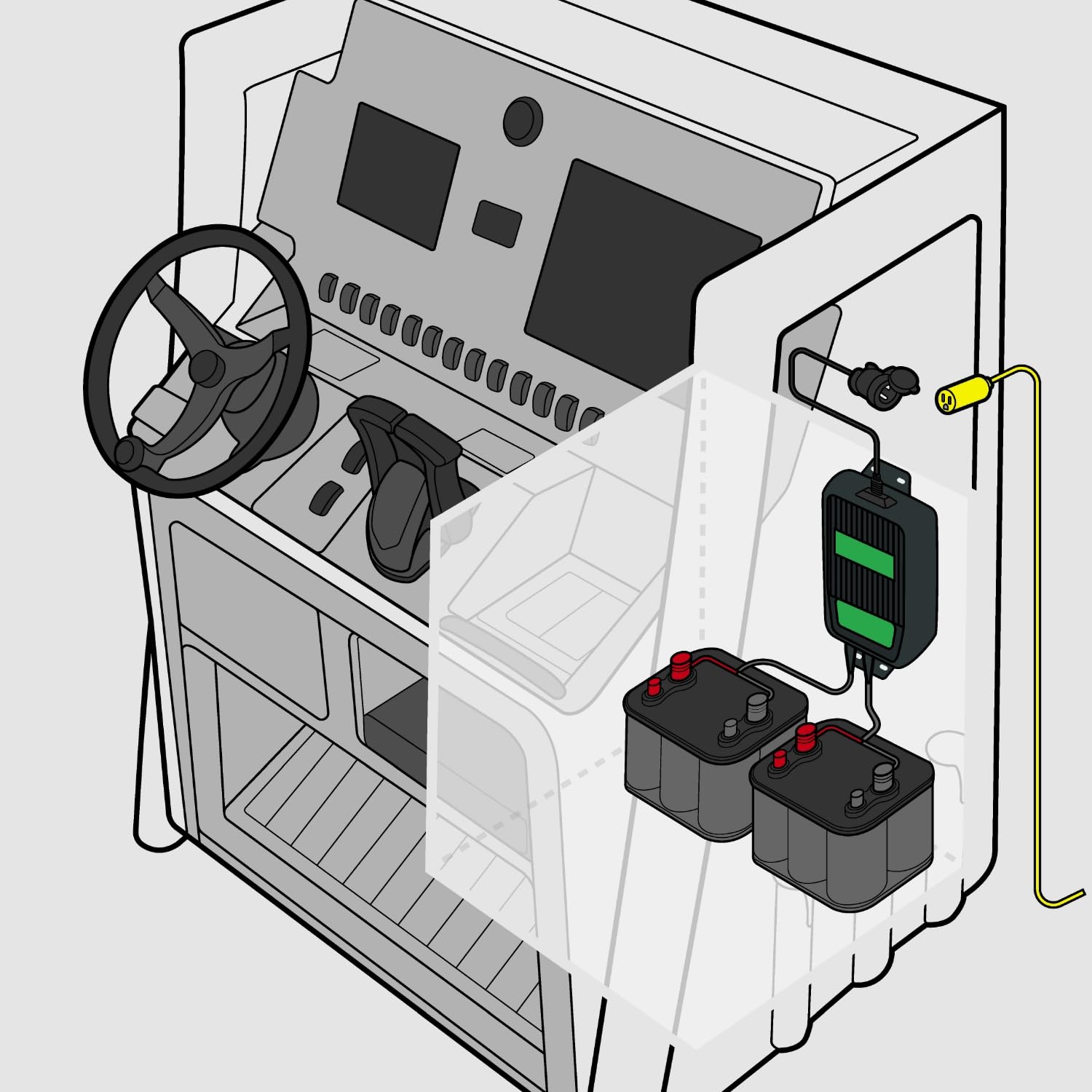 Protected: IP67 and Marine UL ratings for weather, shock, and vibration resistance. Safety features including spark-proof, reverse charging warning, and ignition protection. Marine-grade fused battery quick disconnects.