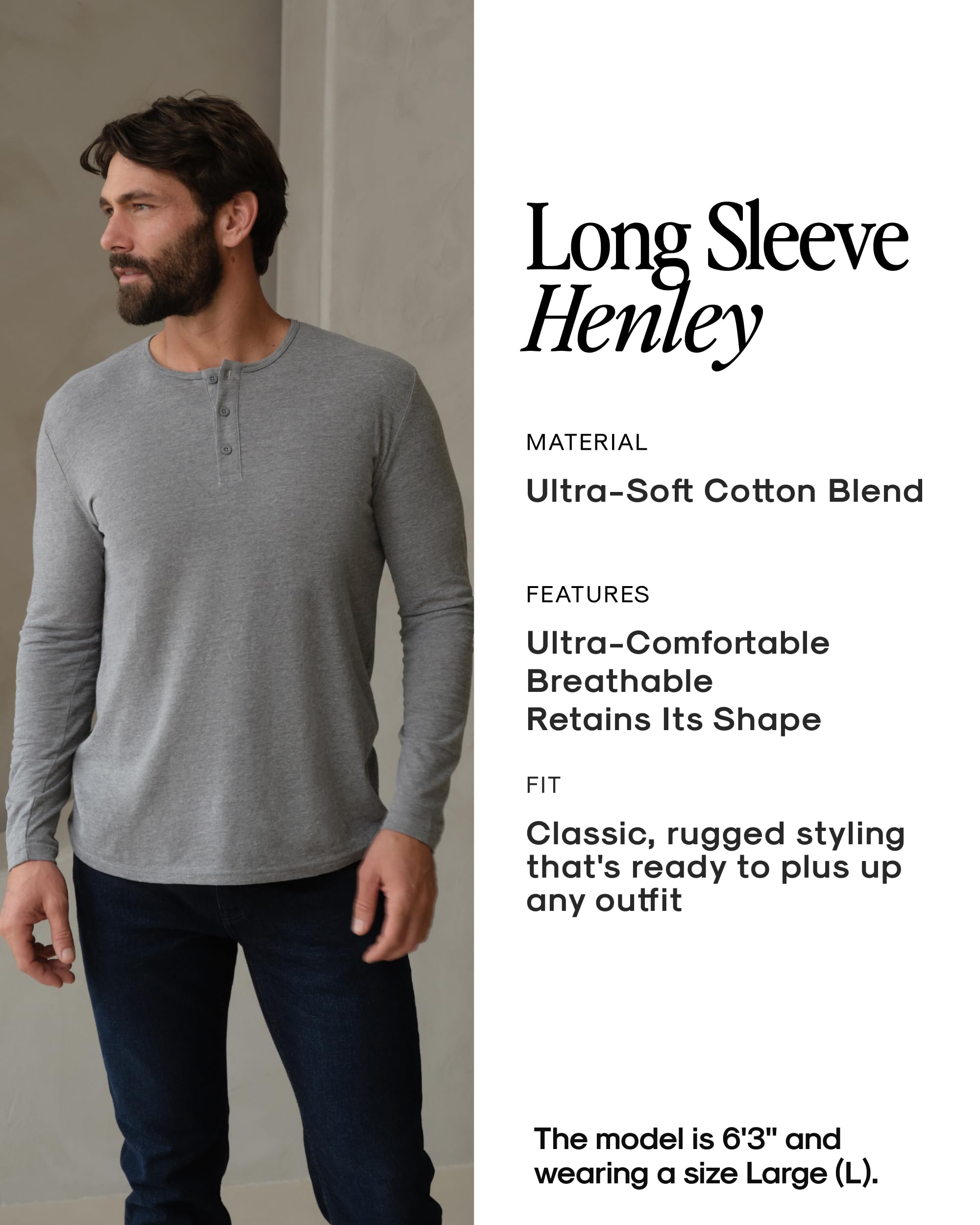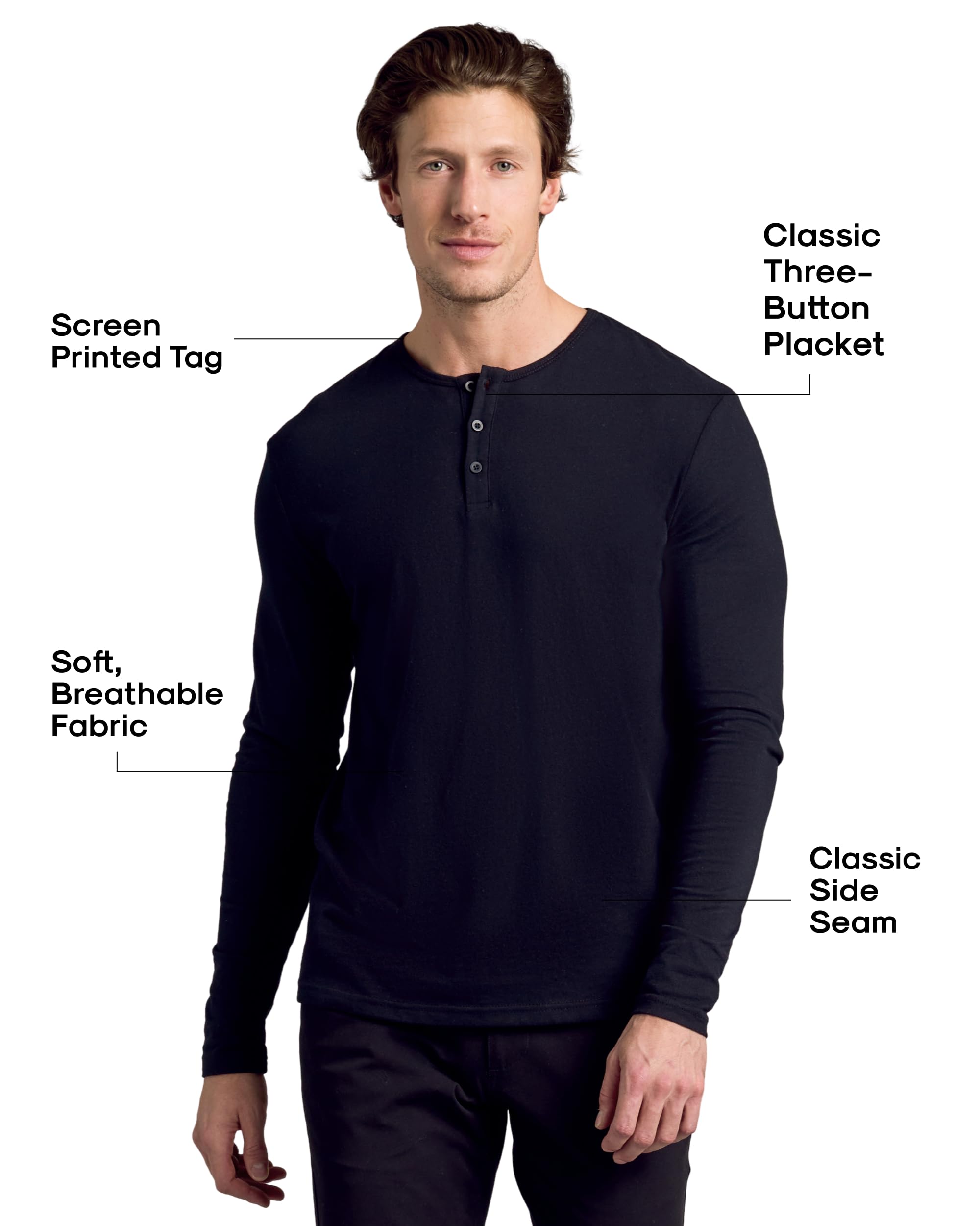 ALL-DAY COMFORT, TAG-FREE: Long sleeve men's t-shirts built for easy wear from workdays to weekends. Our classic crew and mens henley shirts have tagless prints with classic side seams that keep shape with minimal shrinkage (about 5% on low heat).