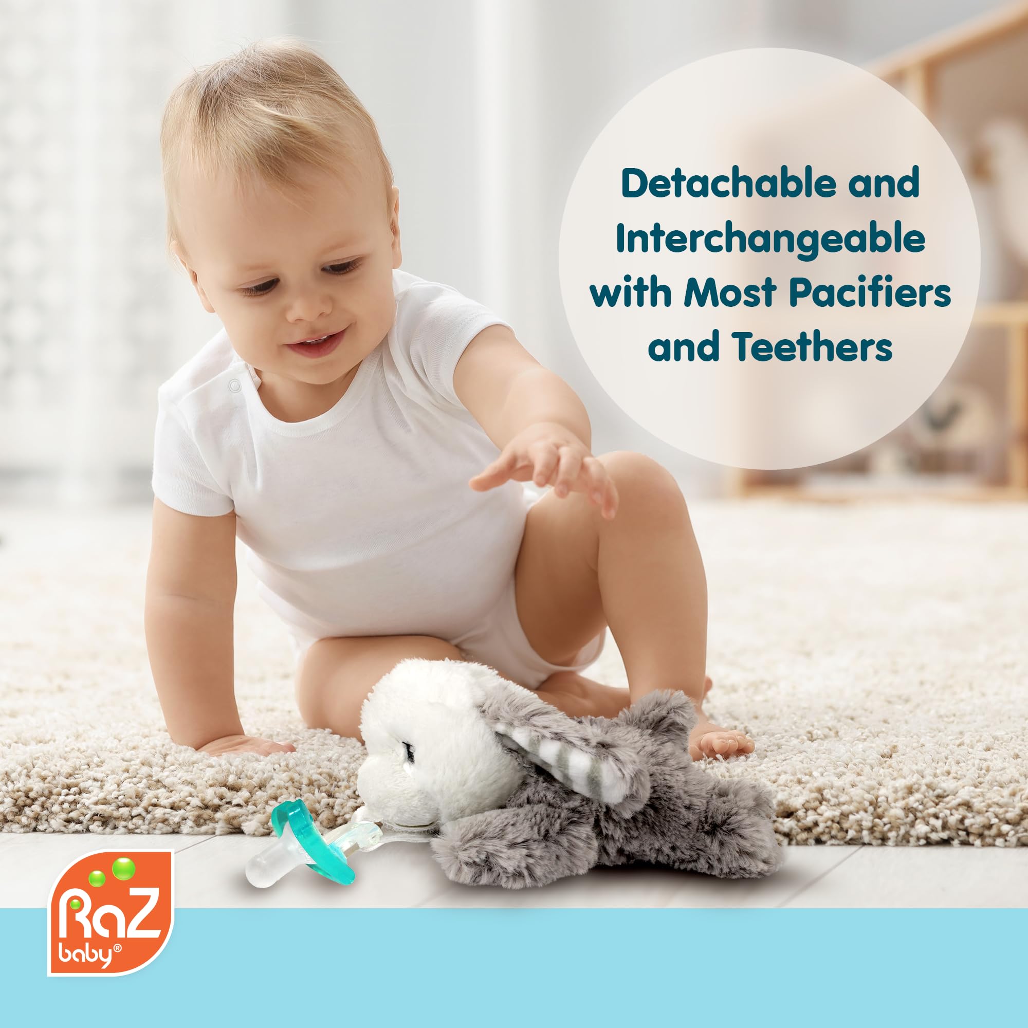 Easy to Clean & Sterilize: The RaZbuddy plush is machine washable for effortless maintenance, while the detachable JollyPop pacifier should be sterilized first, then dishwasher-safe for easy cleaning and convenient attachment swaps.
